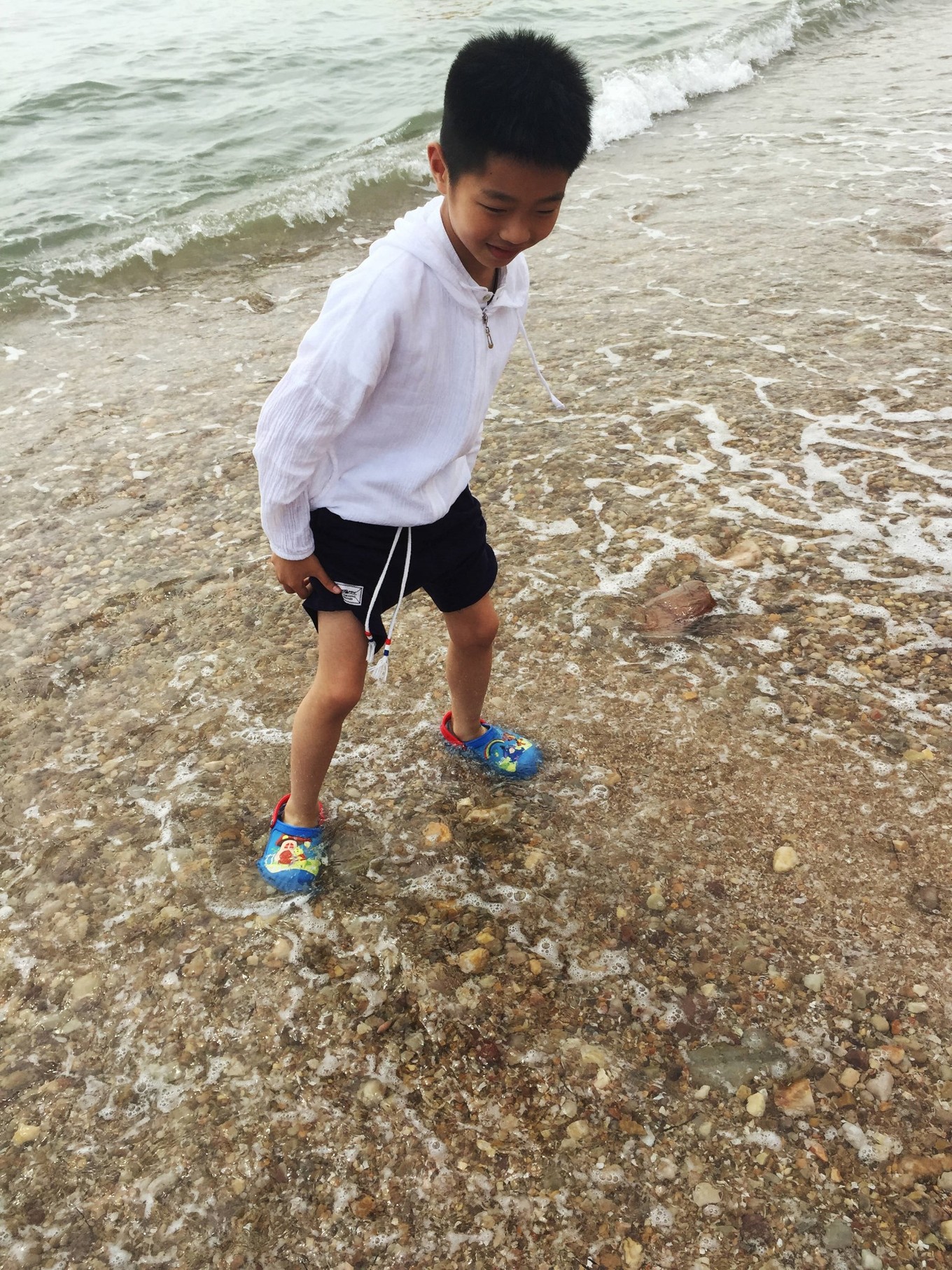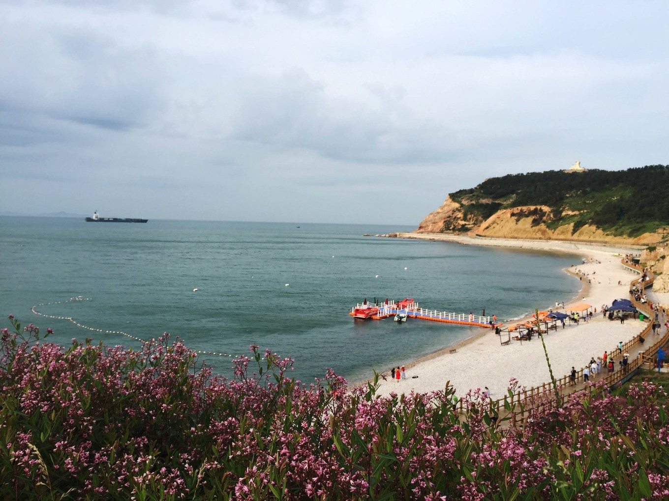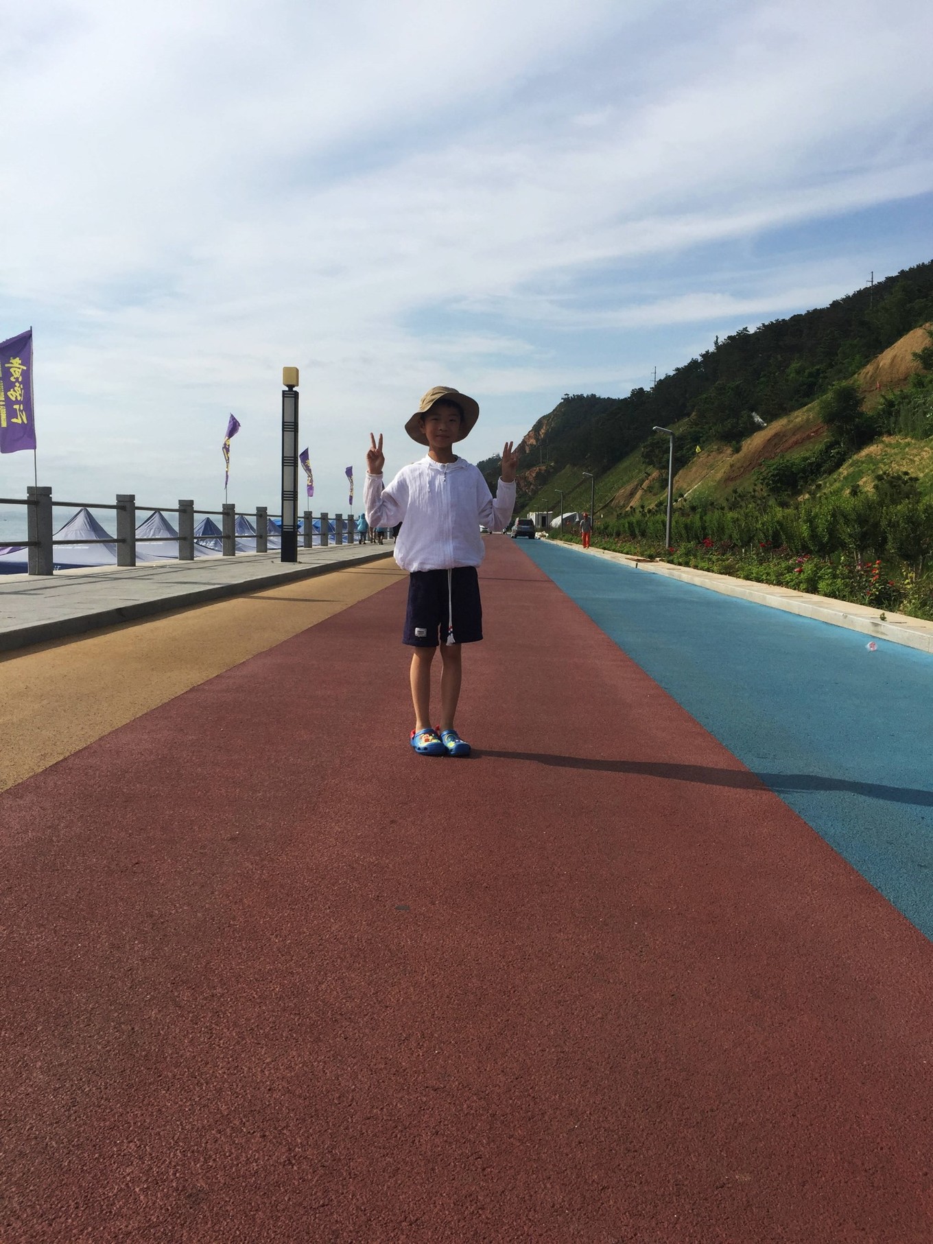 因為這次只有我們娘倆出來玩,男孩長大了跟媽媽一起,就是會有一些不方便的地方?,F(xiàn)在兒子還不能獨(dú)立去男浴室換泳衣,那邊人雜,也實在不放心。再加上7月初的海水太涼了,所以這次出行沒有下海。但是孩子在海邊踩踩海水,照樣很開心。