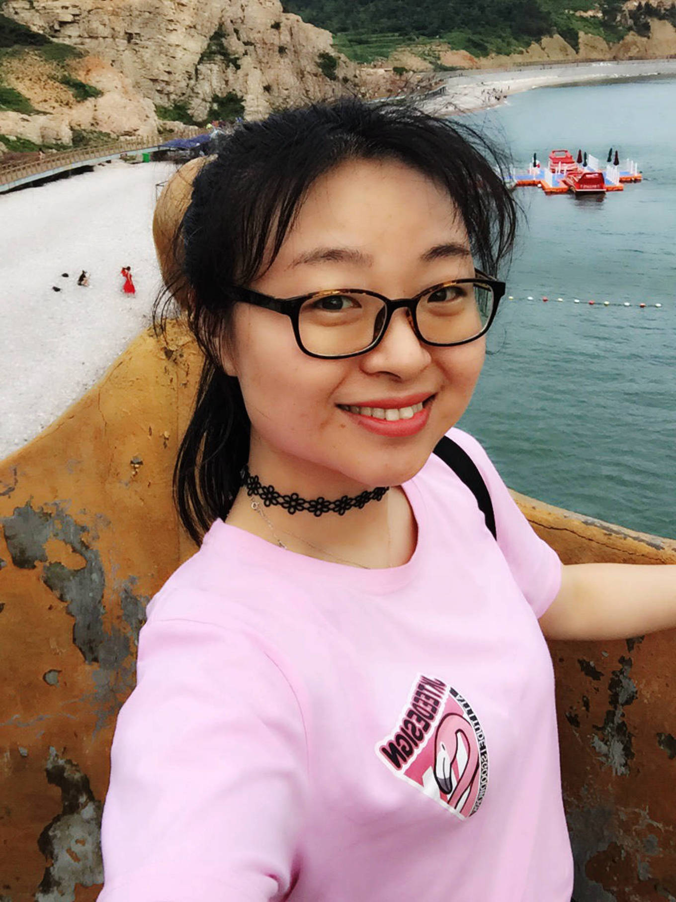 吃完午飯在房間休息一會兒,準(zhǔn)備好游泳的裝備出發(fā)。出門走兩分鐘有公交站臺,坐一站路就可以到月牙灣。但是剛出來就看見公交車開走了,下一班要再等半小時。正巧有個順風(fēng)車10塊錢可以送我們?nèi)ピ卵罏?,立馬決定上車走人!