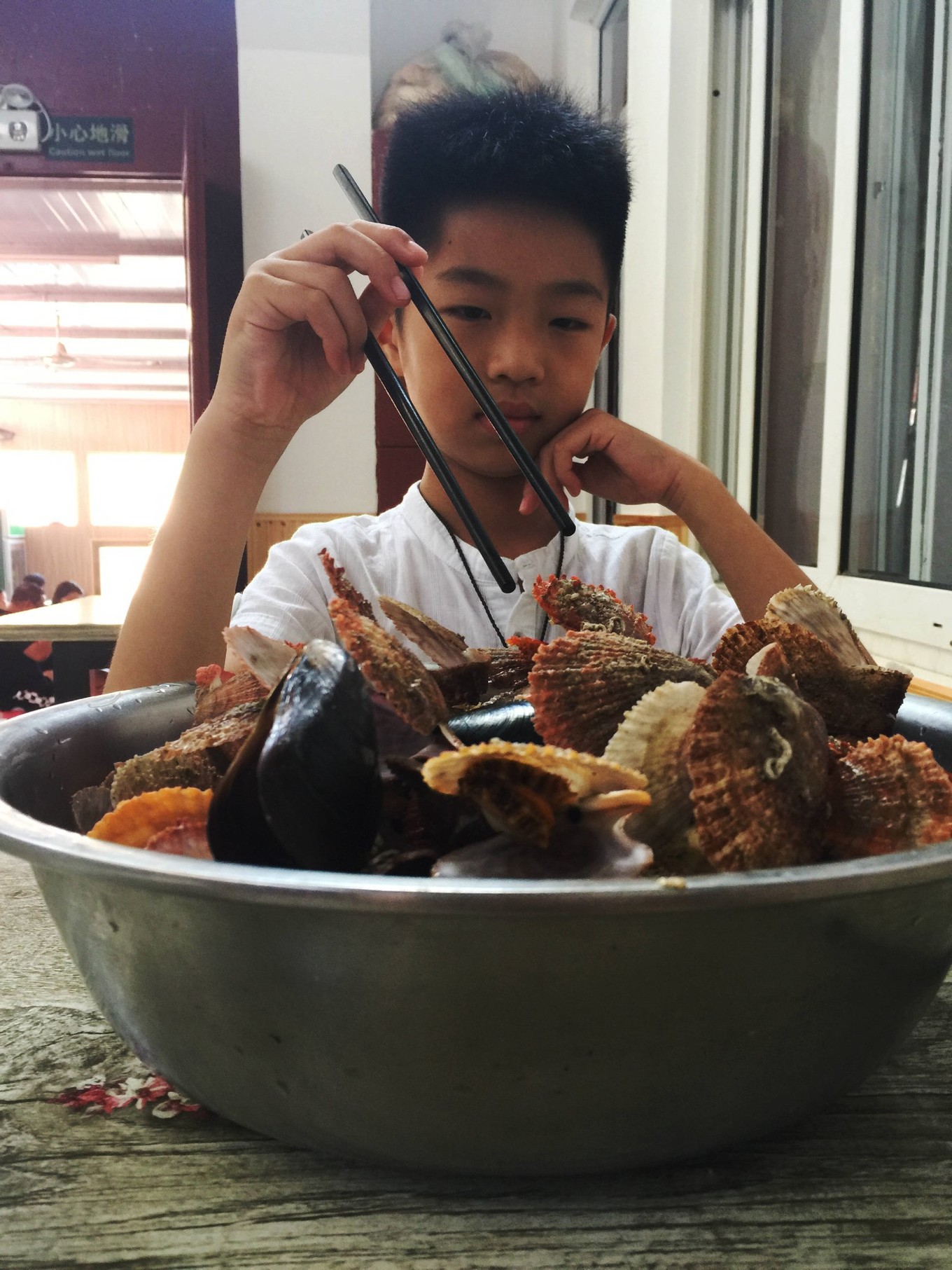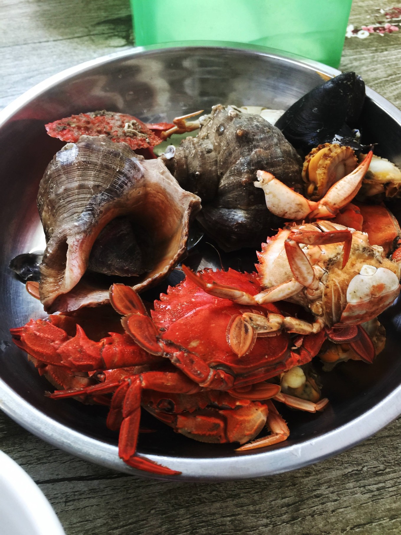 跟著司機(jī)的車回到住處,讓老板娘給加工了帶回來的海鮮,兒子對此不感冒,就只有我一個人對著兩大盆海鮮奮戰(zhàn)!吃到之后一個月都不想聽到“海鮮”二字...