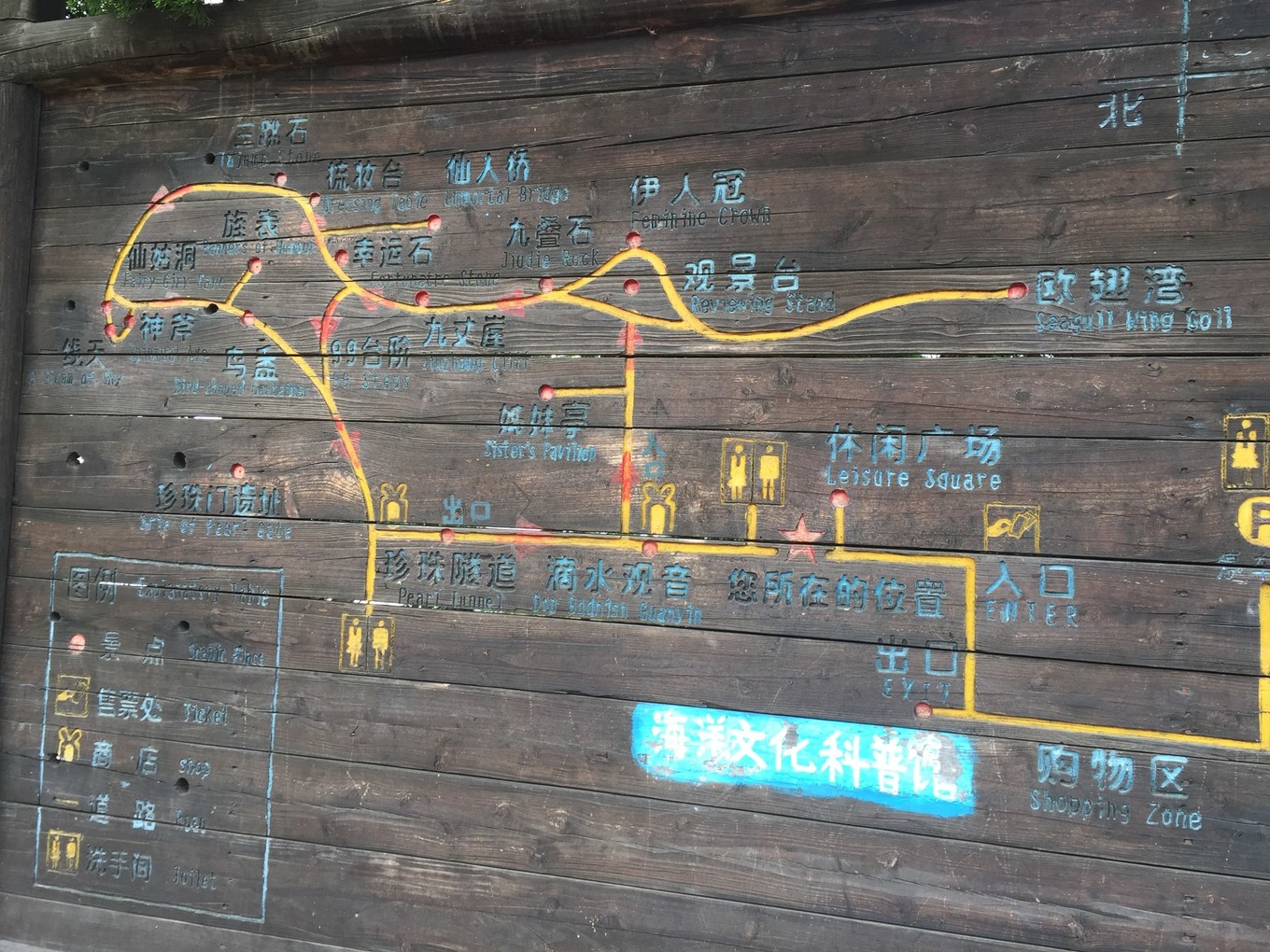 這是整個行程中,我覺得最可詭異的景點(diǎn)!一條黑漆漆、潮乎乎的石縫最深處,有一座高大的、披著紅色披風(fēng)的仙姑像....我在最外面朝里看了兩眼,看得我汗毛直豎,感覺瘆得慌!很想知道,這個景點(diǎn)設(shè)置的意義何在?