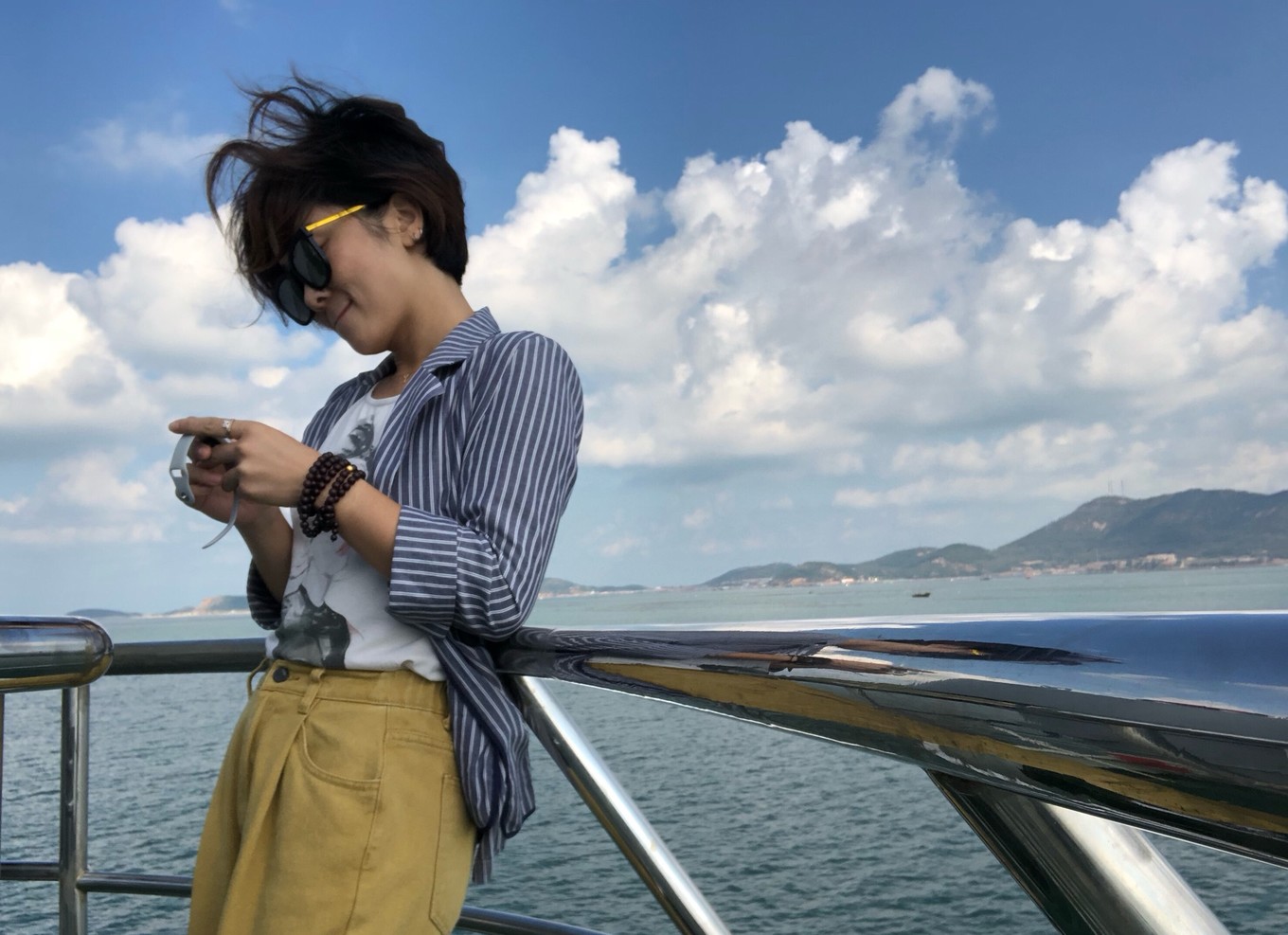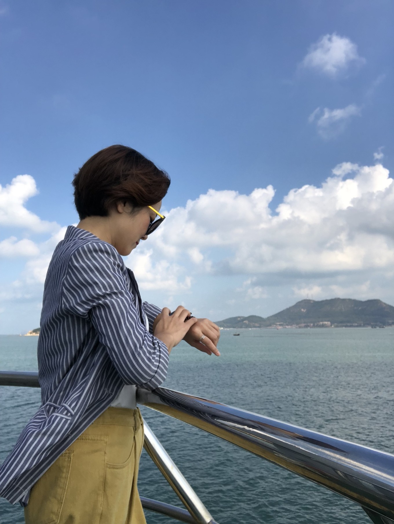 插播一條,上船等待出發(fā)的時候找到了個絕佳的地方自拍,沒錯,你們一個人來的話,找這個東西,手機擱上面,然后九連拍吧