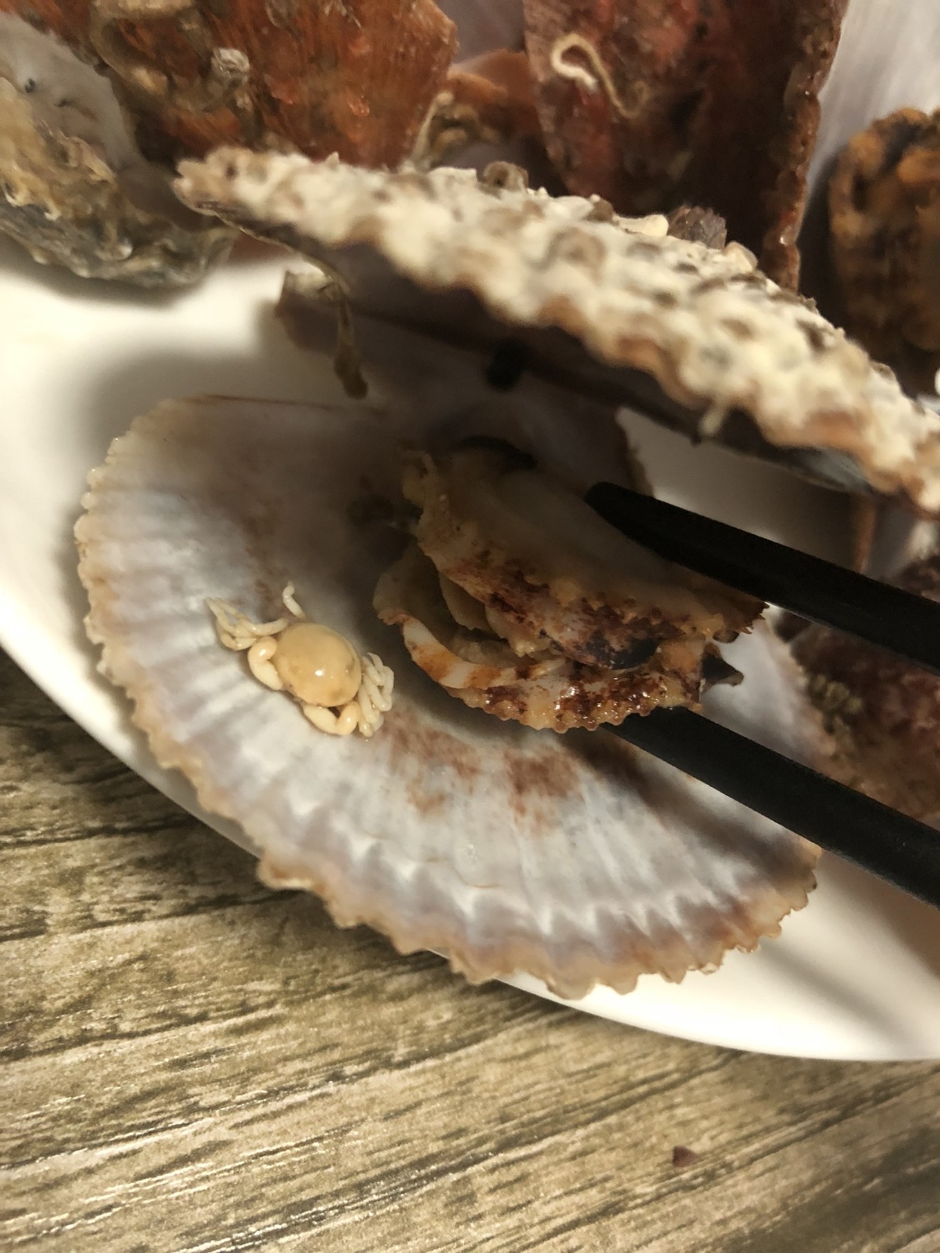 扇貝里找到一個小小的螃蟹,這是什么情況