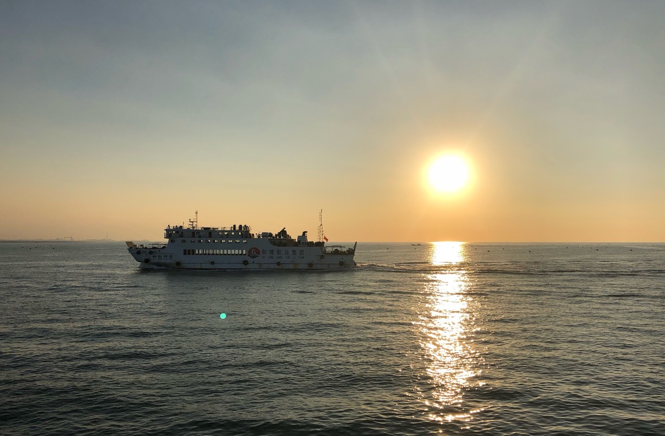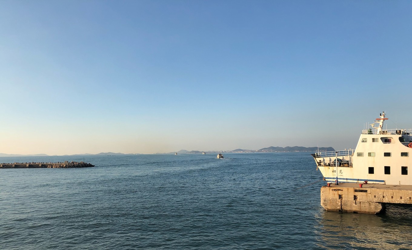 三十多分鐘大巴到了蓬萊客運站,根據(jù)機場大巴工作人員說的蓬長客運港只有兩公里,必須步行。然鵝我開導航發(fā)現(xiàn)有將近五公里,好吧,出站都是的士拉客,本人一向不喜歡這種車子,當然其實是怕被宰,哈哈哈哈,出手攔了一輛的士,司機上車仍然一口價,說平時25,今天30吧,無奈先走了再說吧,順利到港,人已經(jīng)不多了,買到4點40的船票,票價45,出發(fā)吧…(按照司機的說法,國慶這幾天上午基本沿路都非常堵,倒是下午三四點會順利很多,暗自慶幸自己的選擇)