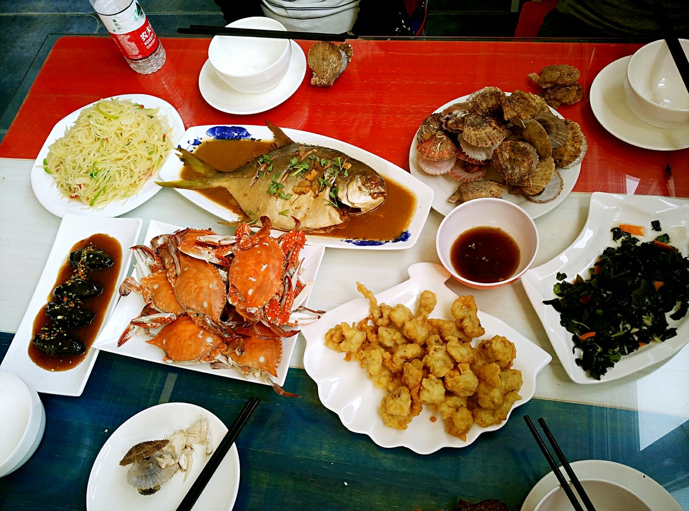 吃完午飯大概一點半左右 休息一會兒三點半出發(fā) 家家悅買酒 大概五點多左右到達九丈崖貓對九丈崖的無花果一直念念不忘 這次去卻沒有看到 不知道是不是季節(jié)不到 記得去年八月十五來到長島 路邊的無花果是爽口的清甜一直念念不忘 九丈崖是4A級景區(qū) 主要是看一處懸崖景觀 但在懸崖下的海邊走走坐坐反而有想不到的寧靜和愜意,也可以撿些鵝卵石,遛彎 完畢 7點回酒店吃飯 9點木木酒吧~晚飯很豐盛 下有圖 兩個人吃不完 味道是家里的味道~干凈溫暖
