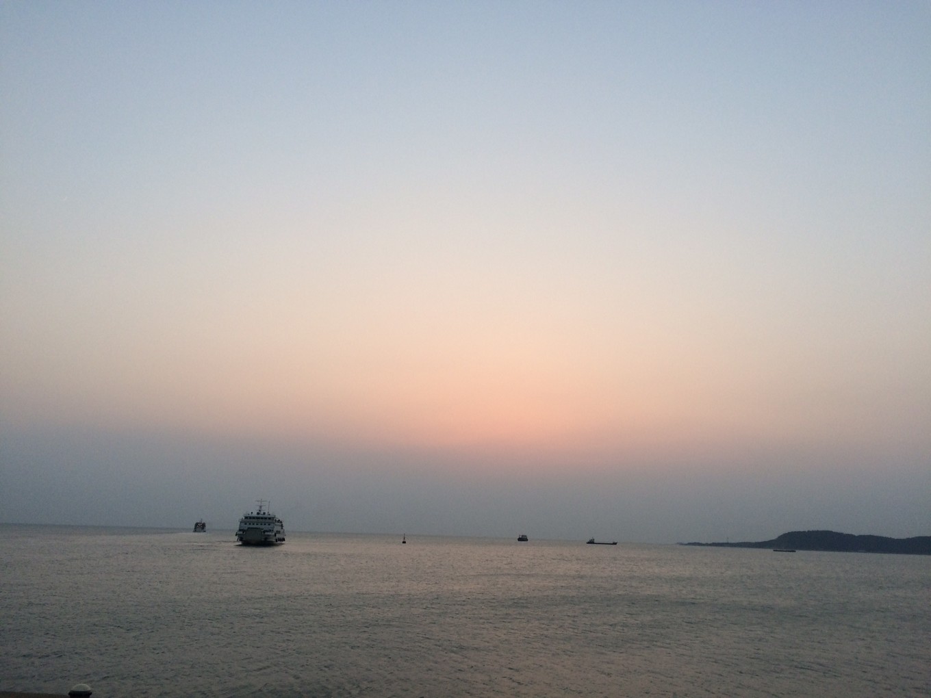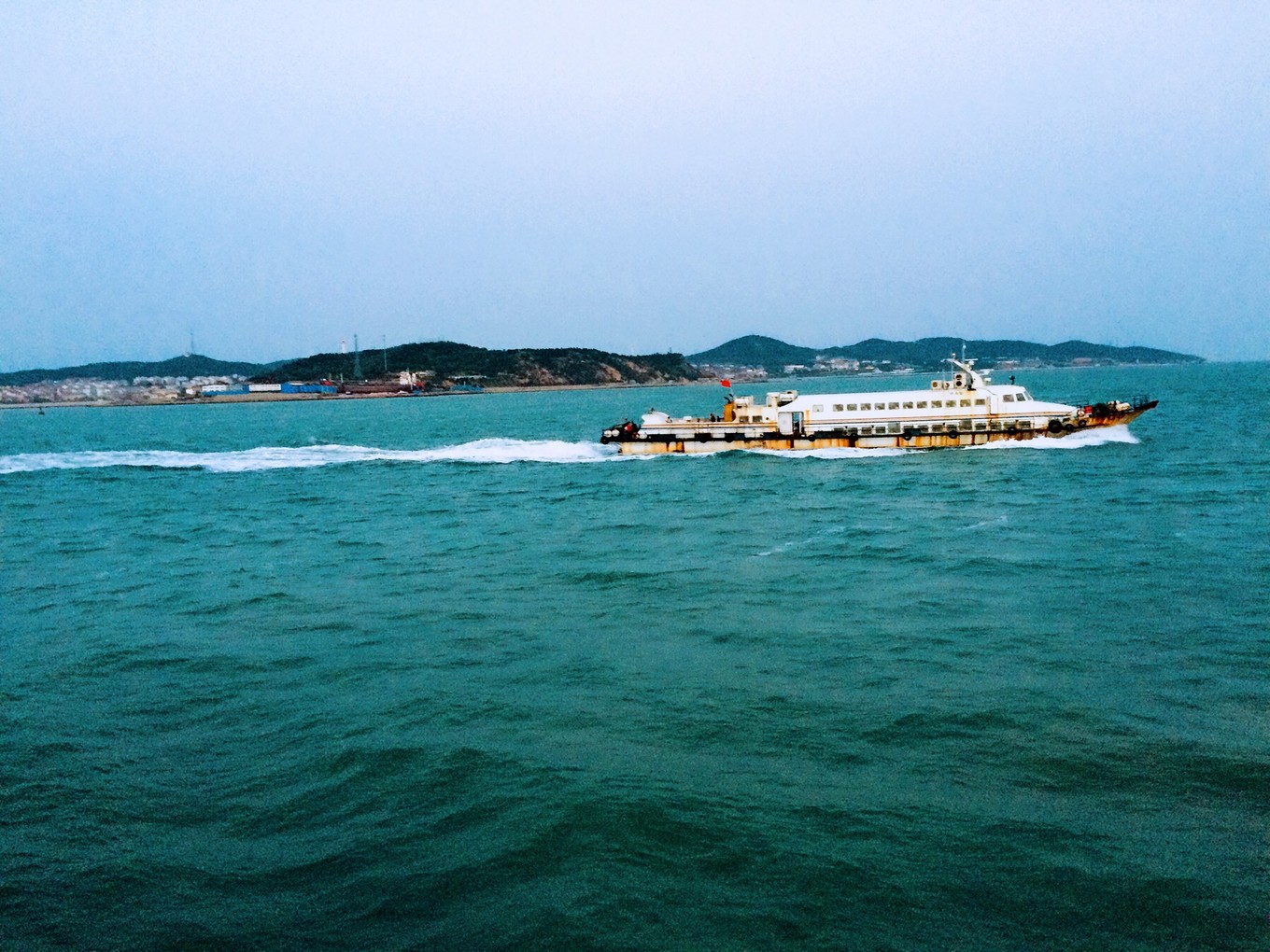 3號(hào)上午10點(diǎn)出門,在煙臺(tái)北馬汽車站排了兩個(gè)小時(shí)的隊(duì),坐上了去蓬萊的車,將近一個(gè)半小時(shí)就到了,因?yàn)榕钊R的新汽車站在郊區(qū),又坐了大約30分鐘的公交,來到了碼頭,下午3點(diǎn)左右坐上了船。這艘船有個(gè)夢幻般名字—仙島2,第一次坐船,內(nèi)心無比激動(dòng),這艘船有三層,富麗堂皇的大廳電視上播放著歡樂喜劇人,船開后,站在甲板上看看碧海藍(lán)天,感受大海的氣息,船行駛過后留浪花翻滾的痕跡,思緒被海風(fēng)吹回到泰坦尼克號(hào)里的經(jīng)典場景,Rose:I'm flying ,Jack. 然后杰克唱起了歌,兩人深深相吻。