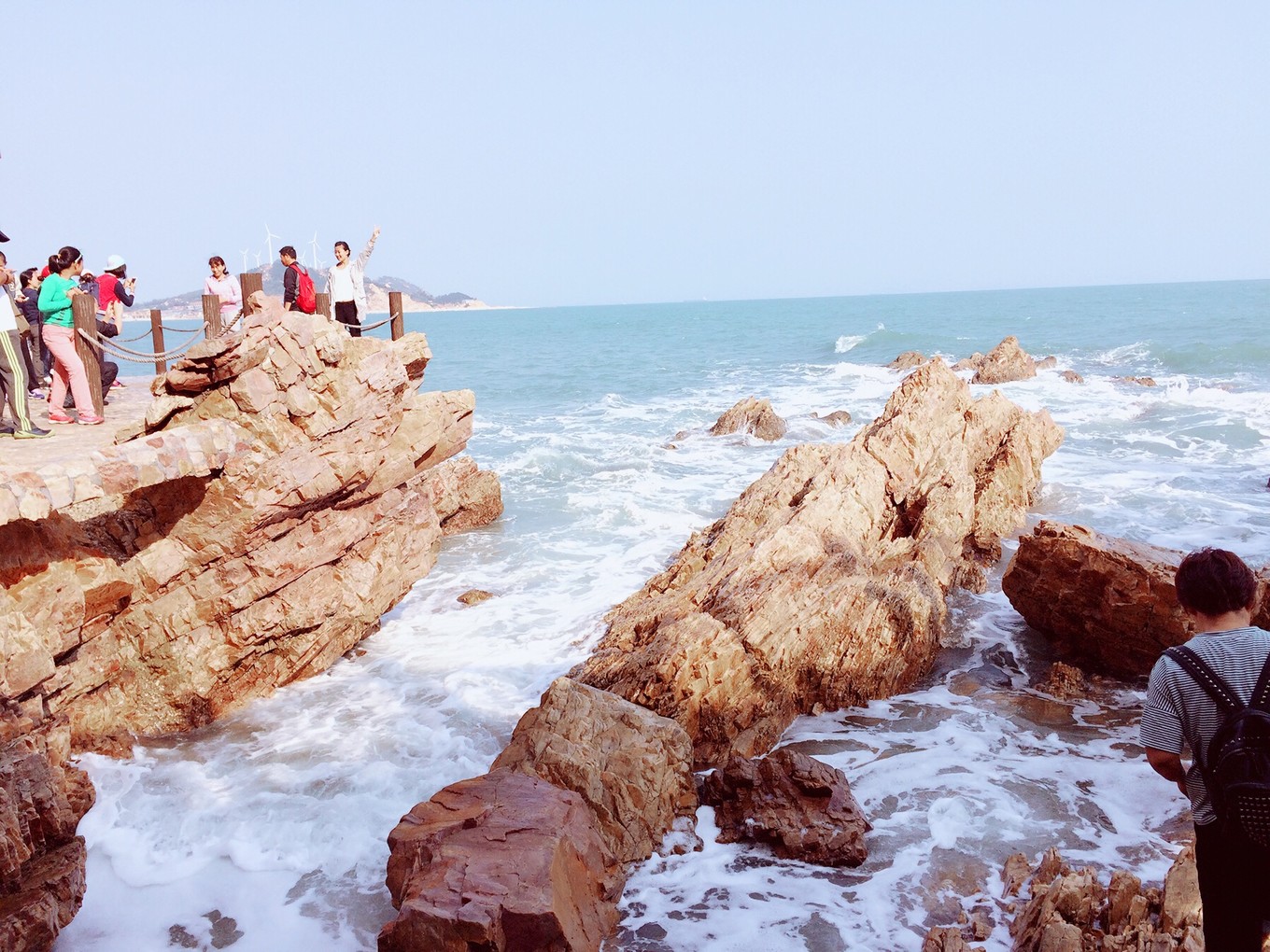 第一個(gè)景點(diǎn)是望夫礁,景點(diǎn)大門口有一排長長的鵝卵石砌的墻,白白的,很漂亮。