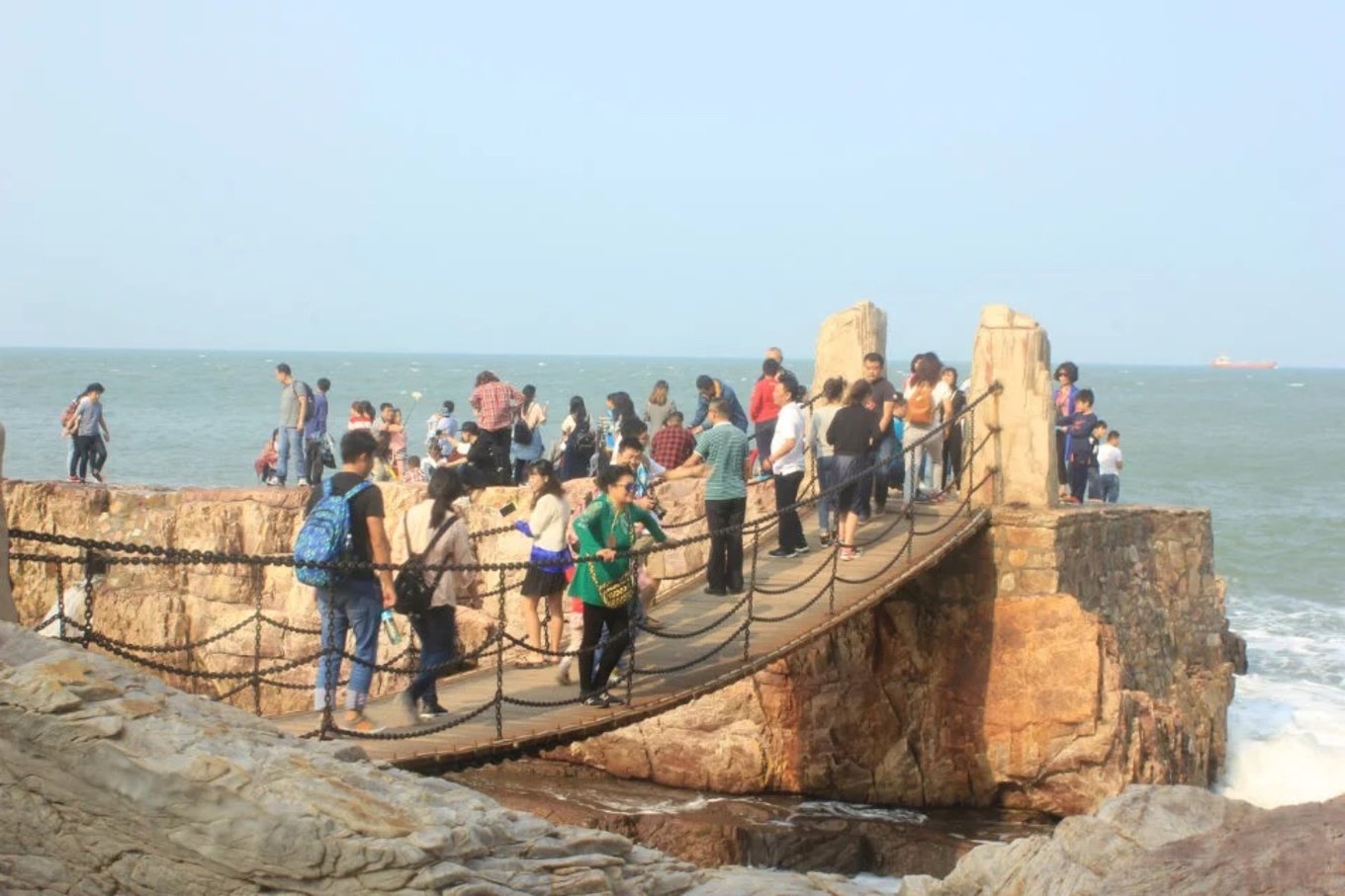 第三個(gè)景點(diǎn)是九丈崖,這個(gè)景點(diǎn)相比前兩個(gè)景點(diǎn)更大,需要在這個(gè)景點(diǎn)多花點(diǎn)時(shí)間來游玩。驚濤駭浪拍打著懸崖峭壁,給人一種曹操:“東臨碣石,以觀滄海?!钡暮狼閴阎?,仿佛忘卻了塵世煩惱,被這壯麗的風(fēng)景所折服。