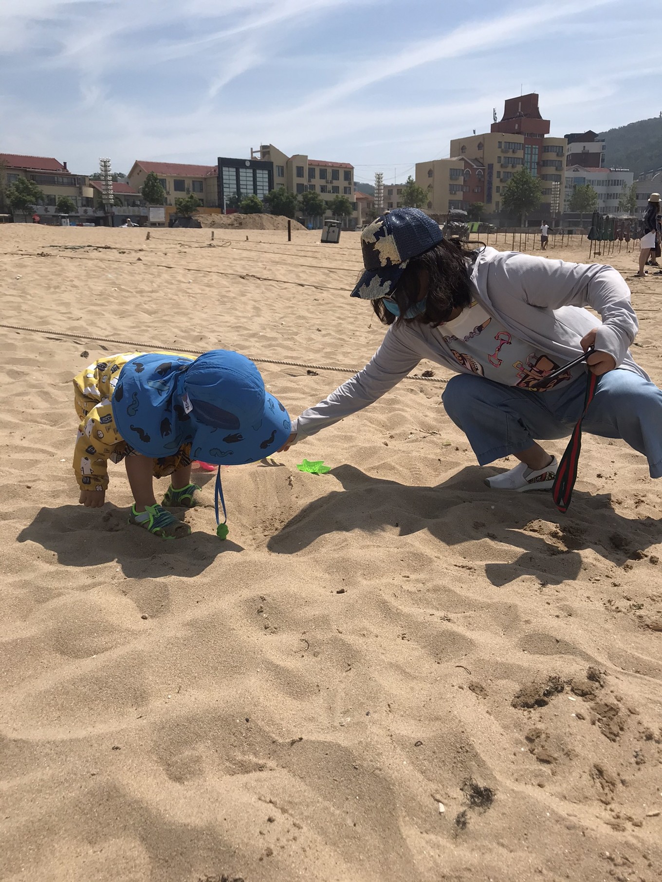 和肉肉姐姐一起來到海邊,玩第二名愛的挖沙,第一名永遠(yuǎn)是蕩秋千。