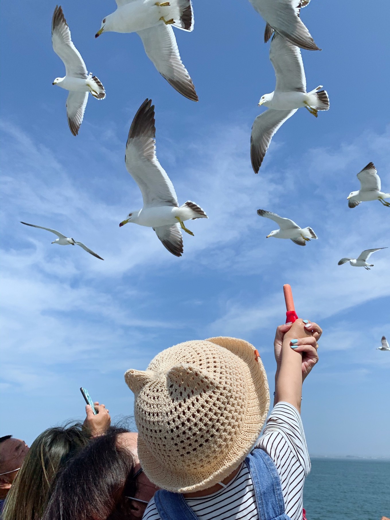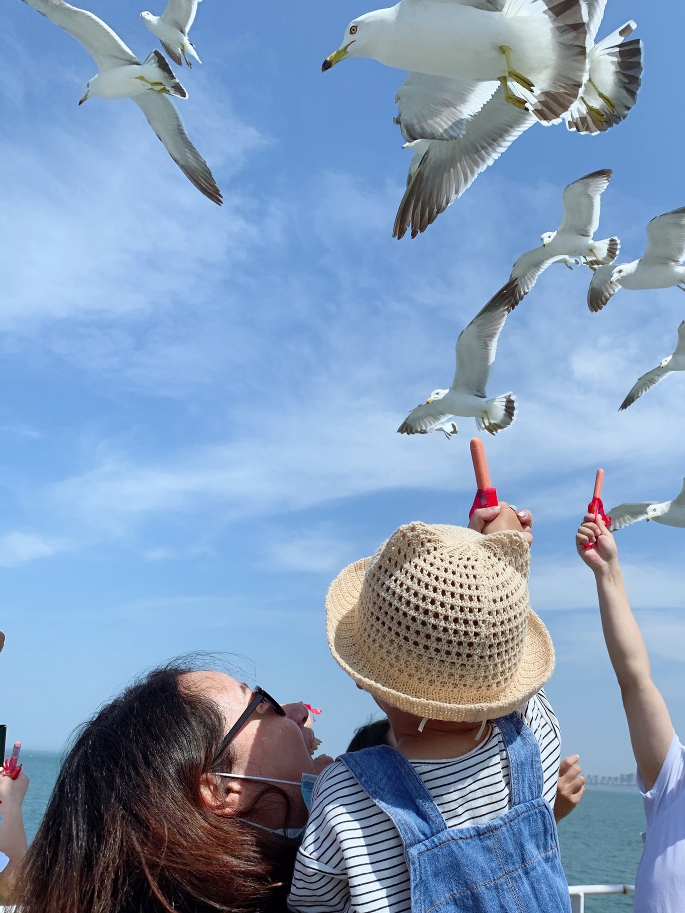 所以我說來一次長島,海陸空全體驗(yàn)一遍,這是哼哥第一次坐船,可以喂海鷗還挺新奇的。