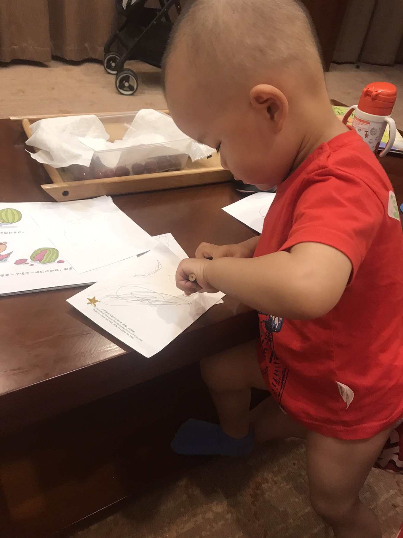 玩了會(huì)兒,又去認(rèn)真畫畫,真是亦動(dòng)亦靜。