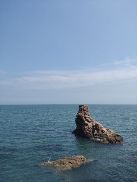 ,山海交融,讓人心曠神怡。另外,這里的石頭很有特色,圓潤,細(xì)膩,光滑,透著寶石一樣的光澤。