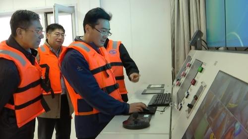 初冬時(shí)節(jié),海風(fēng)徐徐,位于南隍城島萬畝海洋牧場上的全國首座坐底式深遠(yuǎn)海智能化海珍品養(yǎng)殖網(wǎng)箱——“國鮑一號”,伏波靜臥,遠(yuǎn)眺似一朵“海上之花”。11日下午,李俊杰一行乘船登上平臺,詳細(xì)了解網(wǎng)箱的運(yùn)作和試養(yǎng)情況,指出,我區(qū)海洋面積大、海岸線長、海洋資源豐富、海工裝備實(shí)力強(qiáng),獨(dú)特優(yōu)勢明顯,要把海洋牧場建設(shè)作為推動(dòng)我區(qū)海洋漁業(yè)轉(zhuǎn)型升級的主抓手,進(jìn)一步深化陸海統(tǒng)籌,持續(xù)強(qiáng)化科技支撐,讓漁業(yè)產(chǎn)業(yè)提質(zhì)增效,引領(lǐng)海洋牧場向規(guī)?;?、工程化、智慧化、綠色化轉(zhuǎn)型發(fā)展。