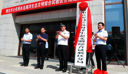 煙臺(tái)市公安局長(zhǎng)島海洋生態(tài)文明綜合試驗(yàn)區(qū)分局揭牌儀式在長(zhǎng)島分局舉行。副市長(zhǎng)、市公安局黨委書(shū)記、局長(zhǎng)趙峰出席儀式并講話。區(qū)工委副書(shū)記、管委專職副主任李俊杰出席儀式。趙峰、李俊杰共同為煙臺(tái)市公安局長(zhǎng)島海洋生態(tài)文明綜合試驗(yàn)區(qū)分局揭牌。