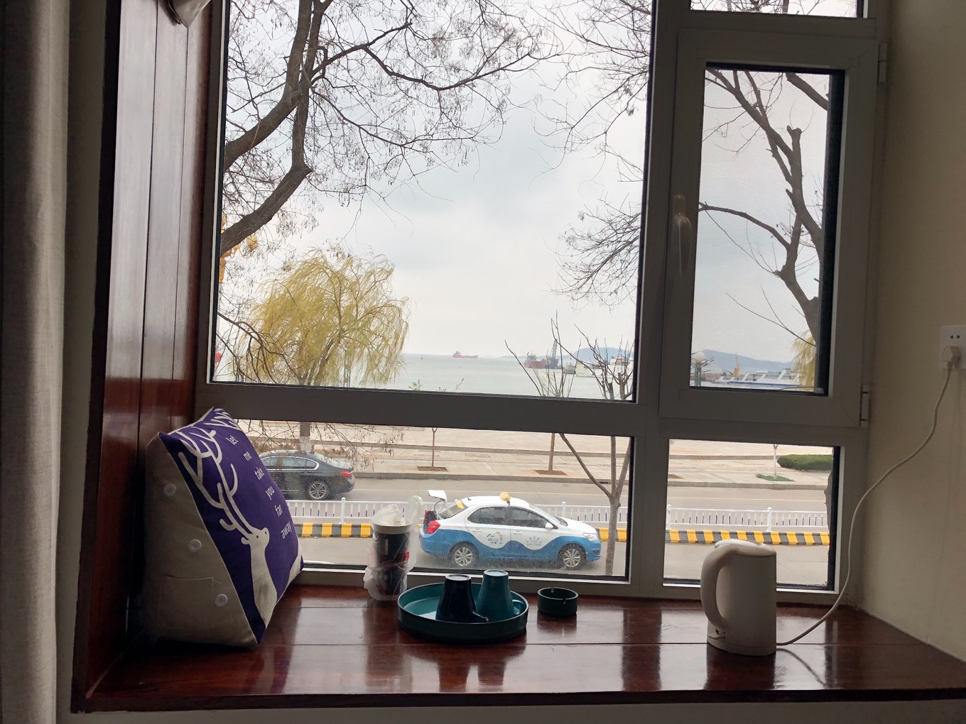 事實證明蓬萊吃的這個蓬萊小面確實要比長島的好吃,我跟小鱷魚同學(xué)一人喝了一大碗。吃飽喝足之后步行到了蓬萊港口,坐輪船到了長島,酒店離港口好近,看到碼頭,就是好冷,開了空調(diào)好久才暖和過來