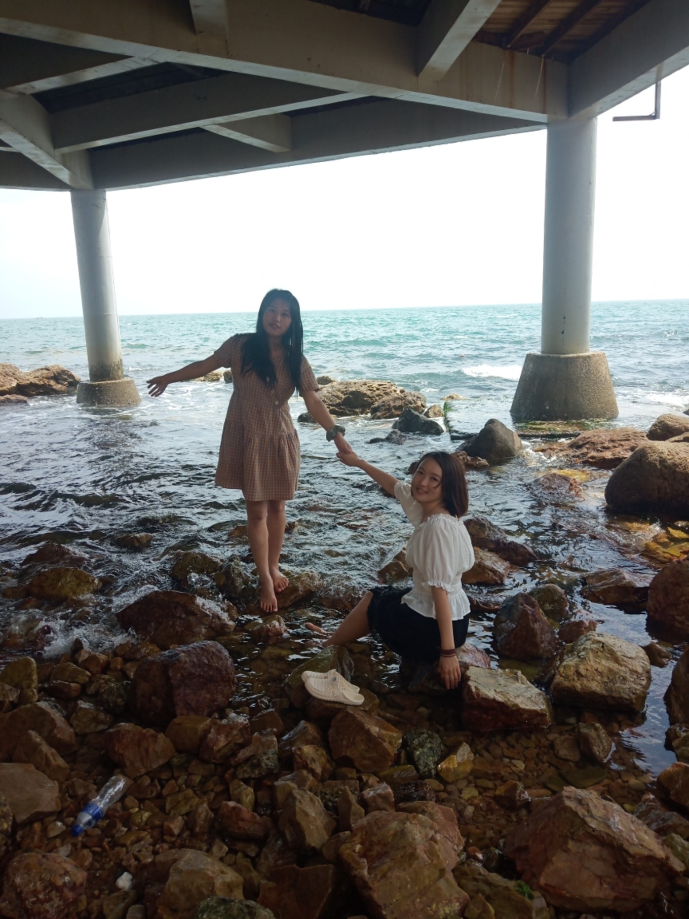 不過,這里的海水清澈,光著腳丫站在海中的礁石上,任冰涼的海浪漫過小腿,沾濕裙角,臨海給人的感覺是一個(gè)可以放松去享受的時(shí)光的地方。
