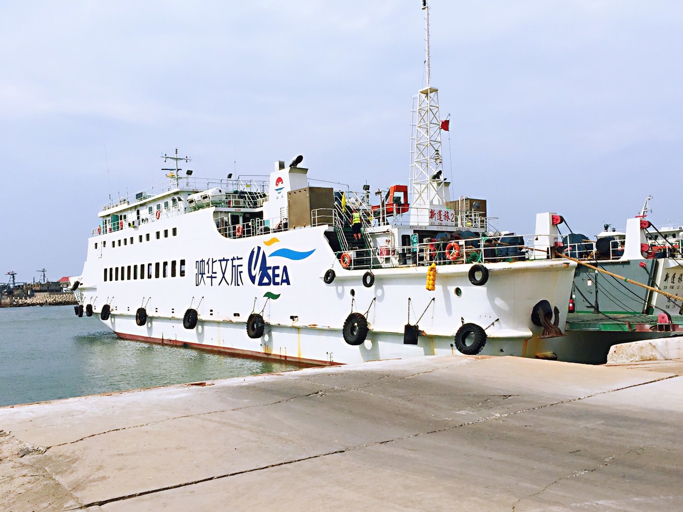 -9-10上午在煙臺游八仙過海和蓬萊閣景區(qū),中午1點半左右將車存放在蓬萊港,停車場很大,24小時30元,然后乘船去長島。以前自駕車可以擺渡過海去長島。近兩年長島為保護環(huán)境,禁止外地牌照車上長島。自駕游者只能將車寄放在蓬萊。下午2點的船票,45元一張,乘坐映華文旅客輪前往心心念念的長島。