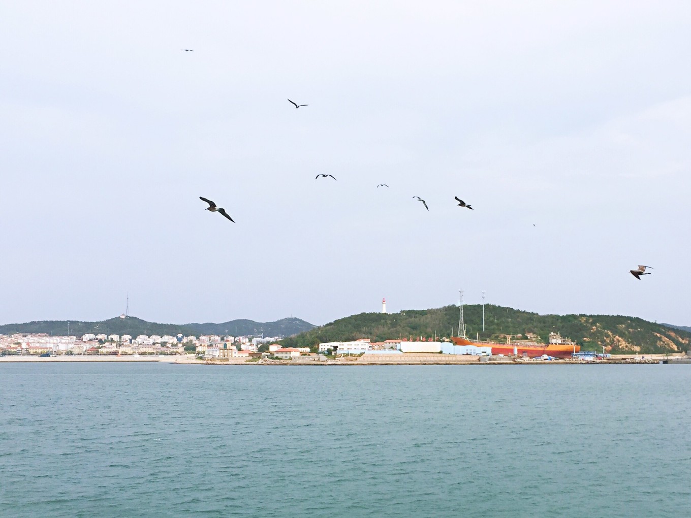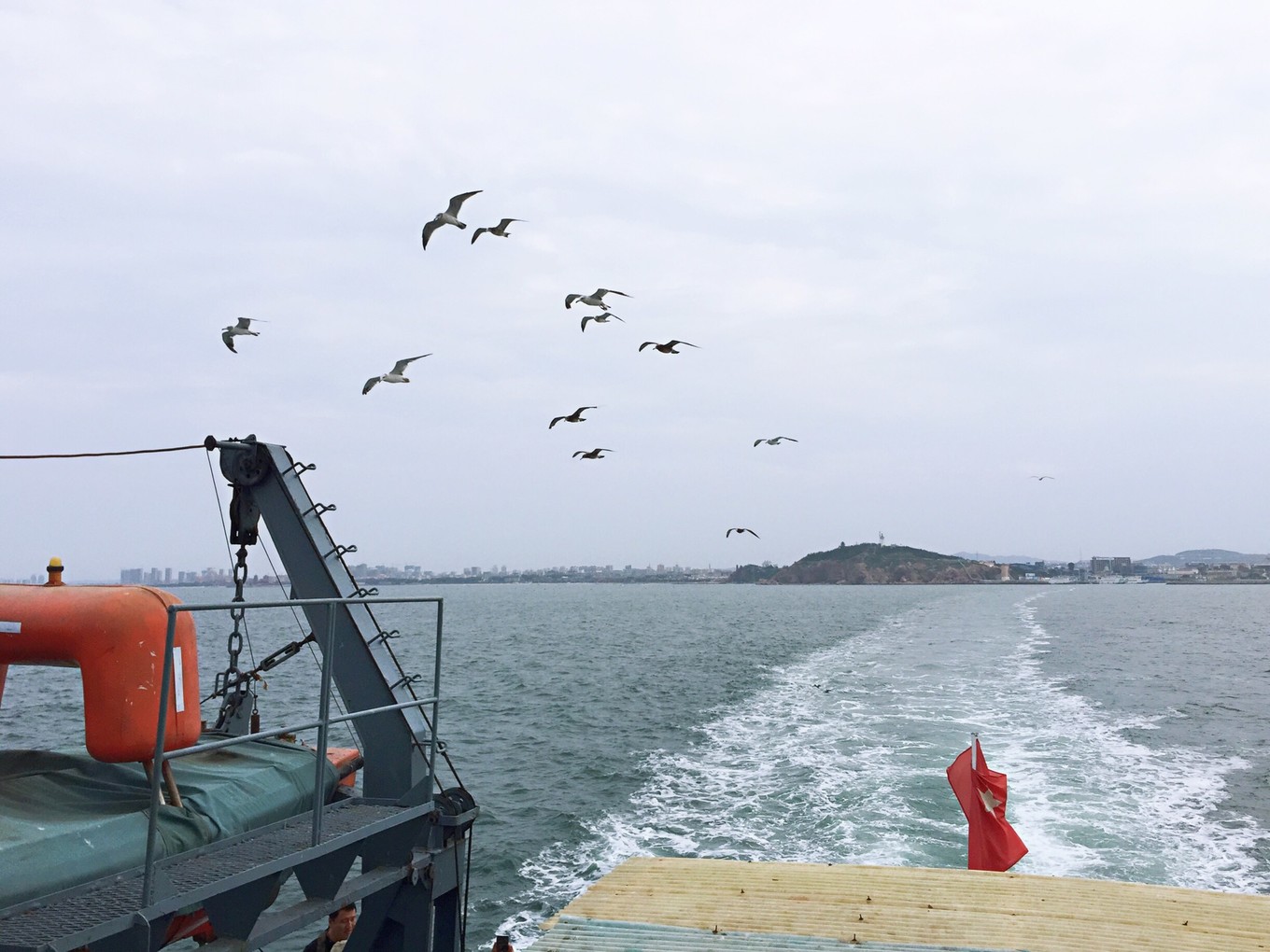 就這樣,45分鐘的航程,海鷗逆風而翔,一路相隨,成為客輪上的一道風景線。