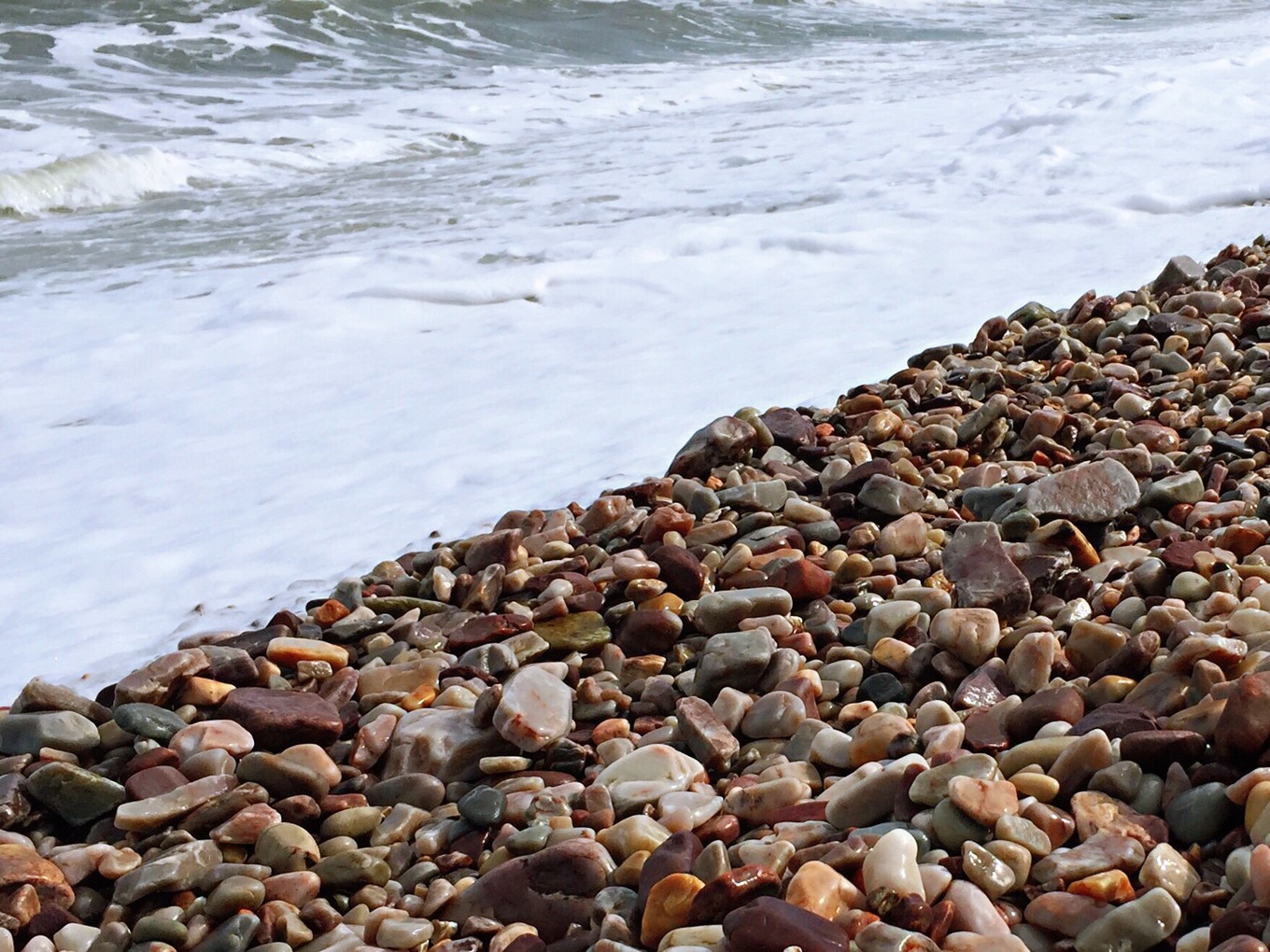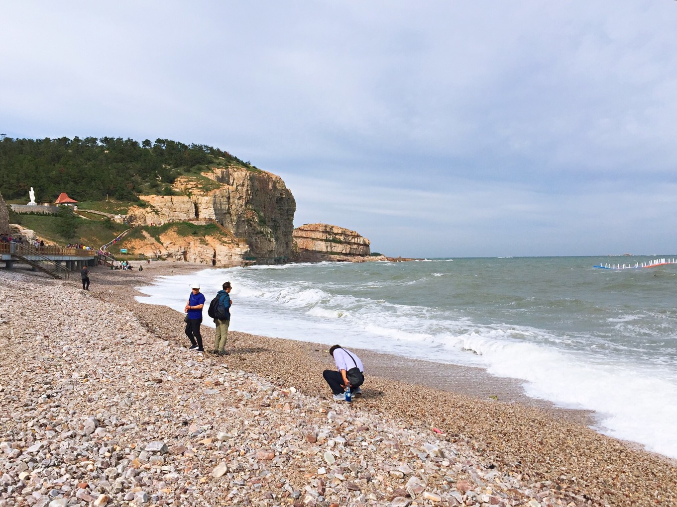 九丈崖的海灘與其他海的沙灘不一樣,是由各色球石組成的,這些球石經(jīng)海水千萬次的沖刷,被打磨的光滑圓潤,在海水的浸泡下,晶瑩剔透,五顏六色,十分好看。