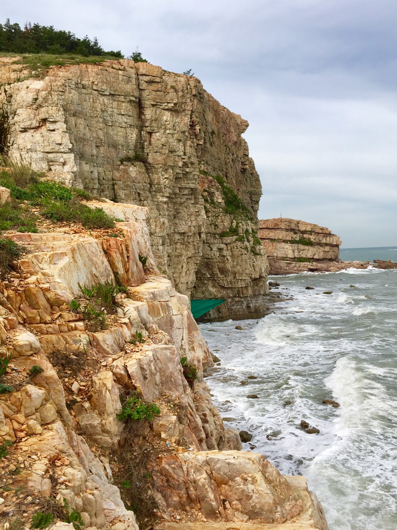8:15到達九丈崖,景區(qū)坐落于北長山島西北角,是1億年前的燕山構(gòu)造運動和喜馬拉雅山造山運動所形成的。