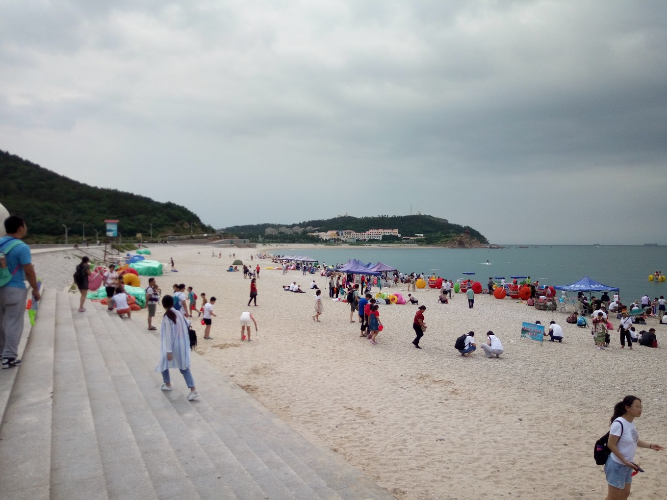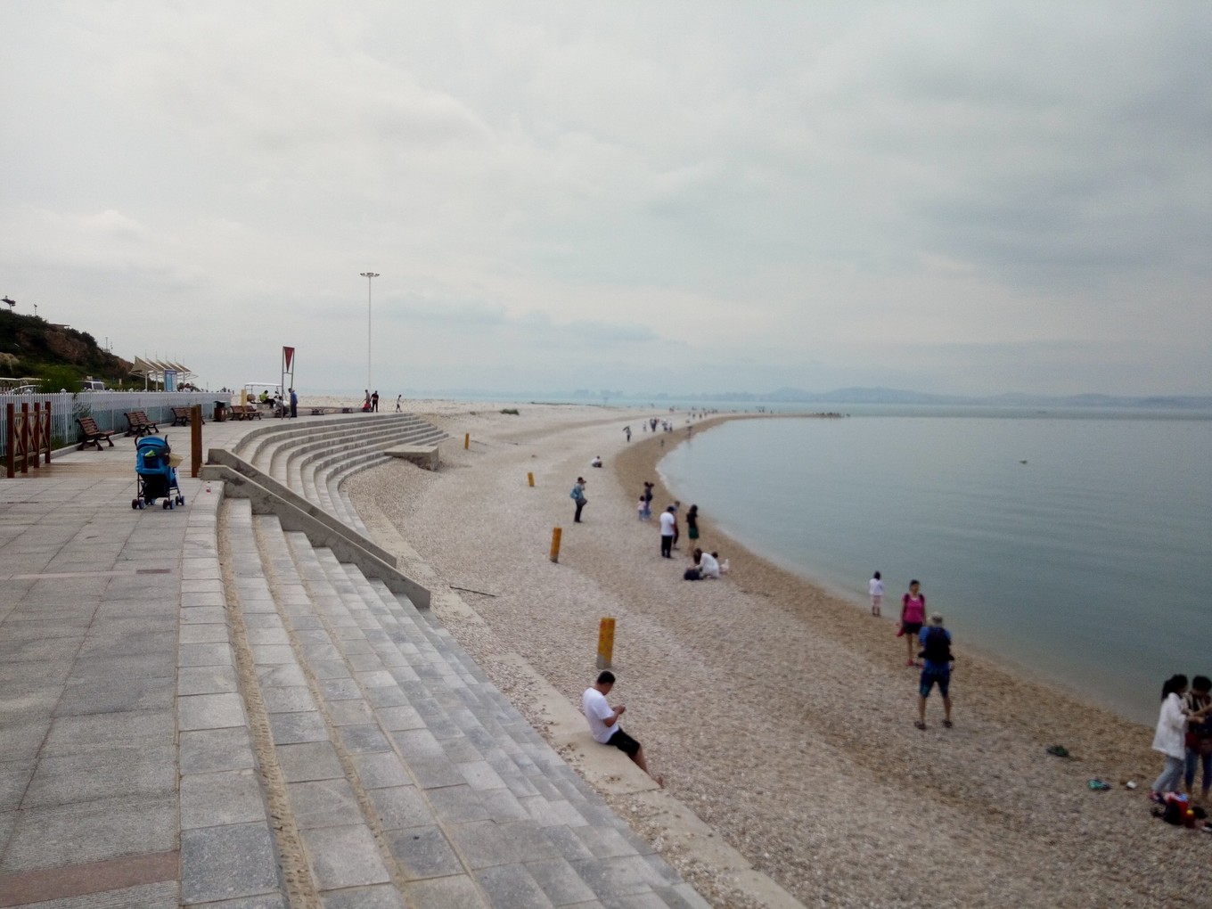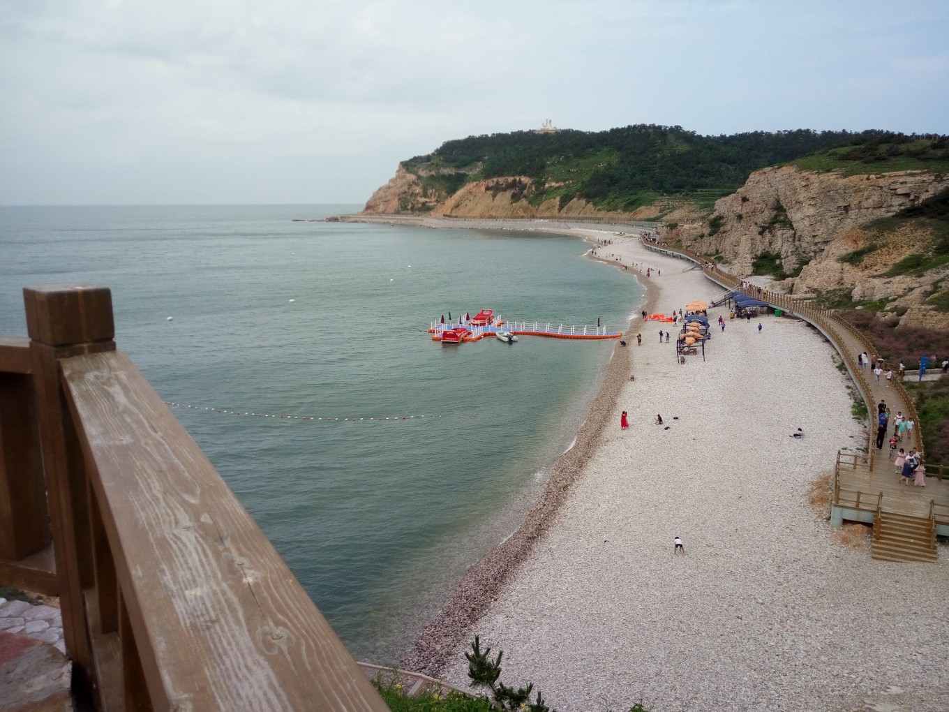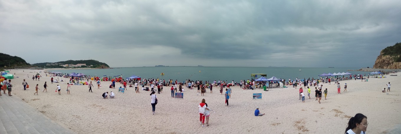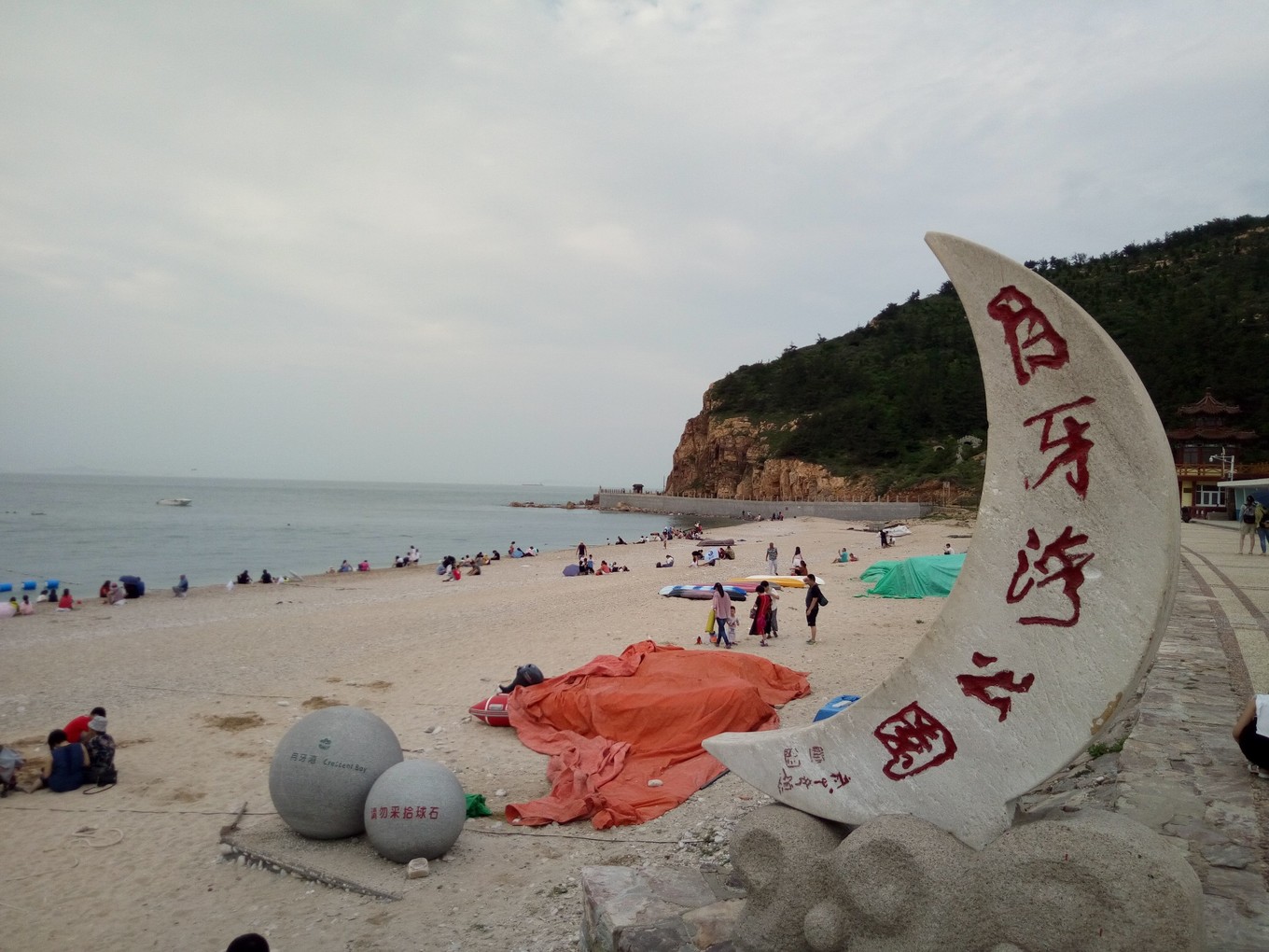 月牙海灘除了是天然的海水浴場,還是全國罕見的礫石灘,到處是色彩斑斕的球石。