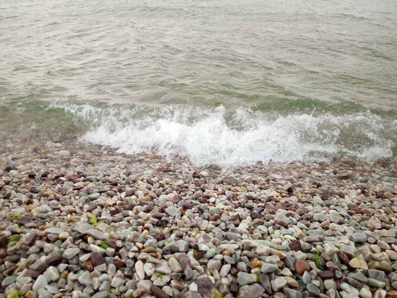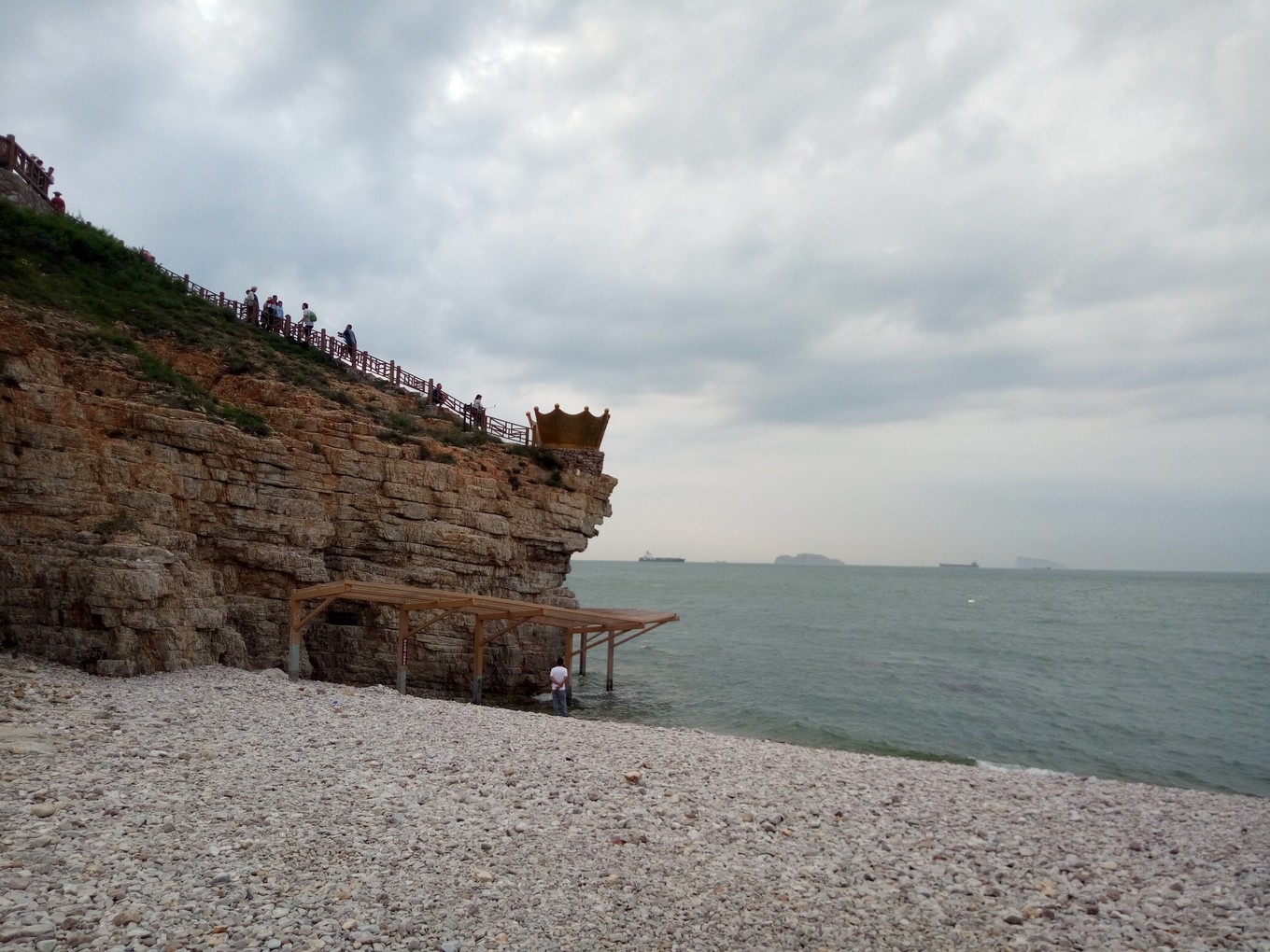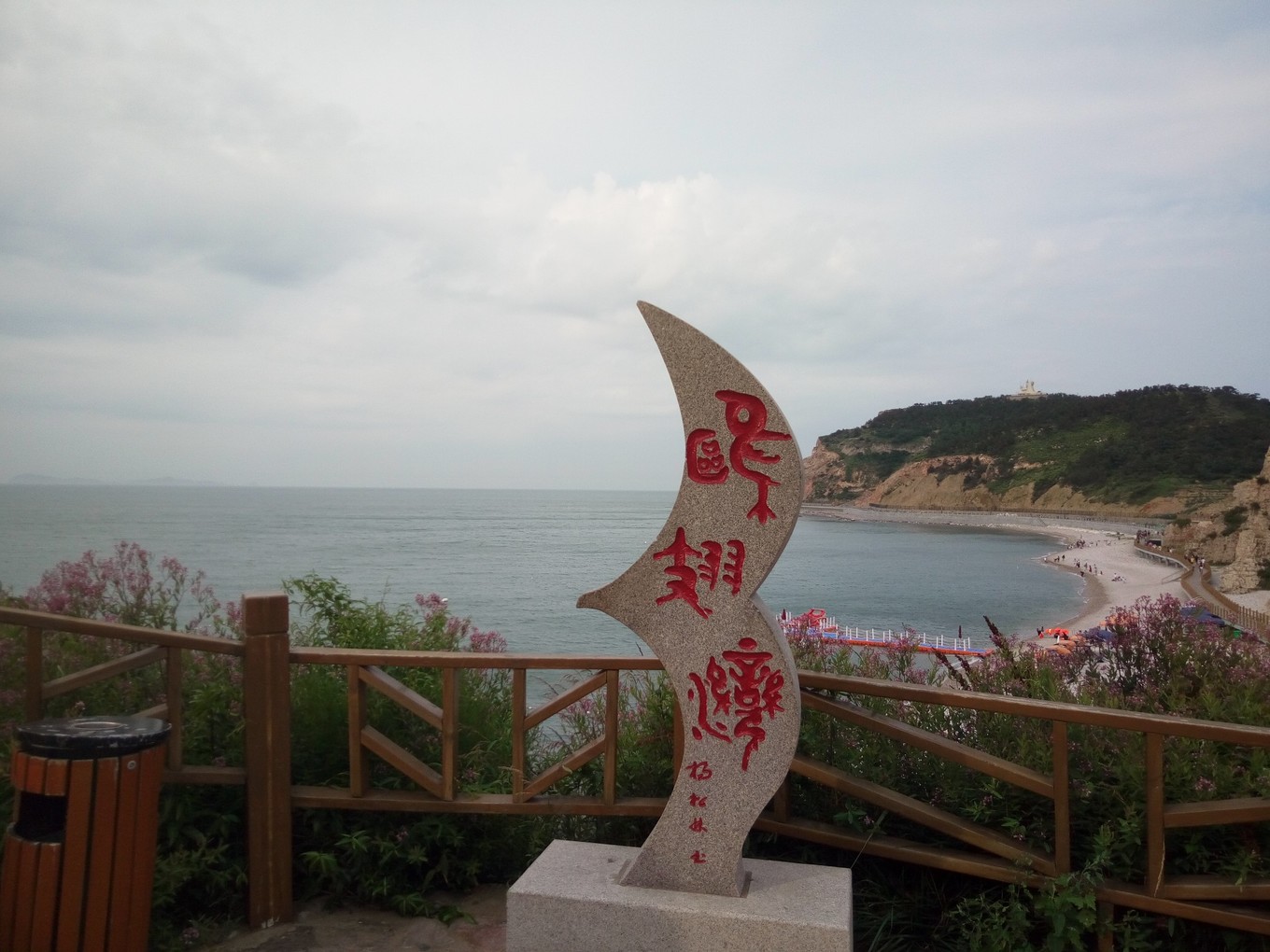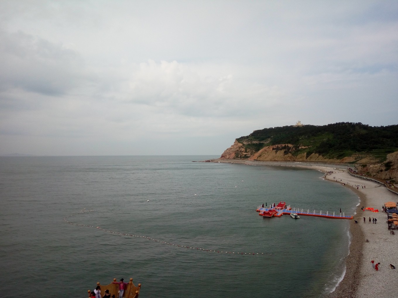 月牙海灘除了是天然的海水浴場,還是全國罕見的礫石灘,到處是色彩斑斕的球石。