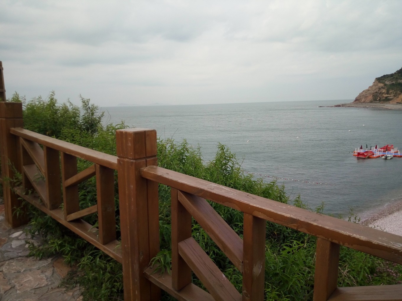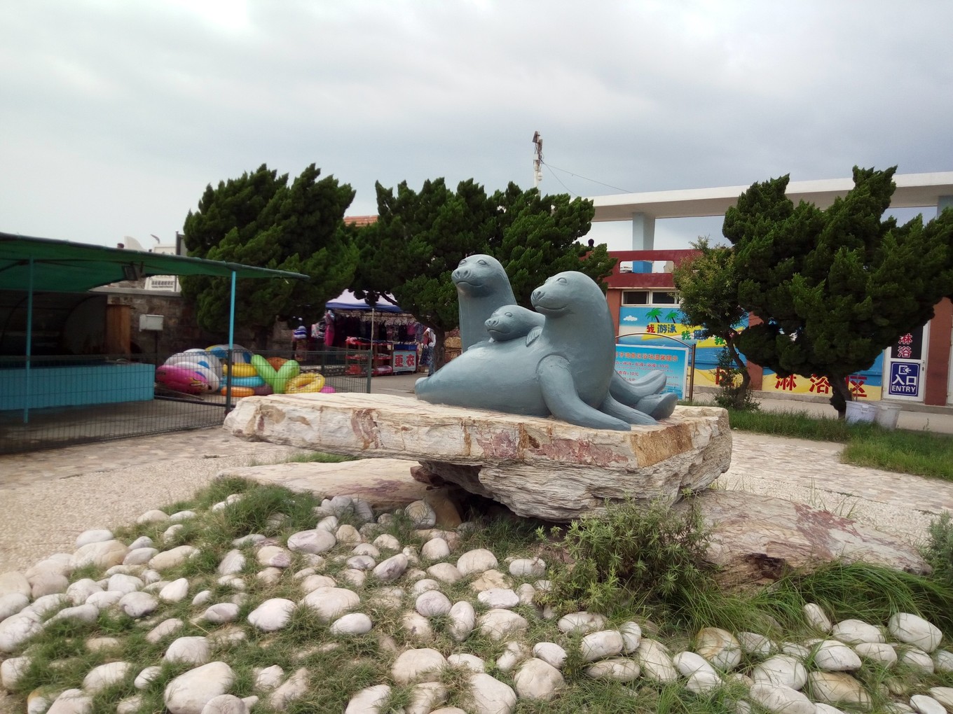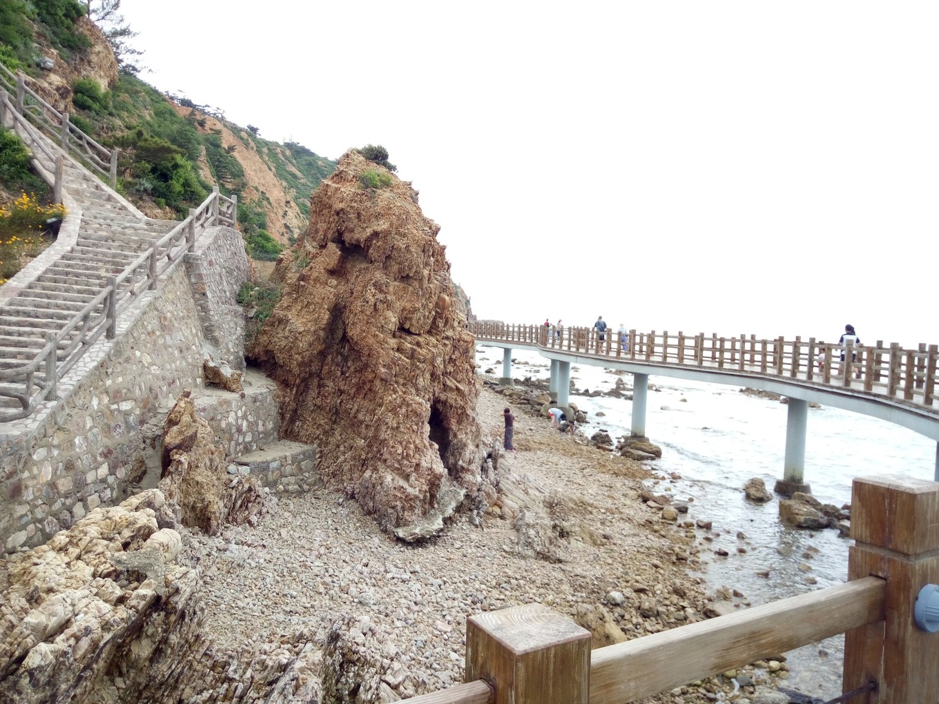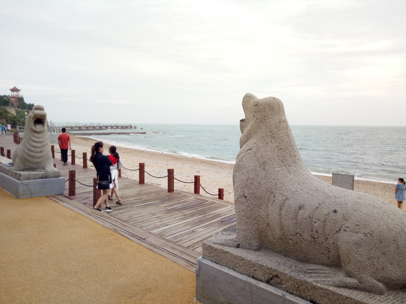 月牙海灘除了是天然的海水浴場,還是全國罕見的礫石灘,到處是色彩斑斕的球石。