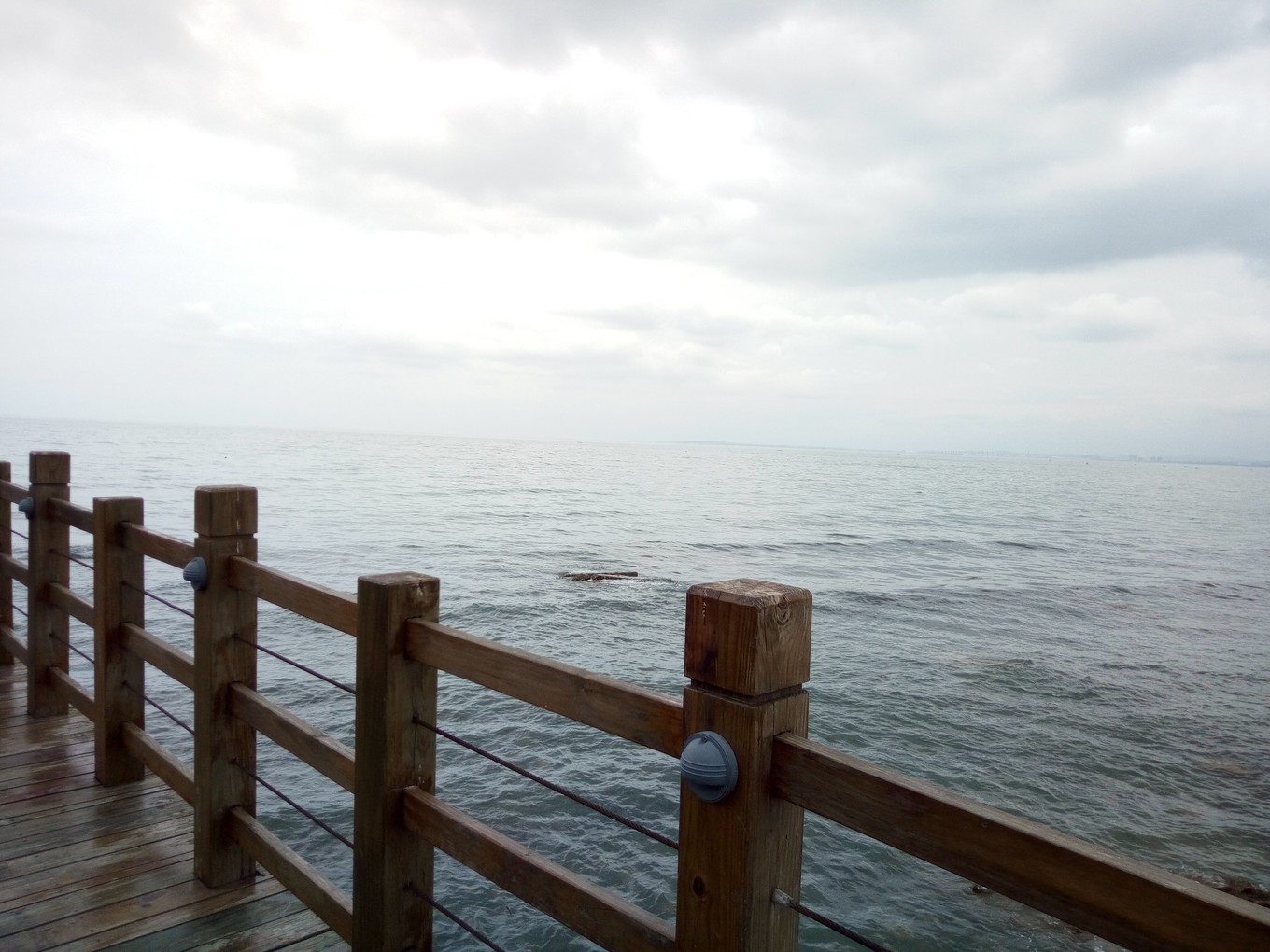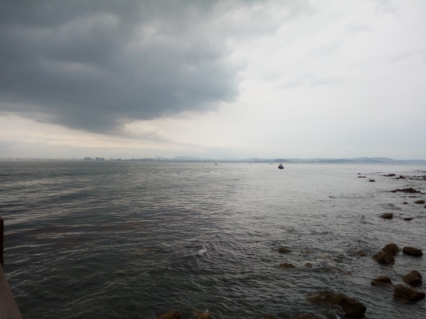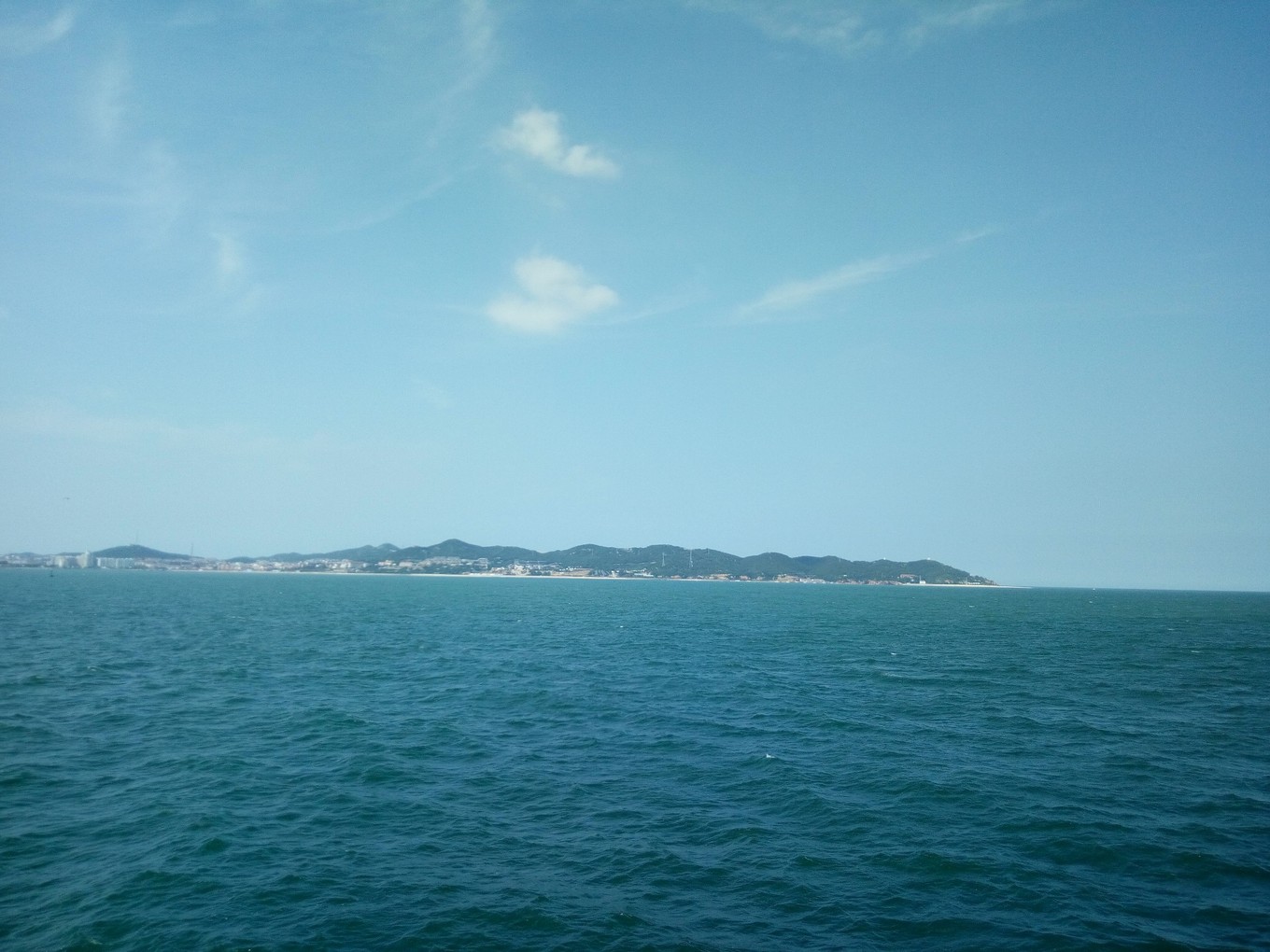 遠(yuǎn)觀長山尾黃渤海分界線,左側(cè)深色為渤海,右側(cè)淺色為黃海 PS:因為陰天原因,照片有些灰暗