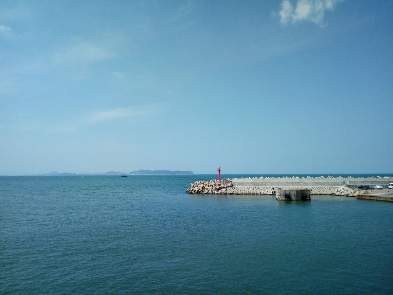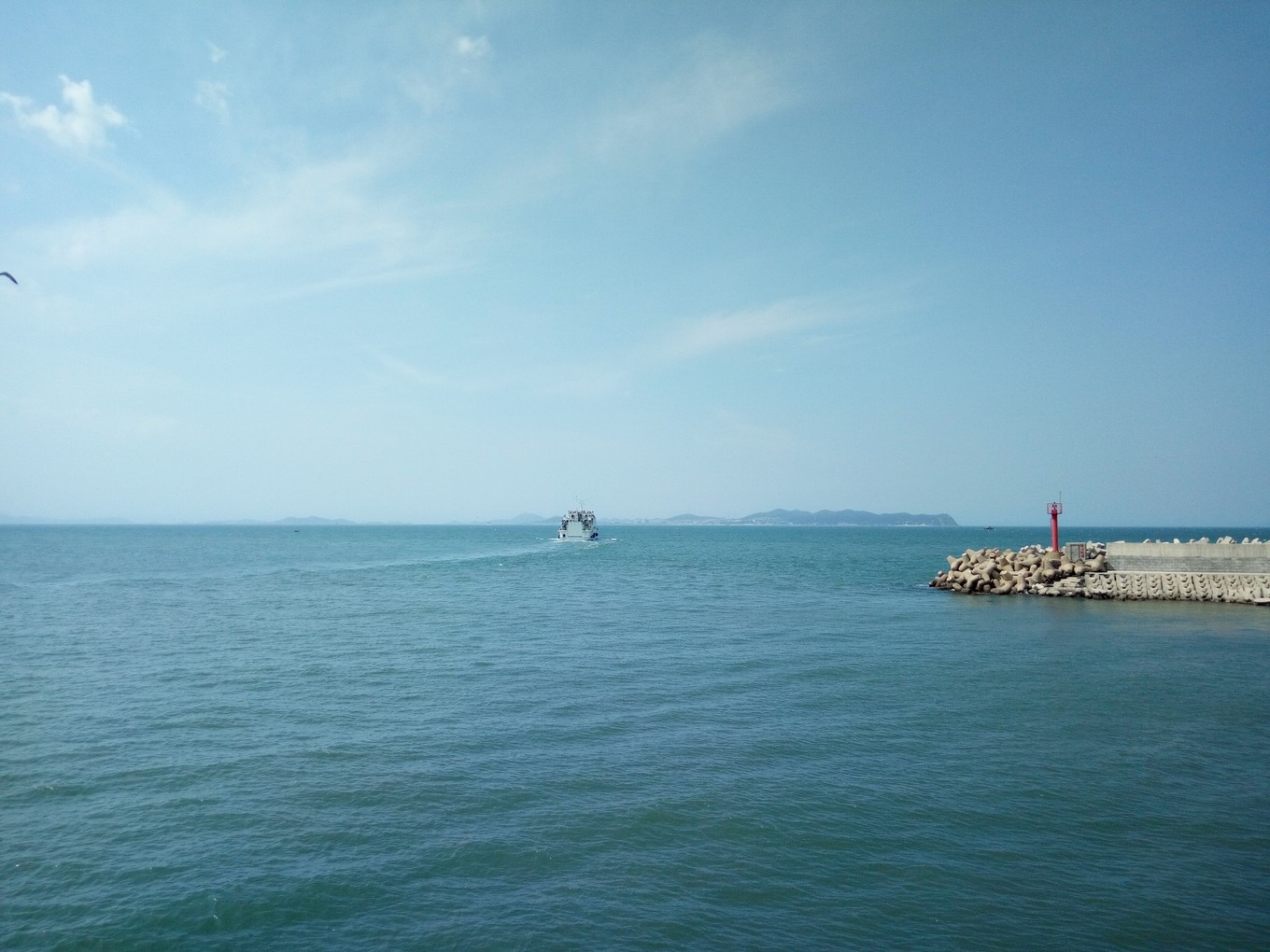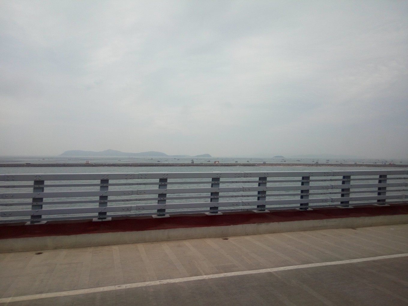 遠(yuǎn)觀長山尾黃渤海分界線,左側(cè)深色為渤海,右側(cè)淺色為黃海 PS:因為陰天原因,照片有些灰暗