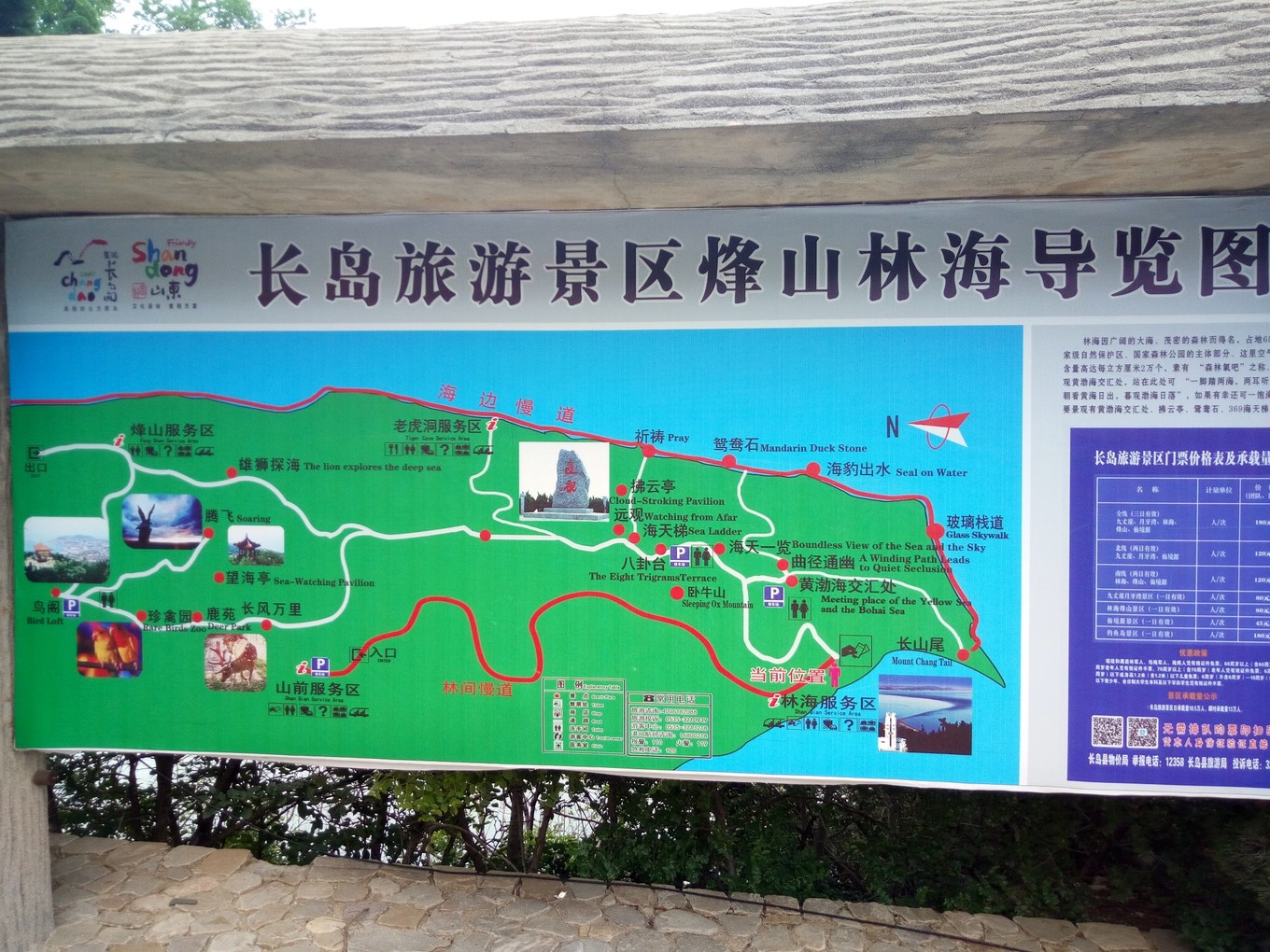 瀏覽建議:1、適合體力與時間充沛的蜂友,可以先步行上山,到達(dá)峰山山頂,觀看黃渤海交匯處,然后沿著369臺階下山,到達(dá)海上玻璃棧道,沿路到達(dá)長山尾,近距離欣賞黃渤海交匯