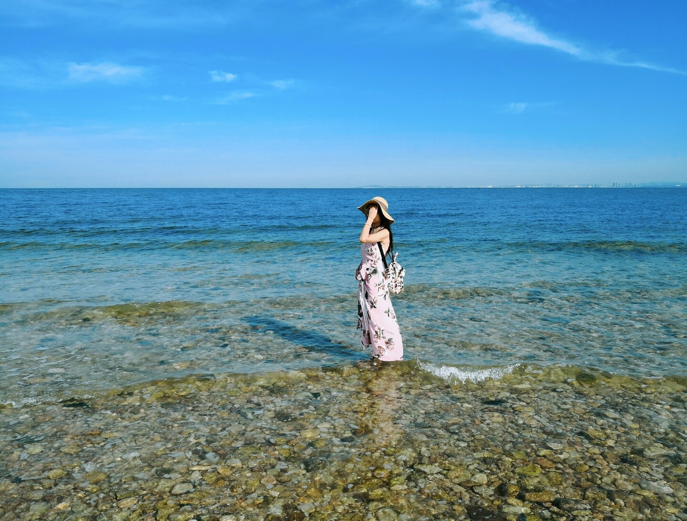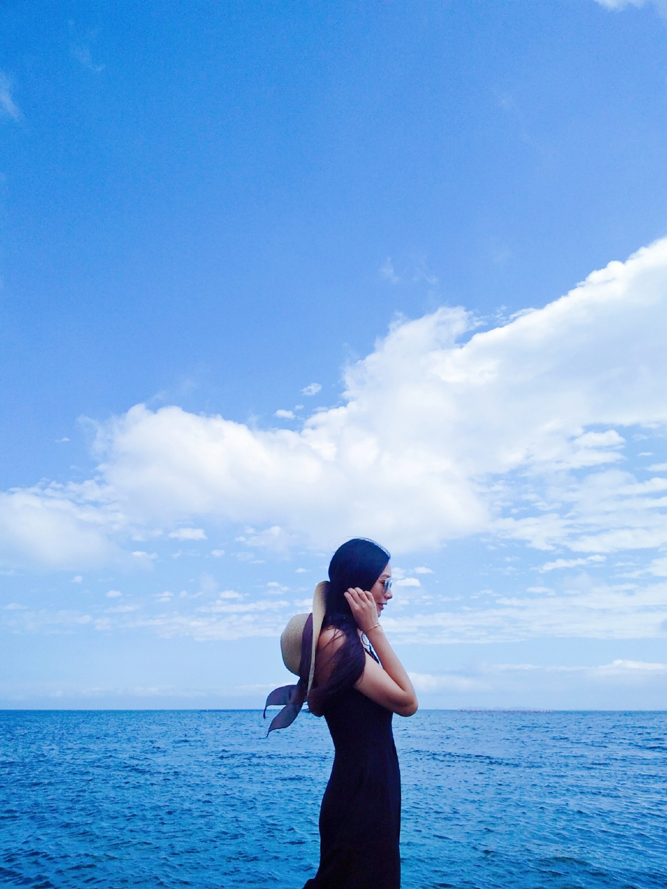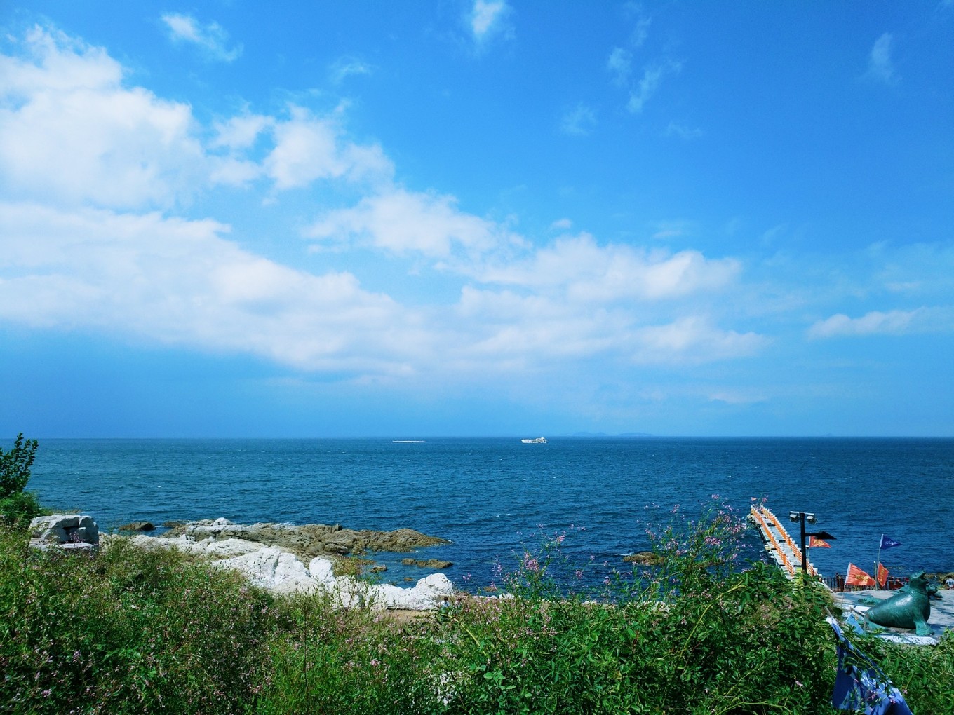 天氣特別好,天空和海水藍(lán)的不像話,海天一色