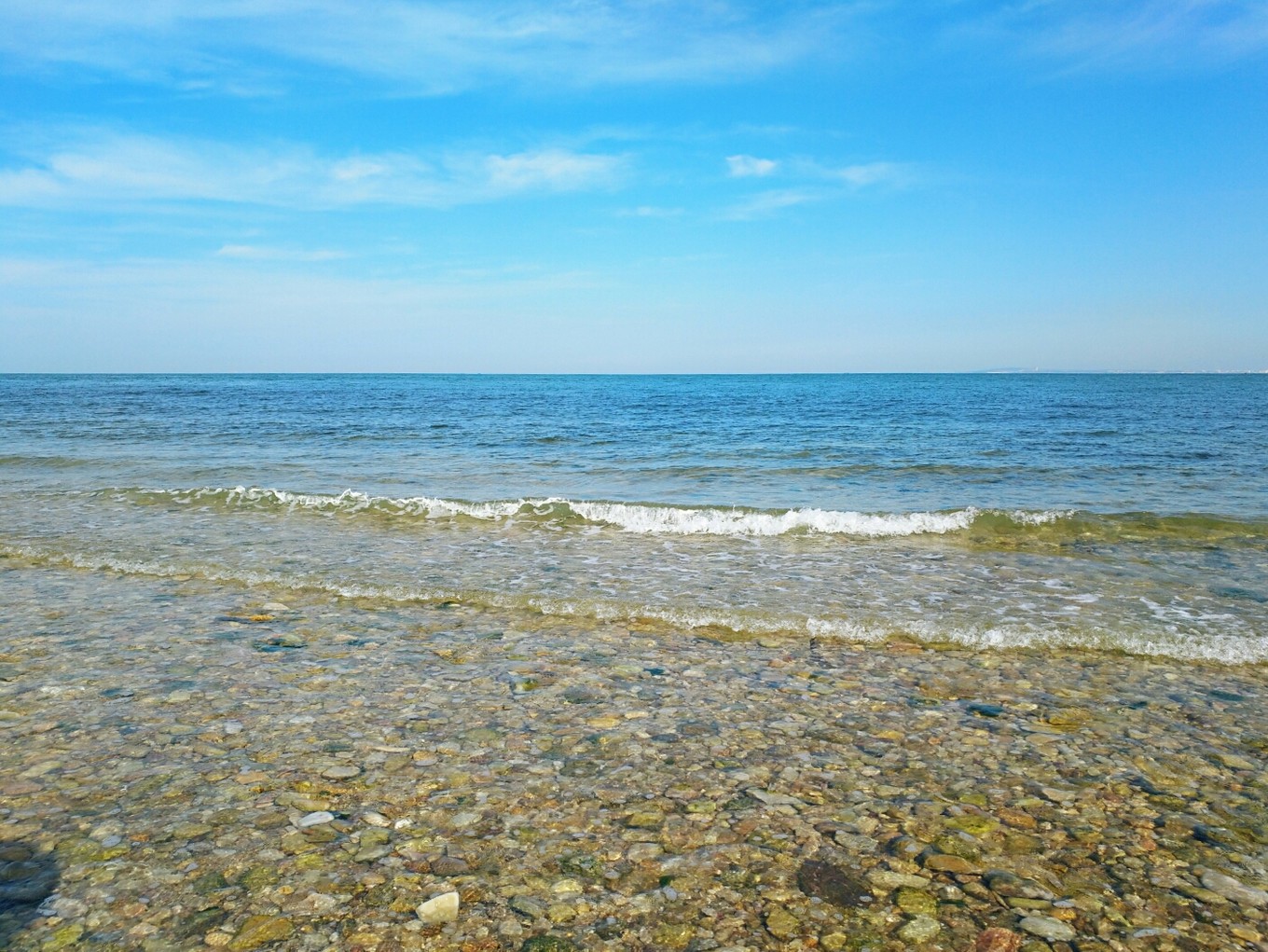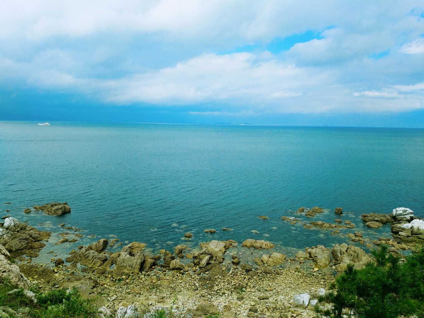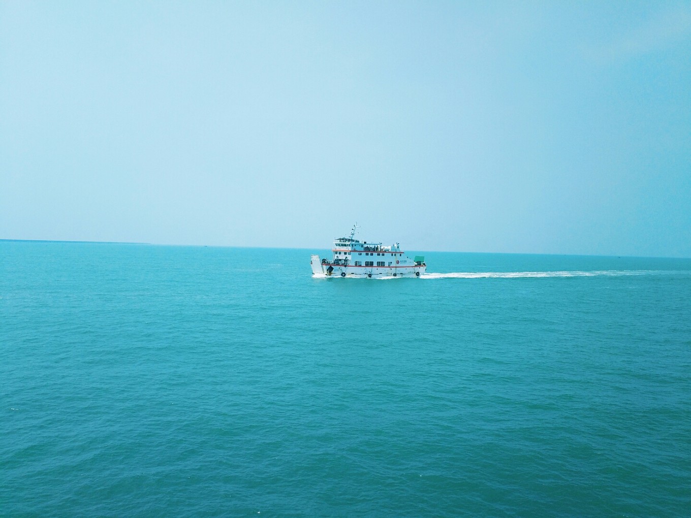 天氣特別好,天空和海水藍(lán)的不像話,海天一色