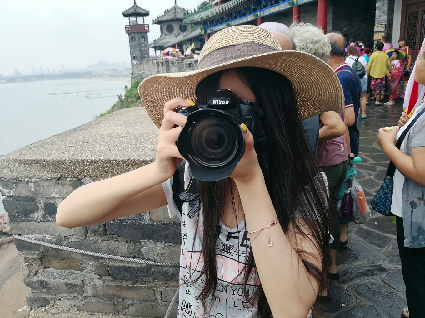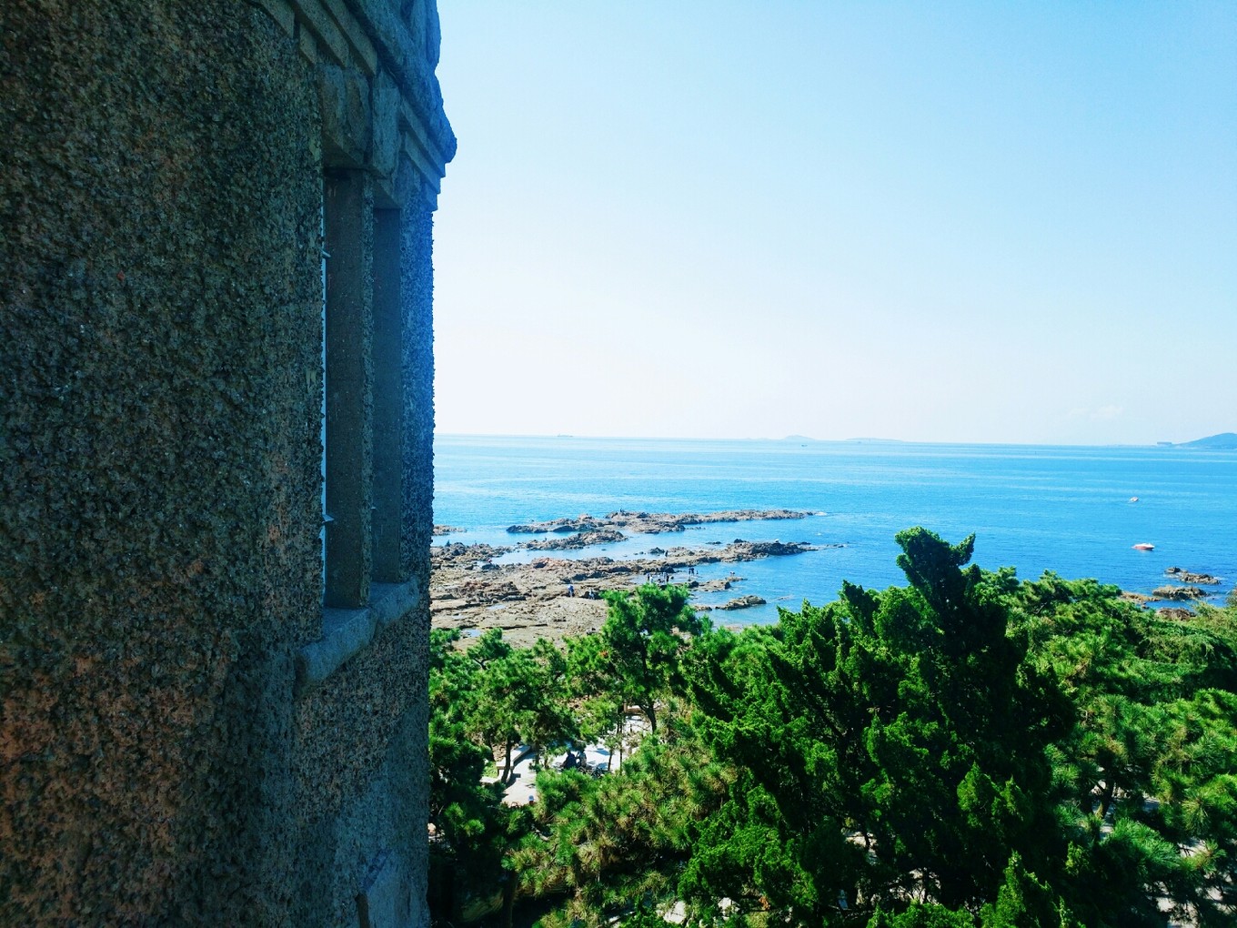 8:10吃完早飯我們就開車離開了,到達(dá)蓬萊閣是早上10:10,因?yàn)橄掠甑脑?,去往長島的船停航了,于是我們打算先玩玩蓬萊閣,導(dǎo)航導(dǎo)到蓬萊閣西門,停車場都是收費(fèi)的10元不限時(shí),在停車收費(fèi)那個(gè)人那里能買到比窗口優(yōu)惠一點(diǎn)的票,如果是學(xué)生票就去窗口買,半價(jià)70元/人能省不少,纜車是去田橫山頂?shù)?,沒多高走個(gè)10分鐘就到了,我們沒買票直接上去的。