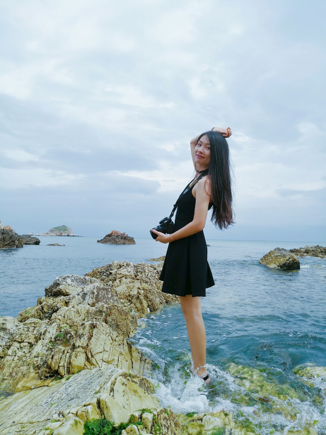 長島分南島和北島,我們住在了南島,離港口坐船的地方很近,九丈崖在北島,從漁家樂到九丈崖約半小時(shí),本想在九丈崖看日落的,可惜那天云太厚了太陽在半空中就隱藏了起來。