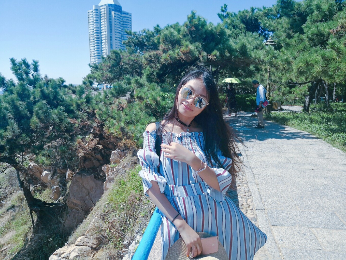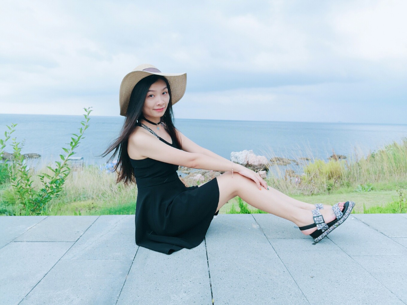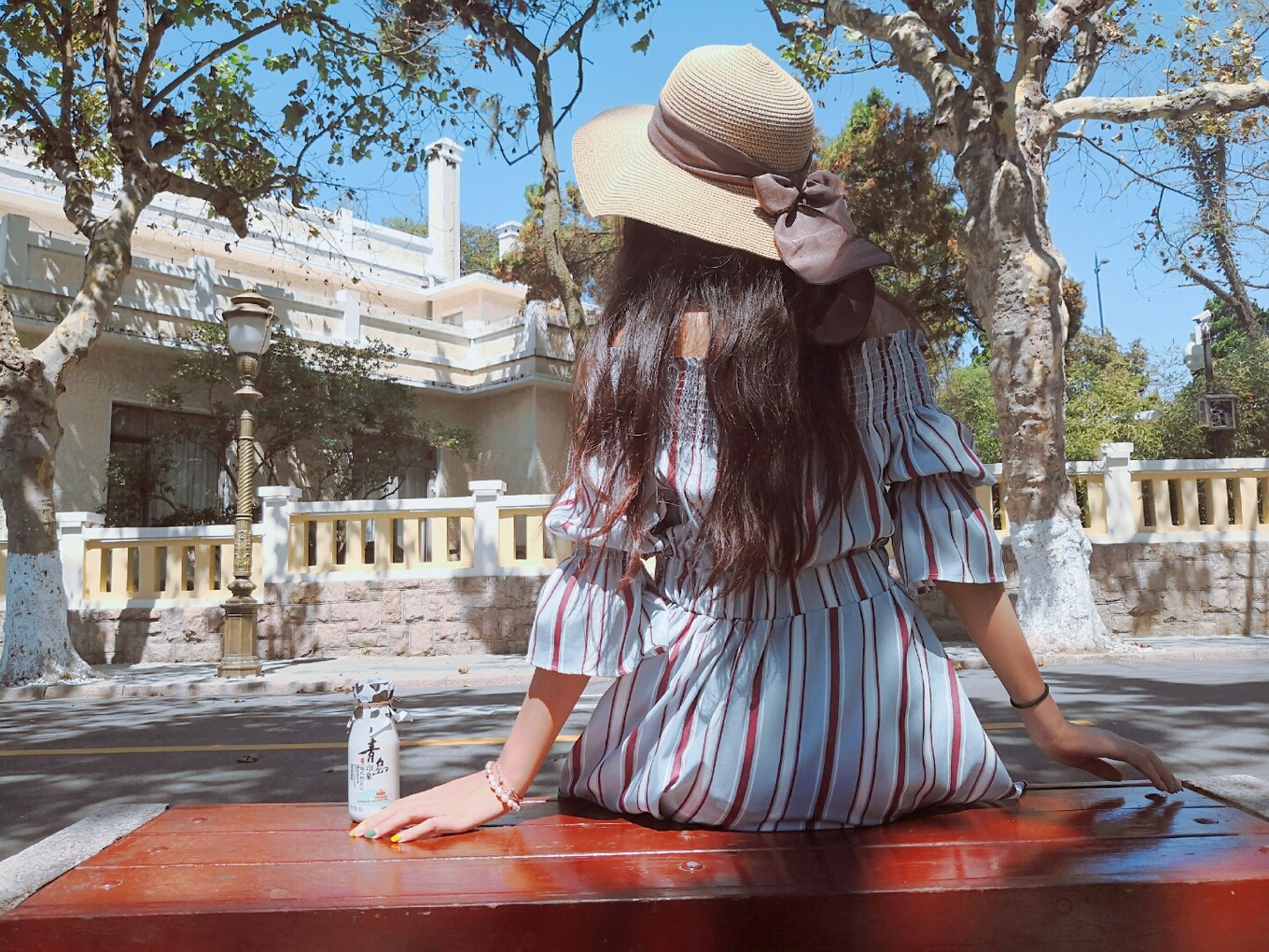 裙子不適合拍坐地照片,因?yàn)樘菀鬃吖饫?,哈哈哈,并且地上被太陽曬得真的很燙很燙。