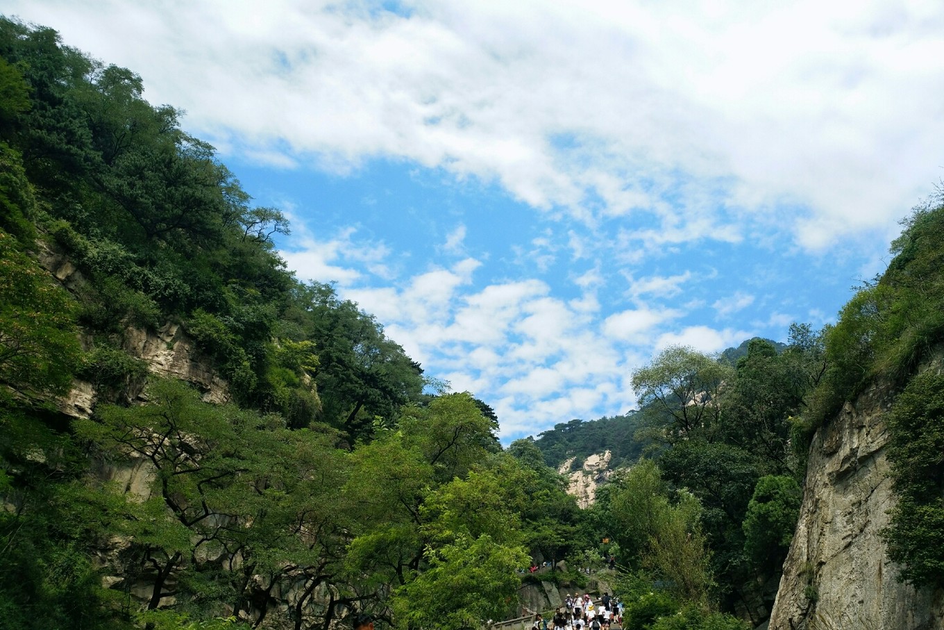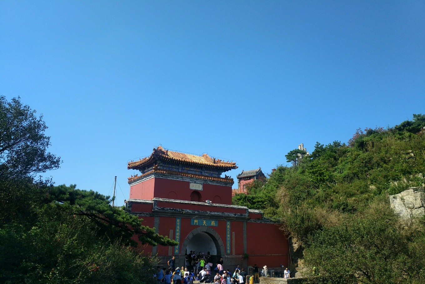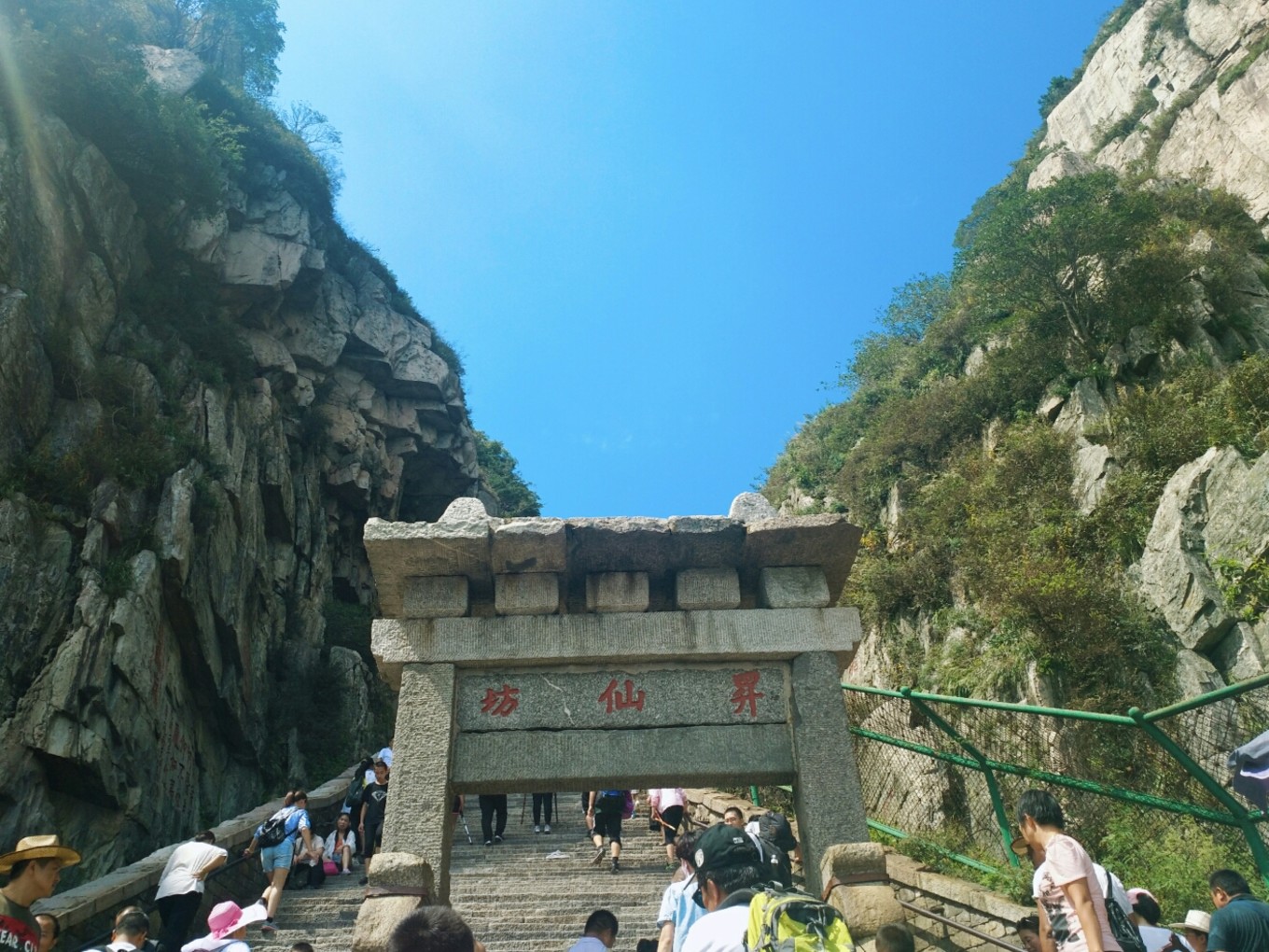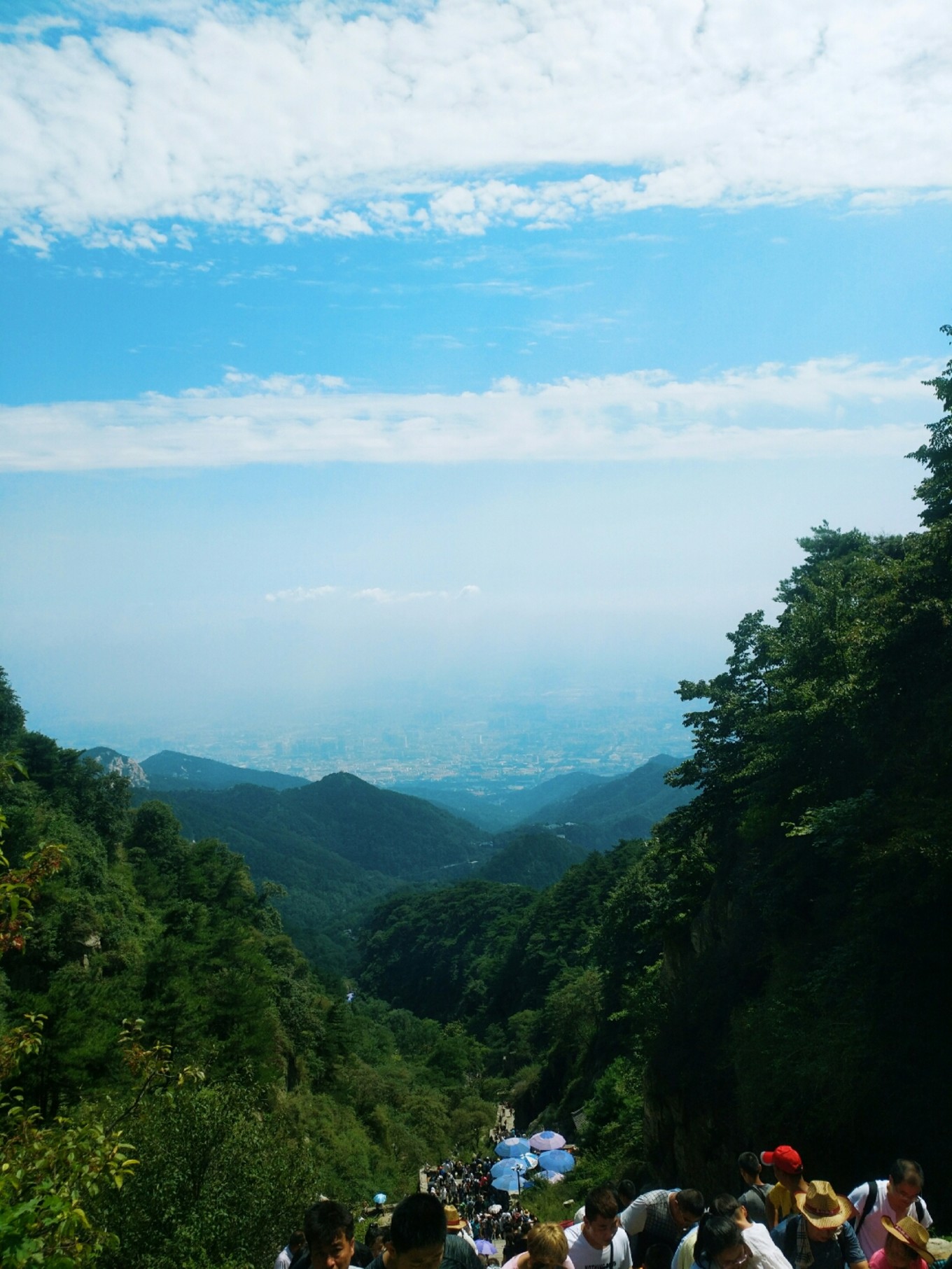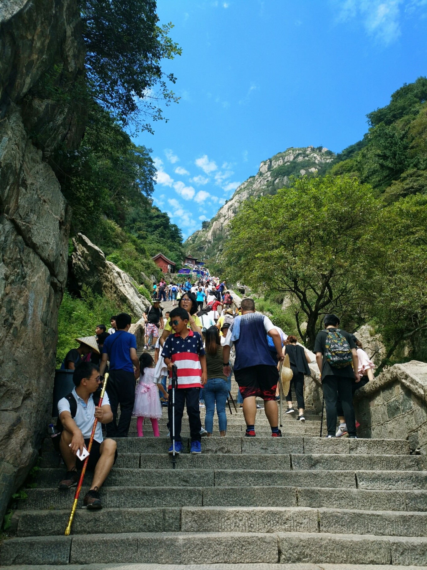 看下圖,山坳坳處就是南天門的位置。沒錯好多人看到之后都表示很絕望,但沒辦法還是要繼續(xù)往上爬,有個(gè)小朋友直接就哭了,邊哭邊走,嘴里還不停的哭著說不想走了,但還是跟著他媽媽一直往前走。