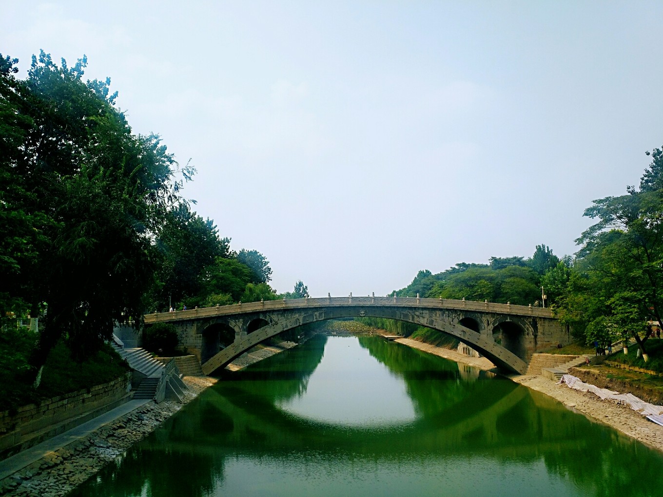 早上8:20吃完早飯從酒店出發(fā),路上也遇到了堵車,后來才知道原來是兩輛大貨車相撞,擋在了路中間。大概12:30左右到達(dá)趙州橋景區(qū)停車場,在這里要注意啦,停車場里面有一個(gè)售票窗口,賣的票是趙州橋和古橋博物館的聯(lián)票,原價(jià)是40元趙州橋+20元博物館。剛開始不知道,買了聯(lián)票,先把博物館轉(zhuǎn)了一圈,博物館對古橋簡介的英文翻譯真的是不敢茍同啊,出停車場往趙州橋那邊走的時(shí)候又有一個(gè)趙州橋的售票窗口,不知道這個(gè)窗口是不是賣的聯(lián)票,但好在我們買的學(xué)生票,挽回了一些損失。