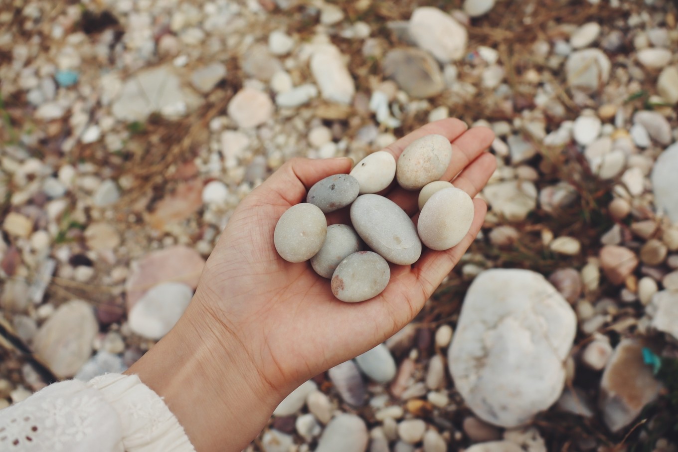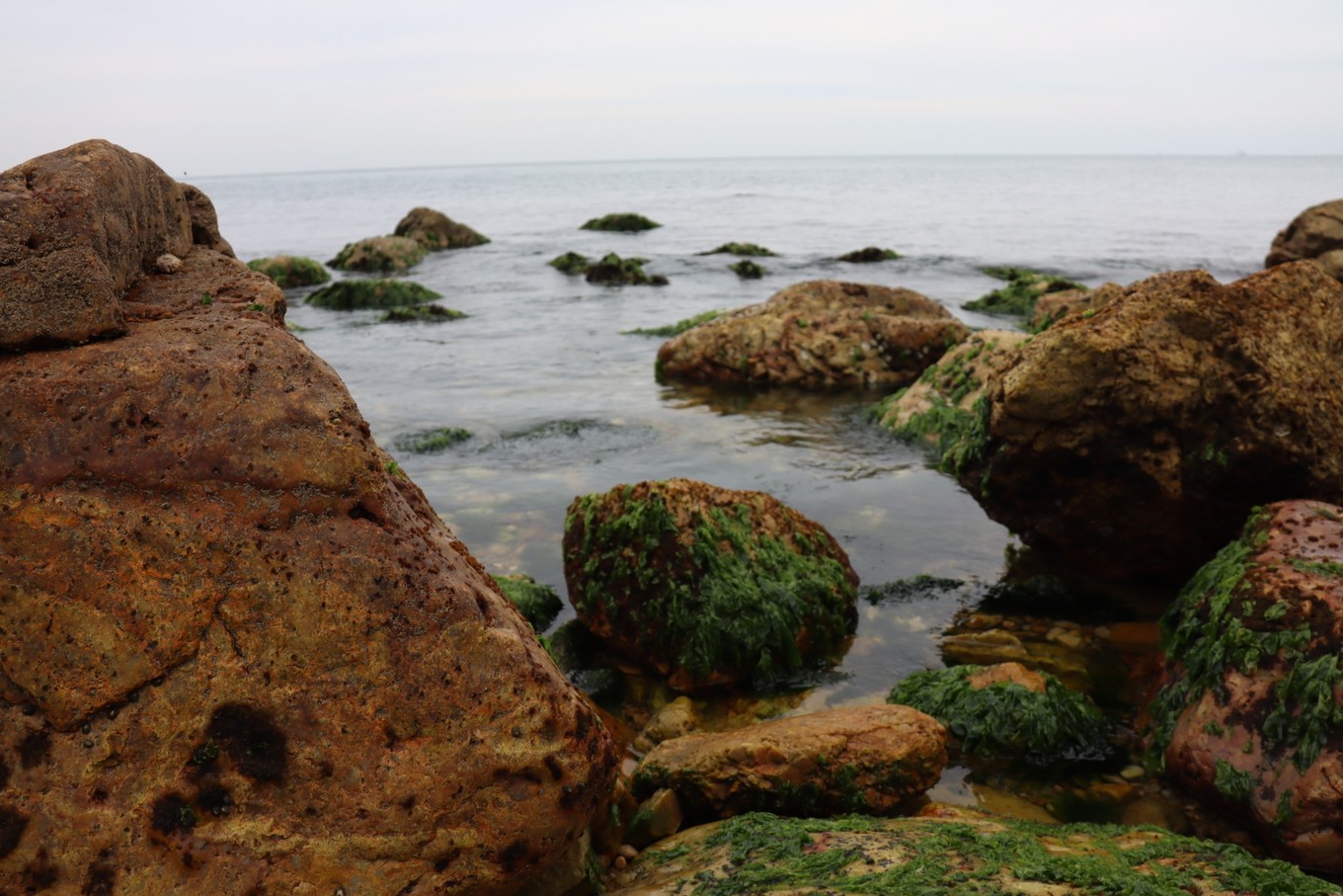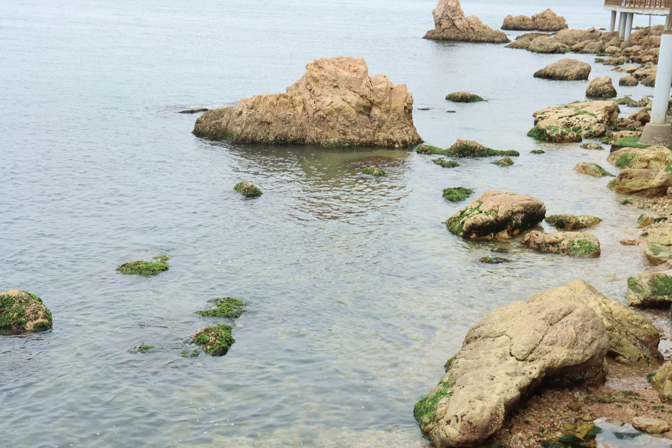 好多圓形石頭,應(yīng)該是長(zhǎng)時(shí)間經(jīng)過(guò)海水洗滌打磨形成。