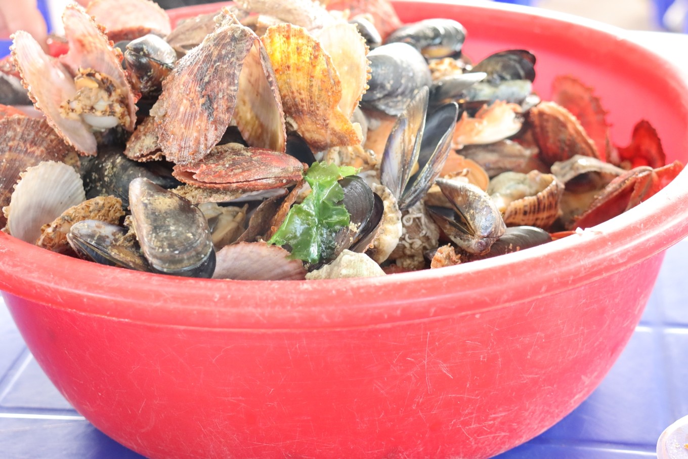 剛出鍋的海鮮,趁熱吃很肥美。