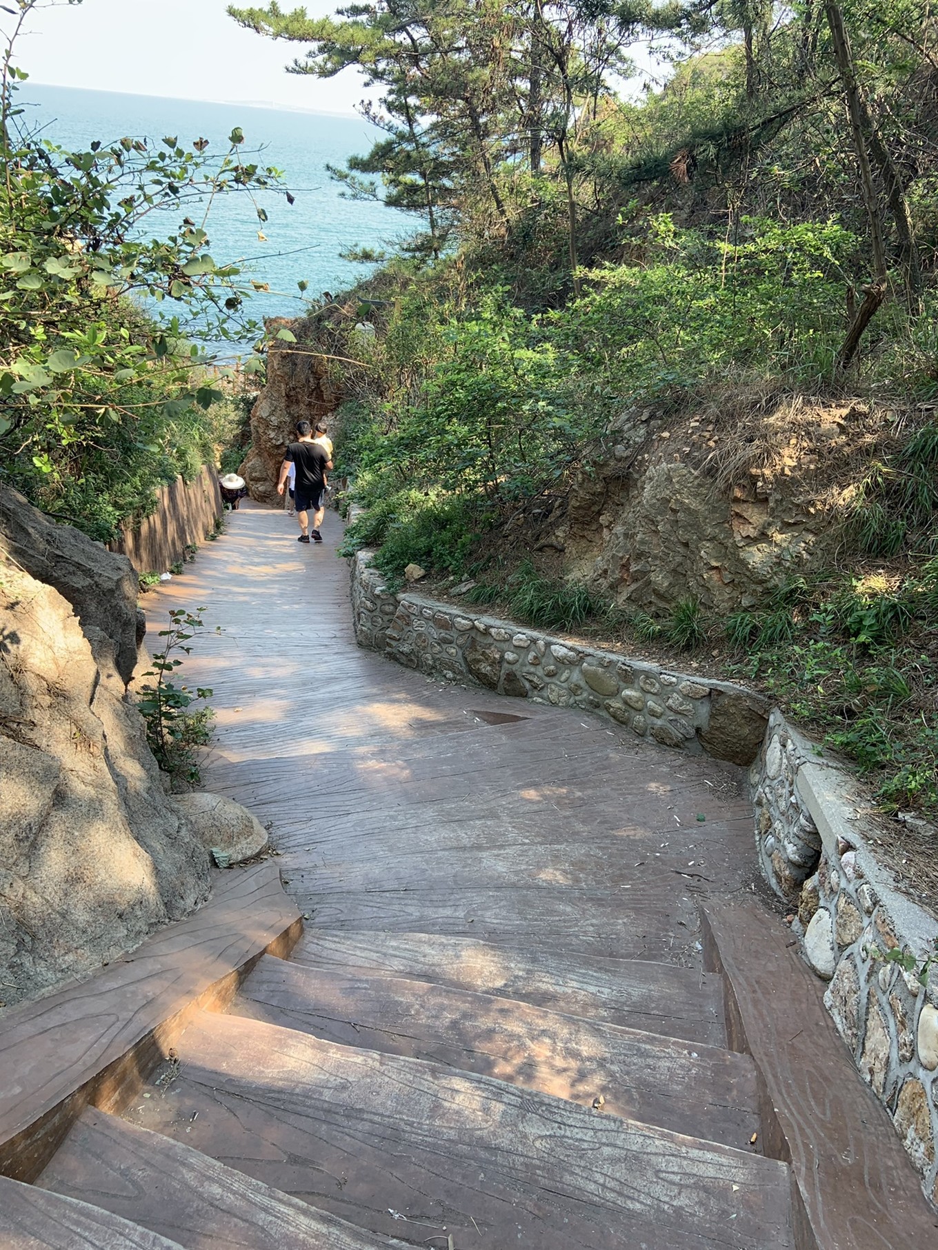 從黃渤海標(biāo)志建筑物下來(lái),往右有一條下去的路,走下去就是玻璃棧道,要走好遠(yuǎn)的下山路,路是很好走,就是遠(yuǎn)~