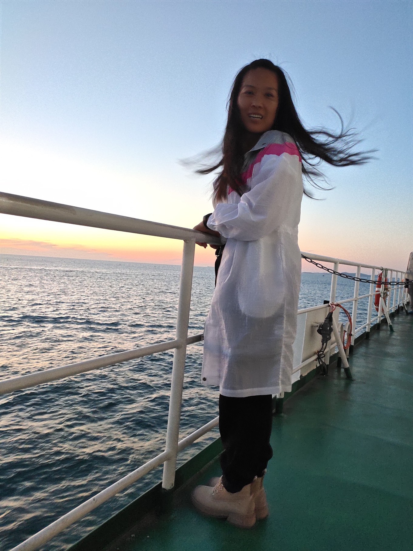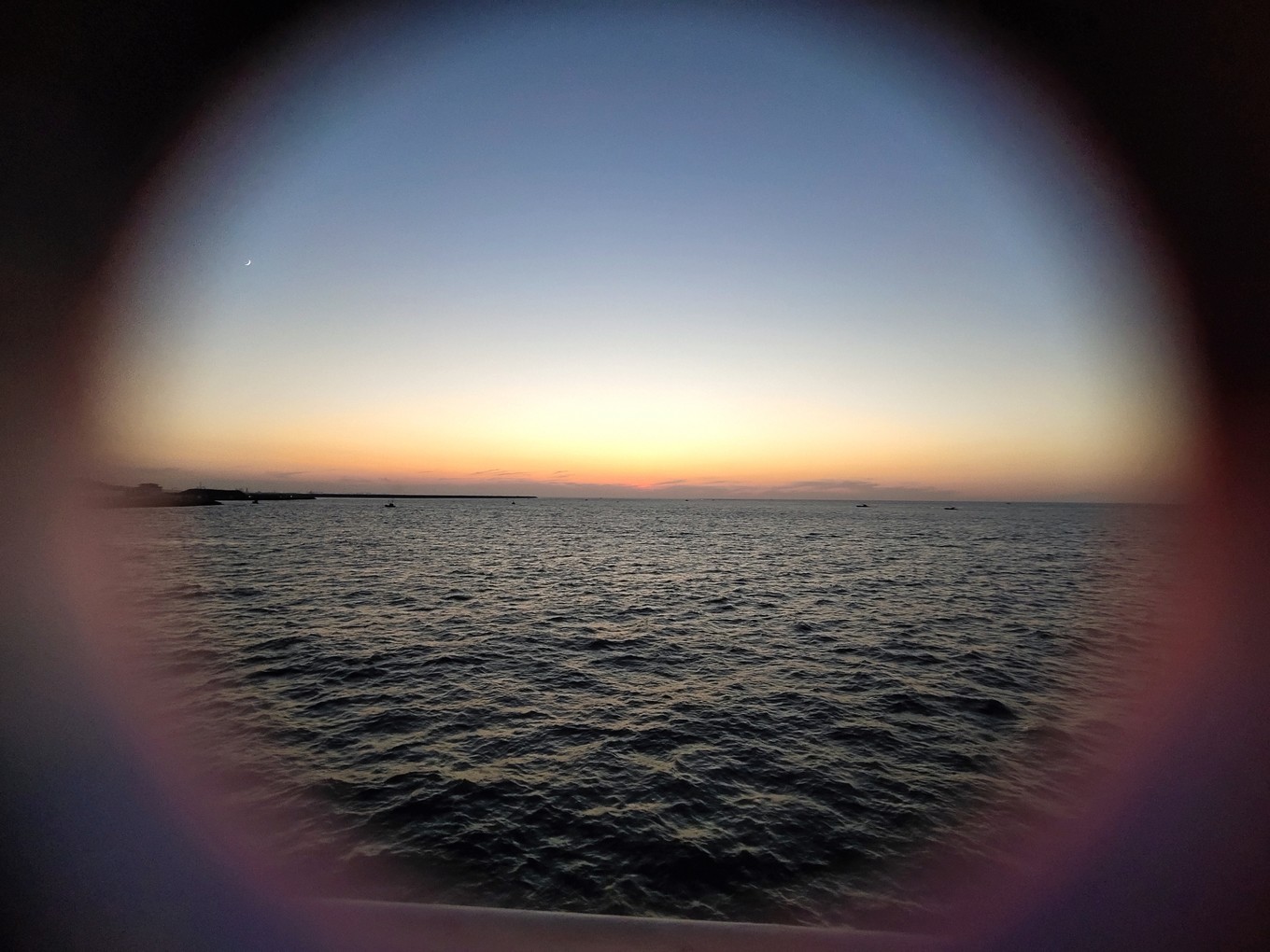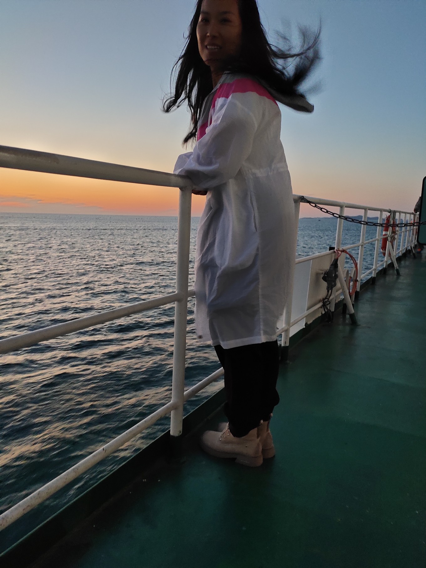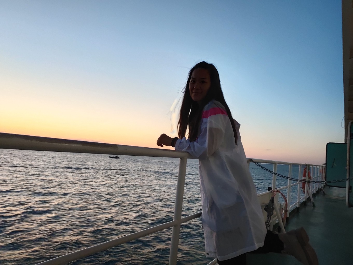 海上看日出很美,可惜我們沒趕上,只看到了余輝。