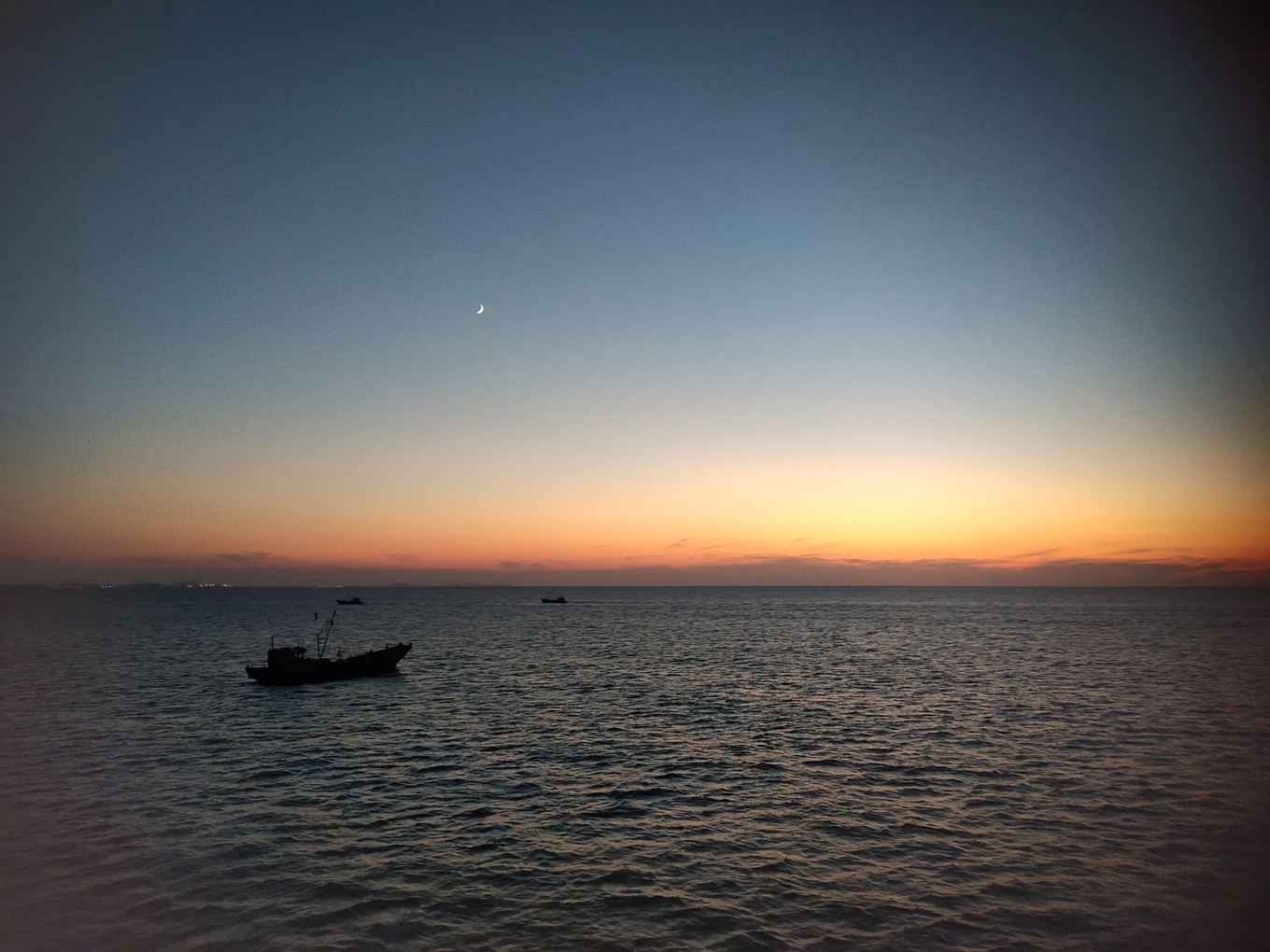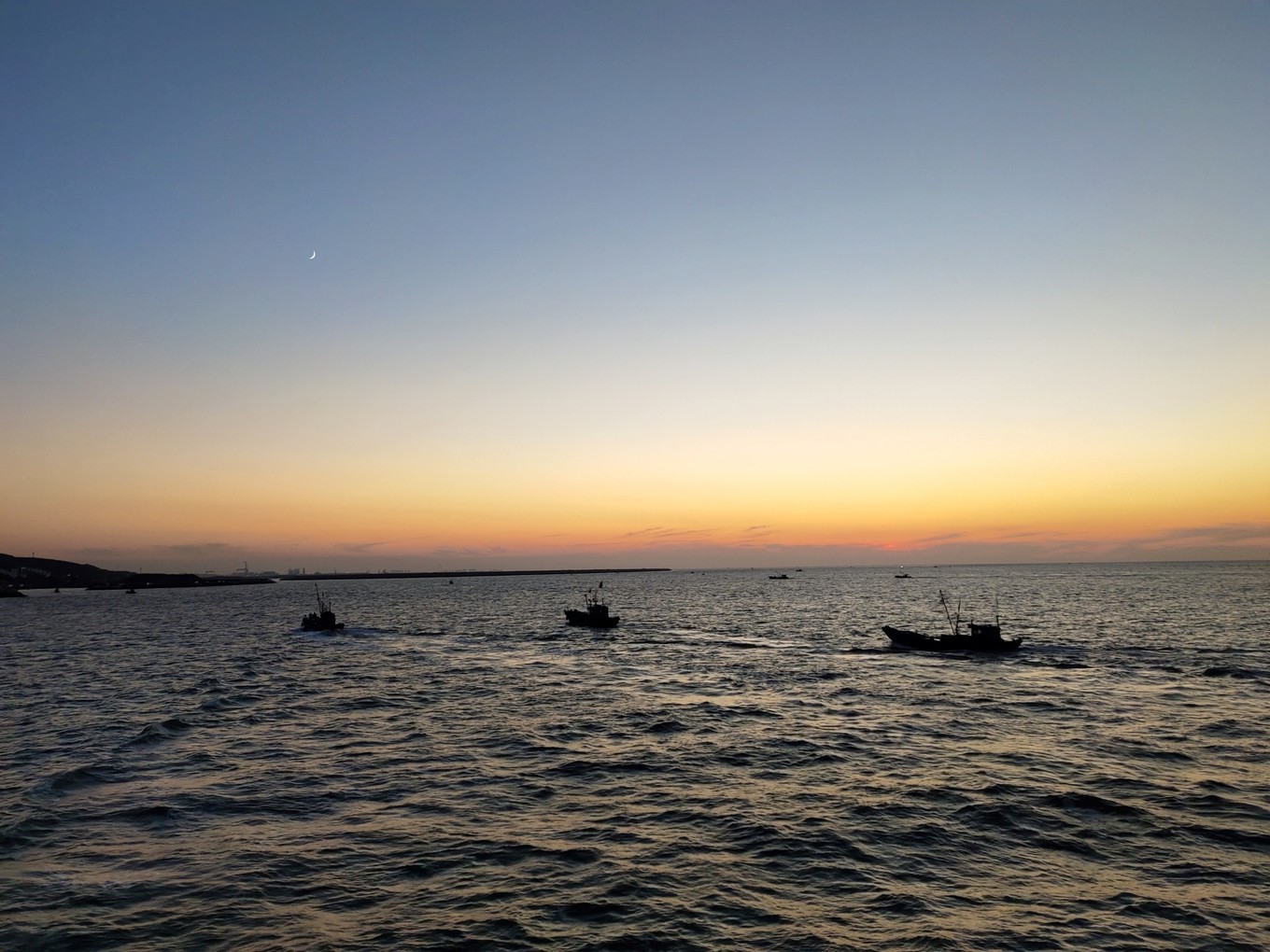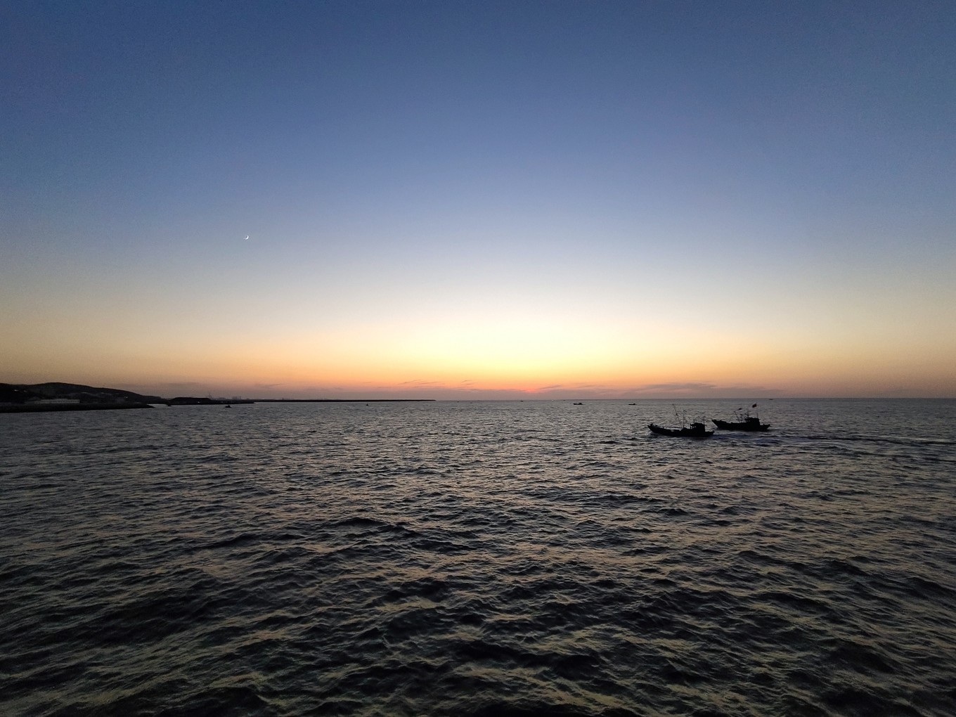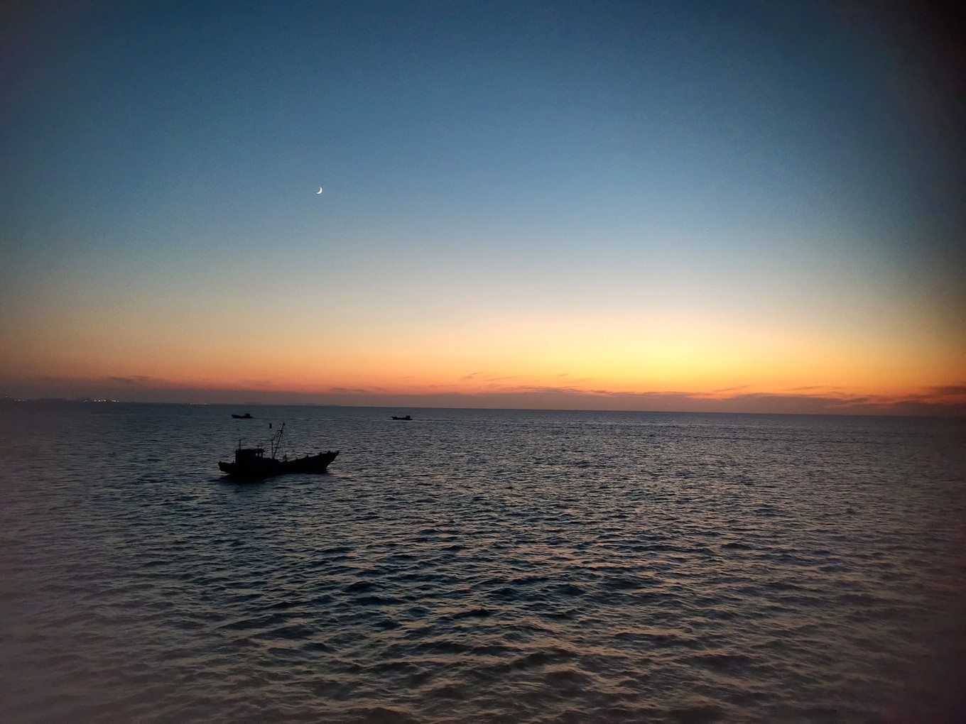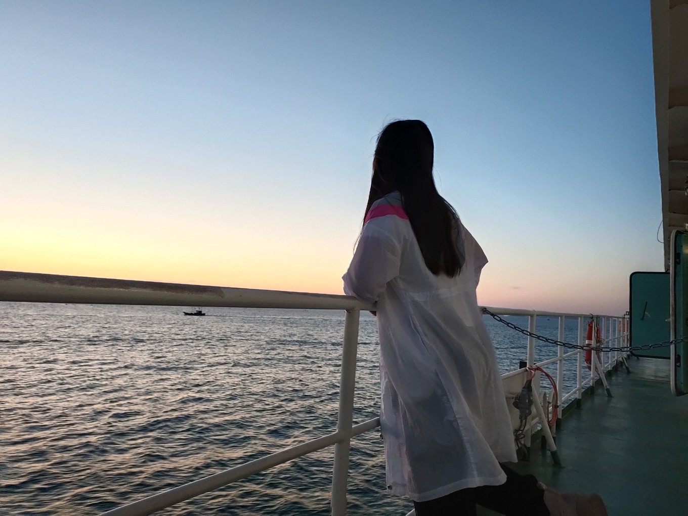 海上看日出很美,可惜我們沒趕上,只看到了余輝。
