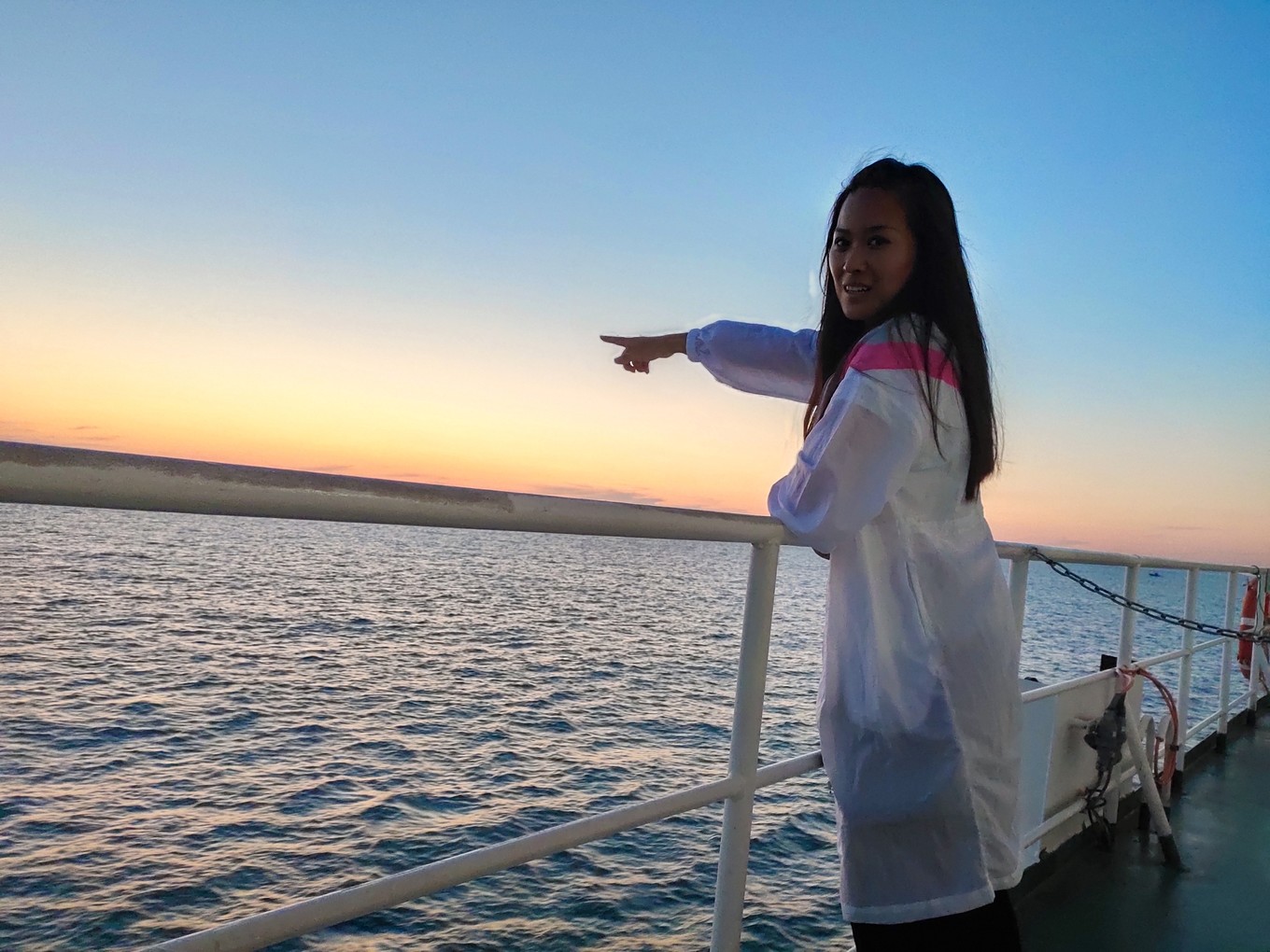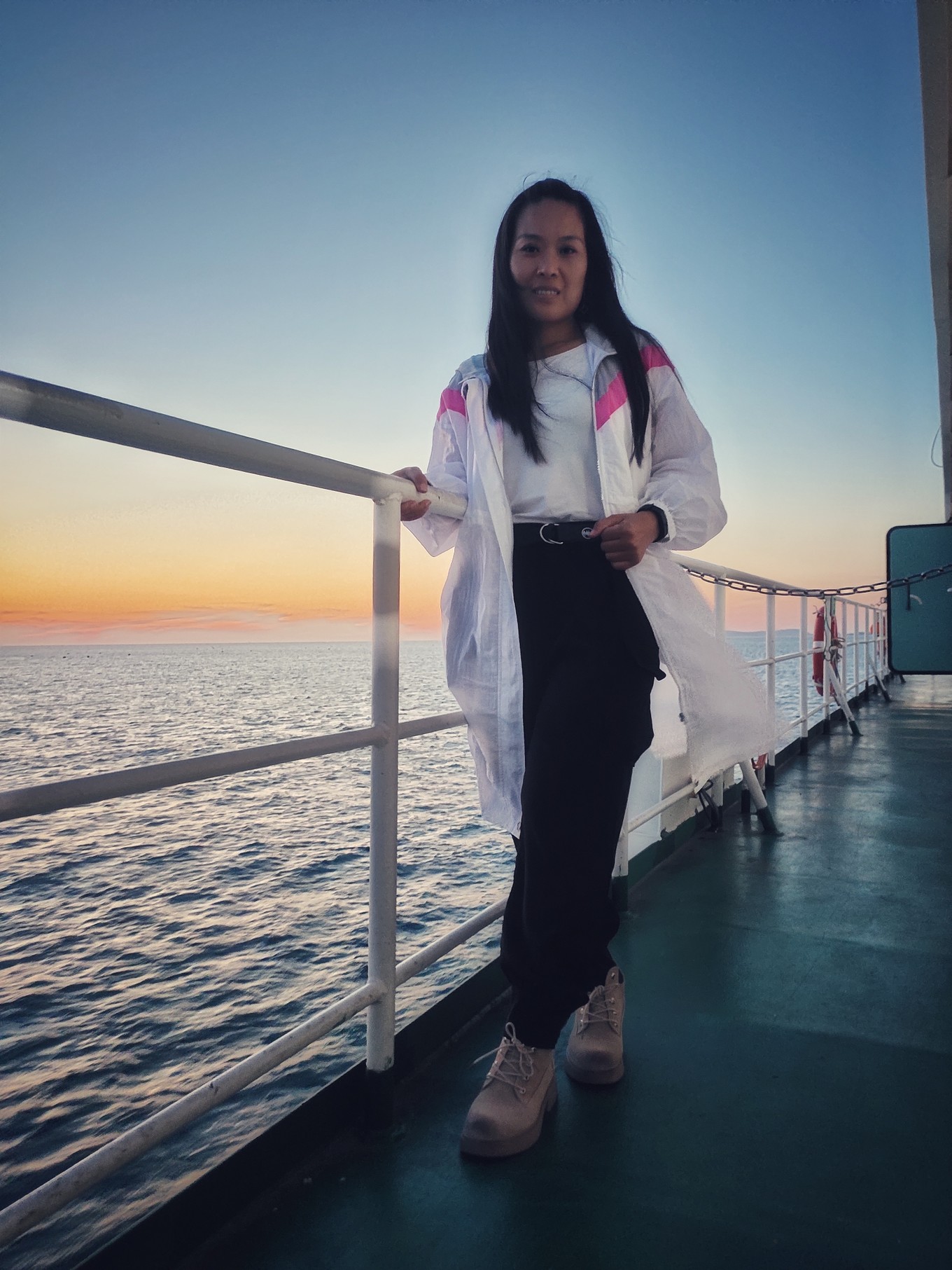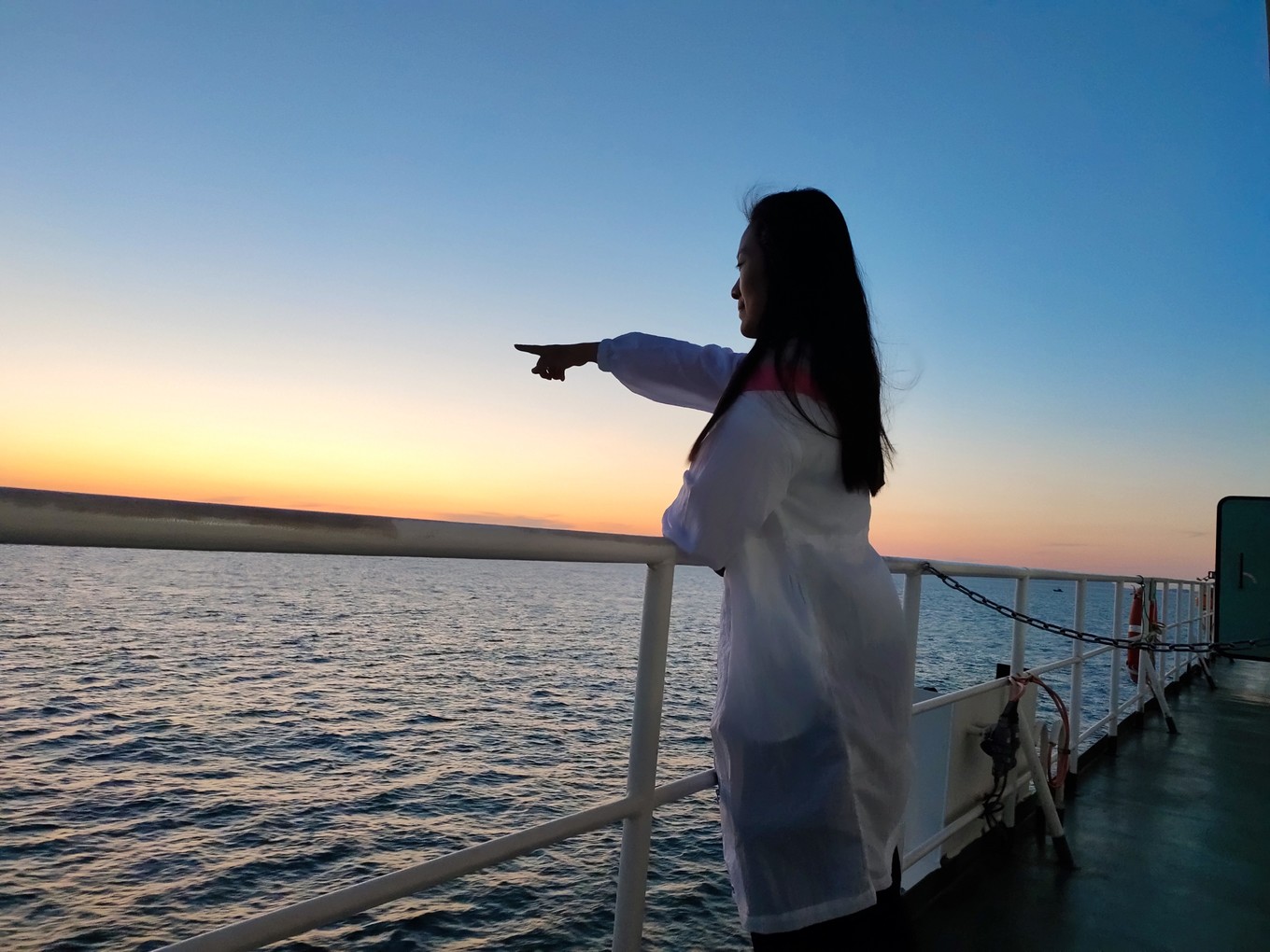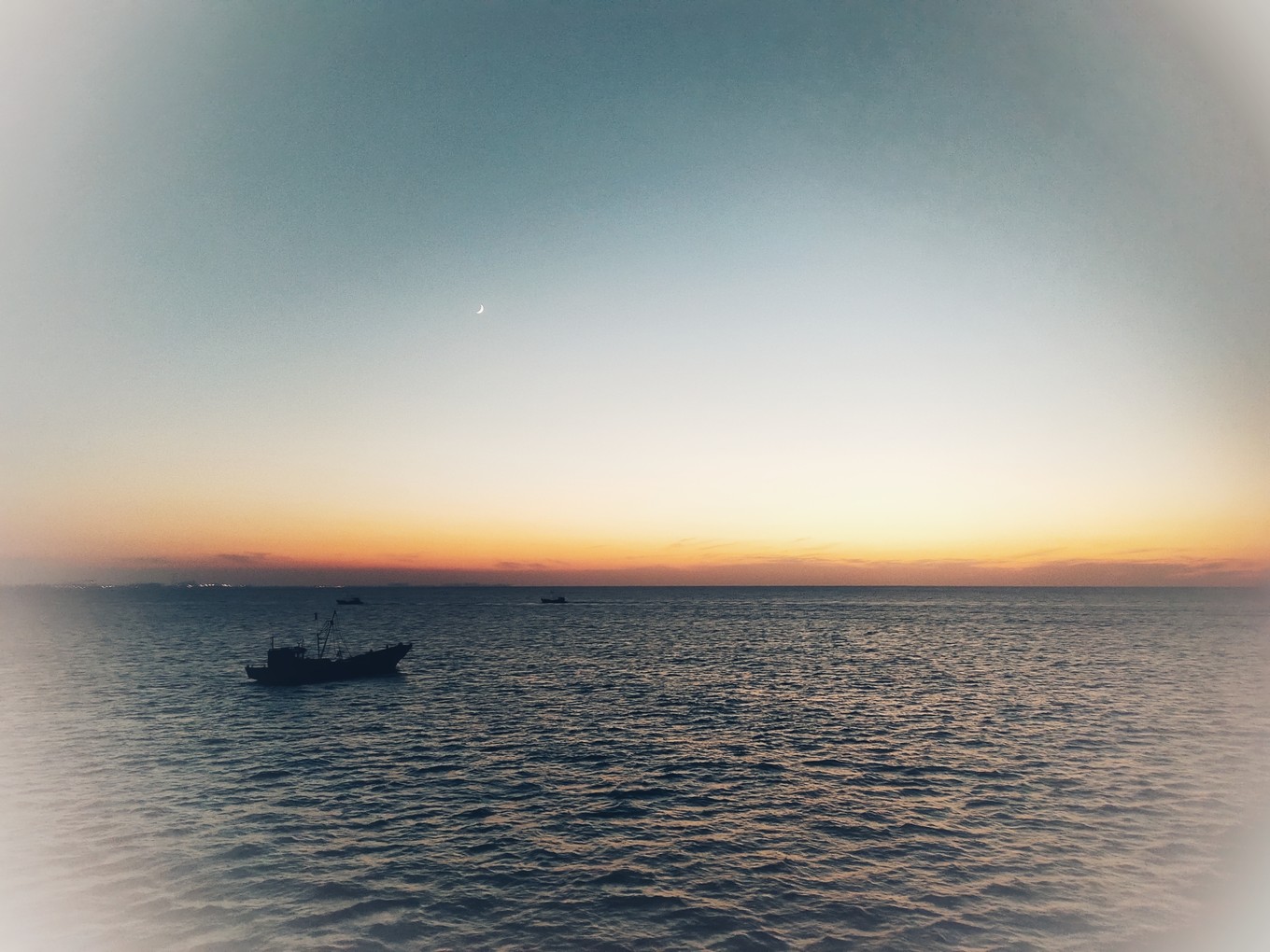 海上看日出很美,可惜我們沒趕上,只看到了余輝。