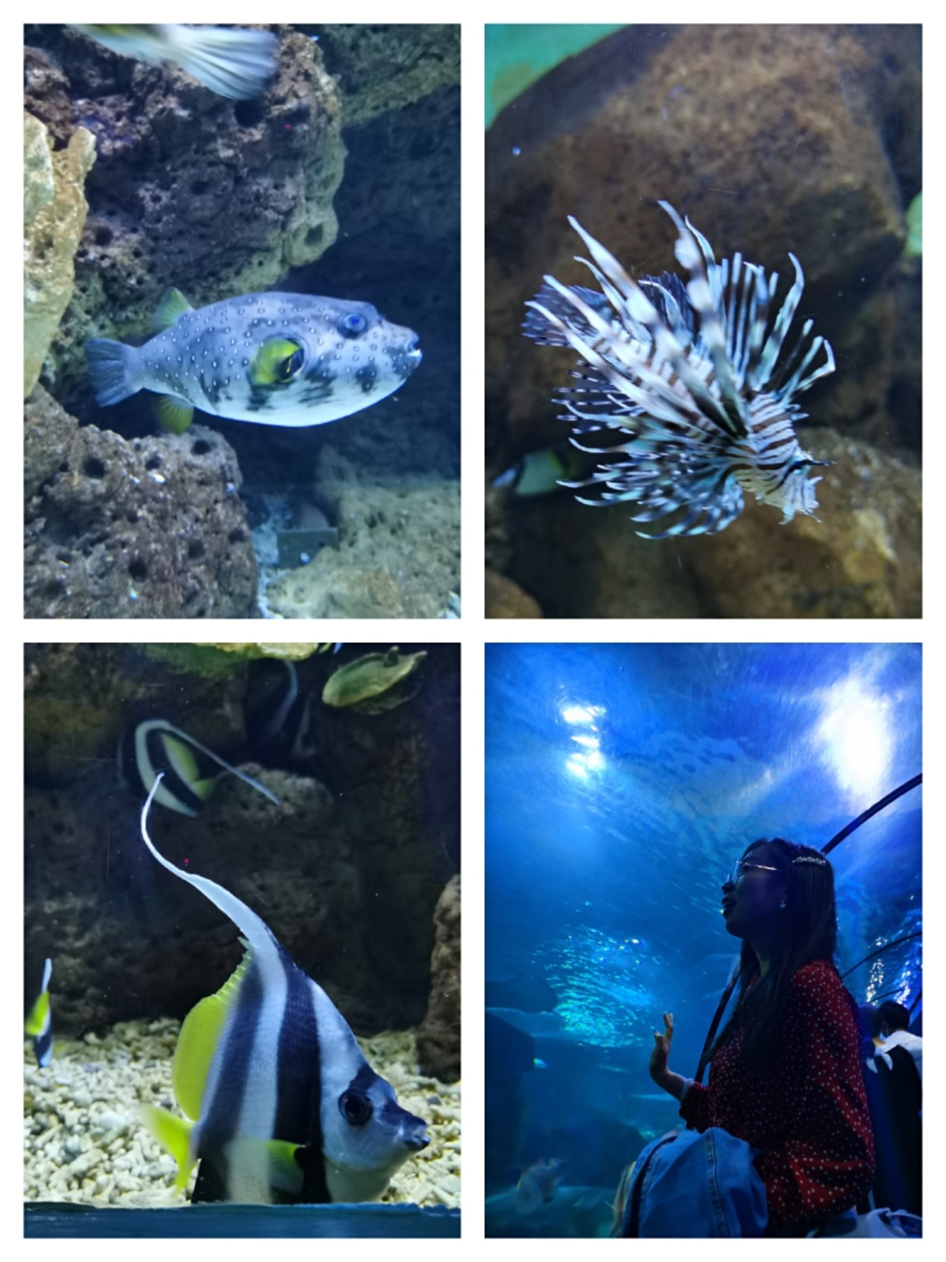 剛剛進(jìn)門的時(shí)候還有著成年人的矜持,還記著不能和小朋友搶地方,可是這些小魚兒擺動(dòng)著漂亮的魚鰭,在眼前悠悠閑閑游過來游過去,不自覺的就引著大人小孩都貼近了玻璃,“哇……好漂亮哦~”
