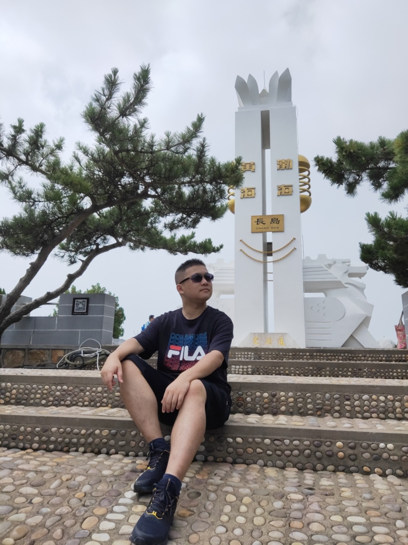 沿著海岸線,可以一直走到黃渤海分界線處,但因?yàn)槌彼€未退下去,所以看得不太明顯,走完玻璃棧道之后一路往上,就可以到黃渤海分界線的標(biāo)志物處,我們上去的時(shí)候太陽也已經(jīng)出來啦~艷陽高照!