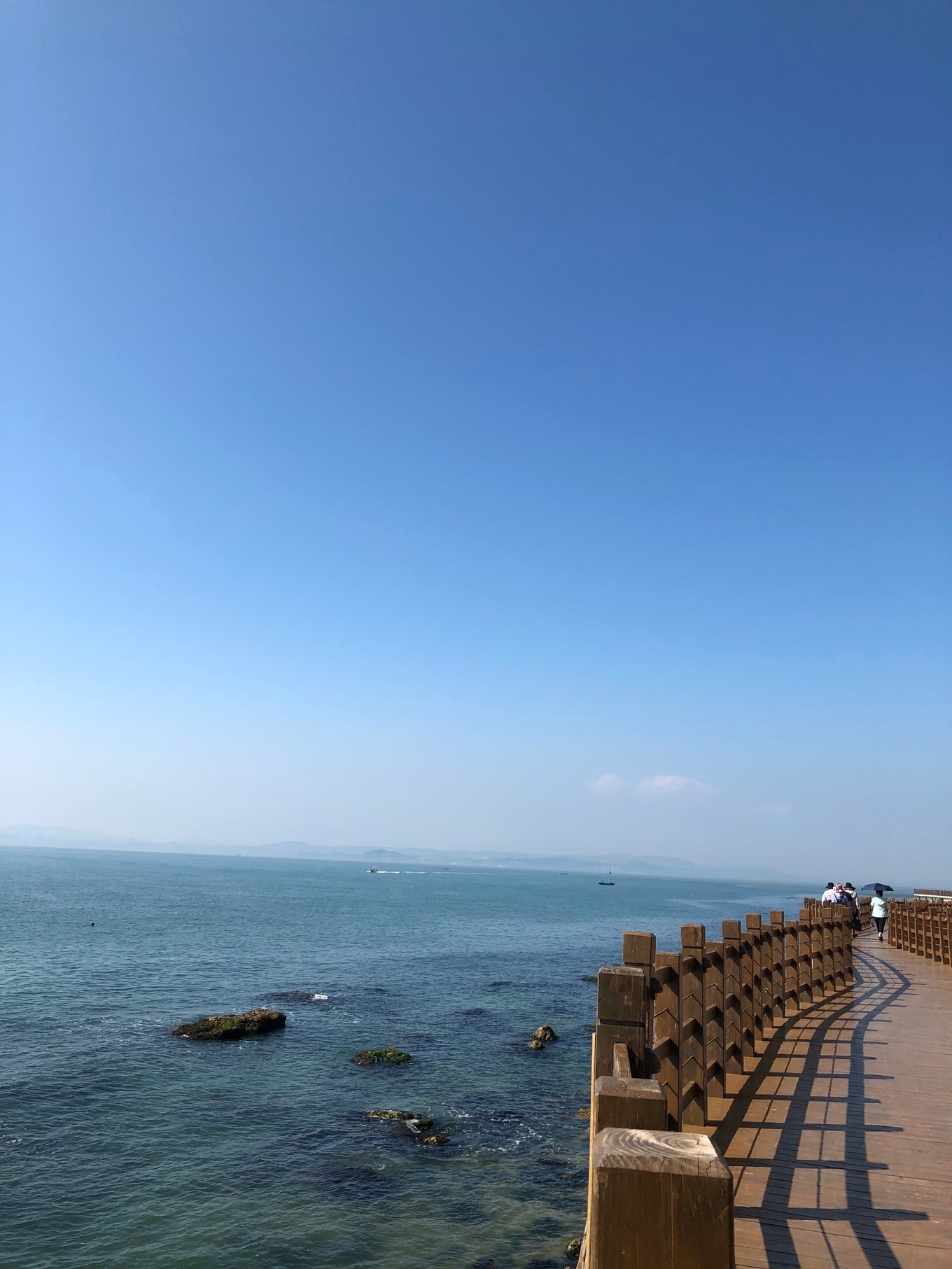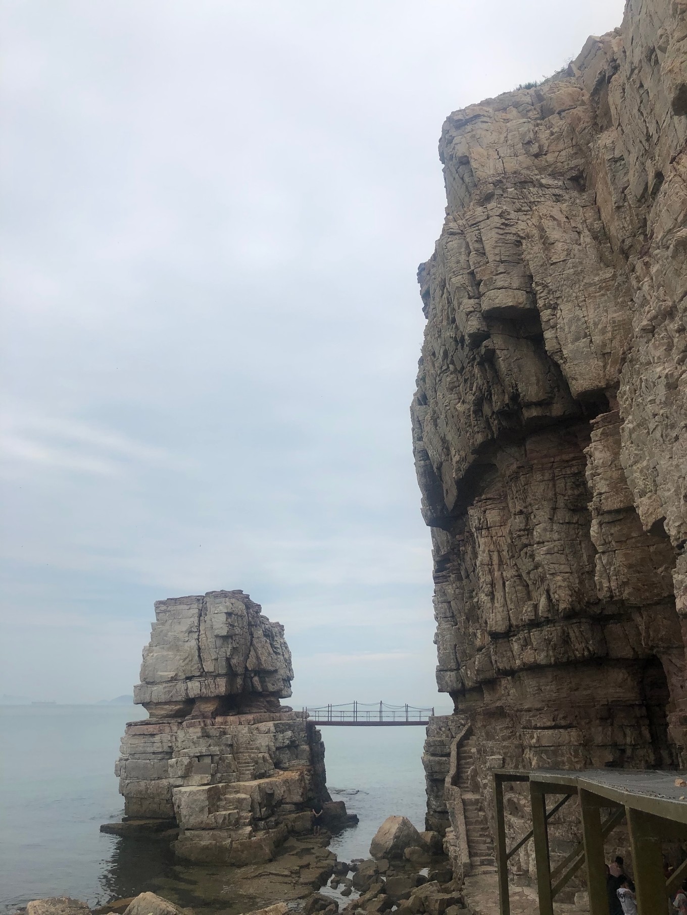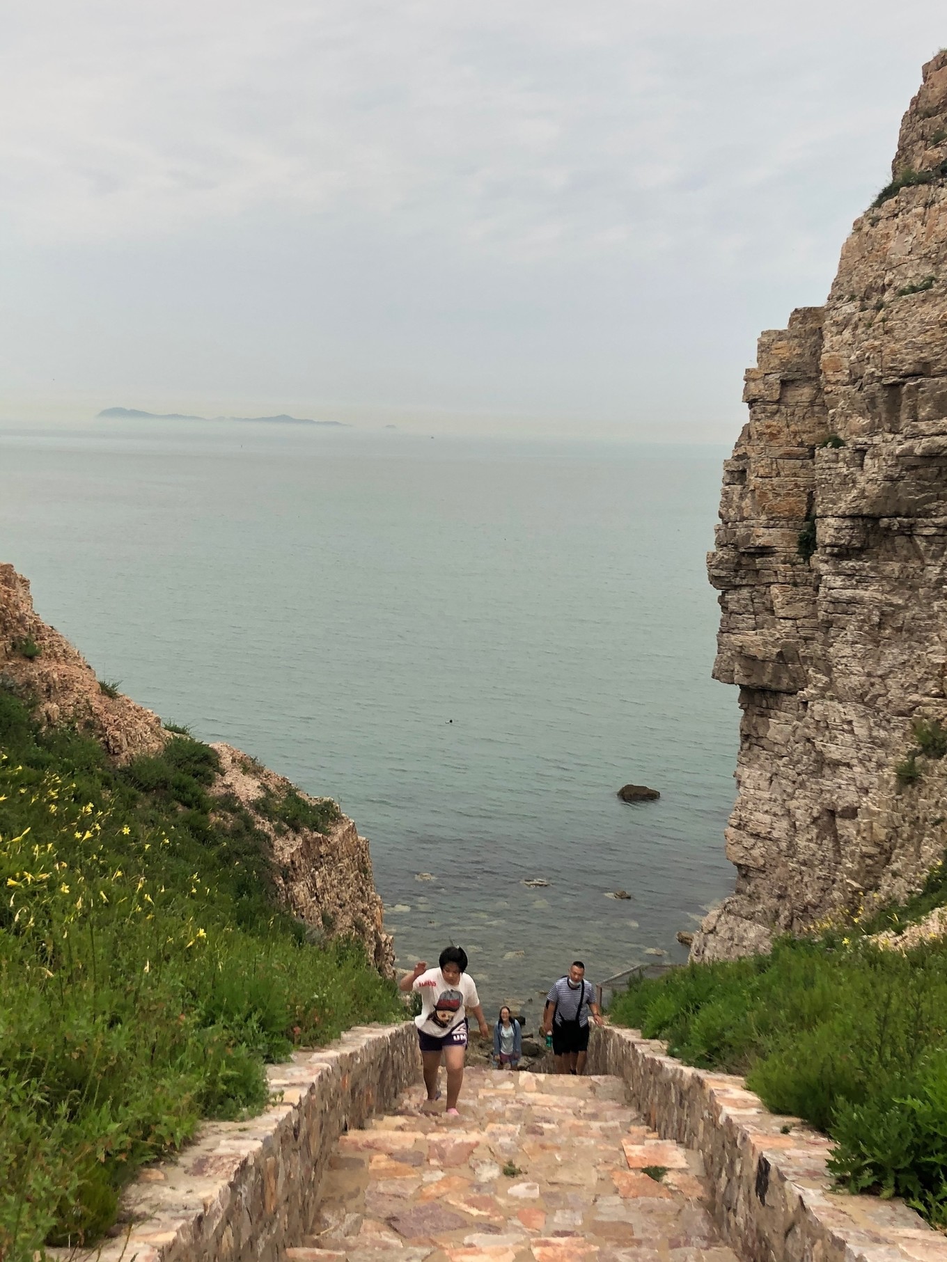 DAY 3:7月27日一早司機就來接我們了說是有趕海在峰山的海邊,但是我們?nèi)ピ缌?點半才退潮,只能先游景點了。峰山一定要坐游覽觀光車到最高點,真不要挑戰(zhàn)自己走上去,第一站直接上山頂制高點俯瞰真?zhèn)€長島,第二站會到黃渤海交界處,然后沿著木棧道走可以到海邊,趕上退潮能撿到很多生蠔。我們收獲滿滿但是先生沒讓吃