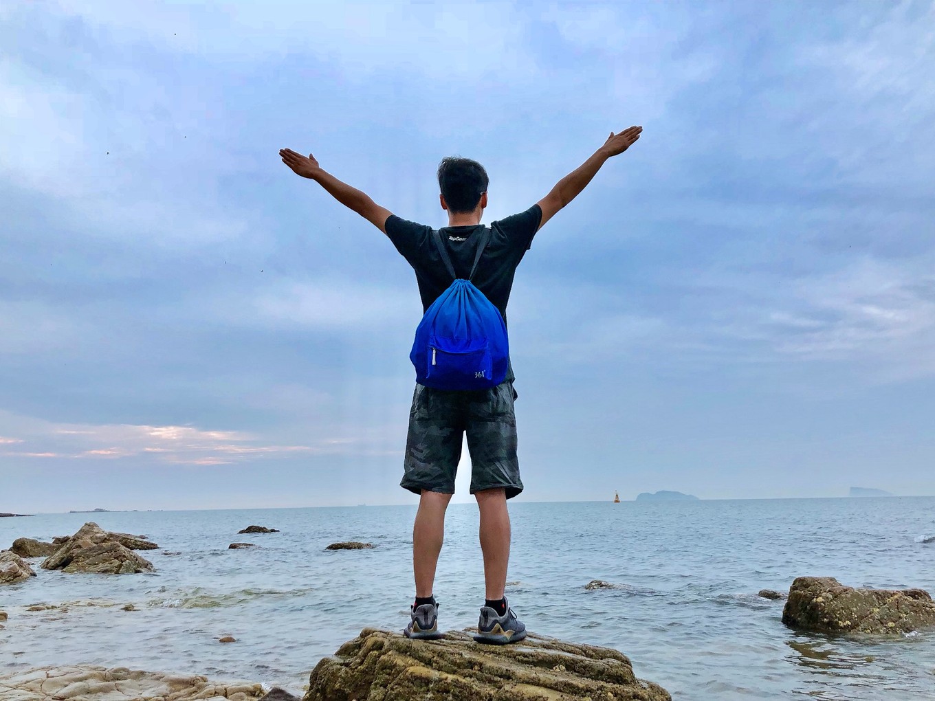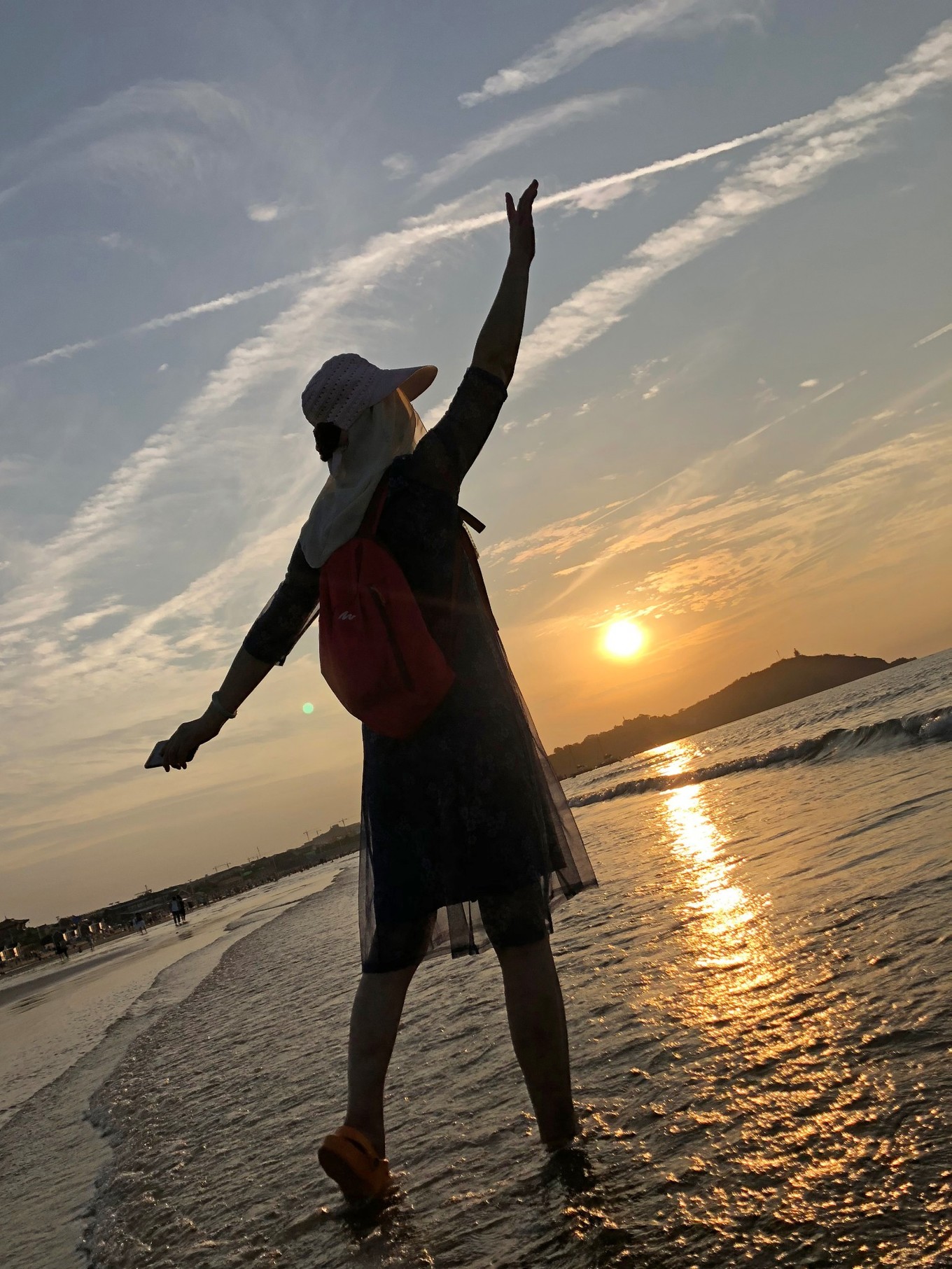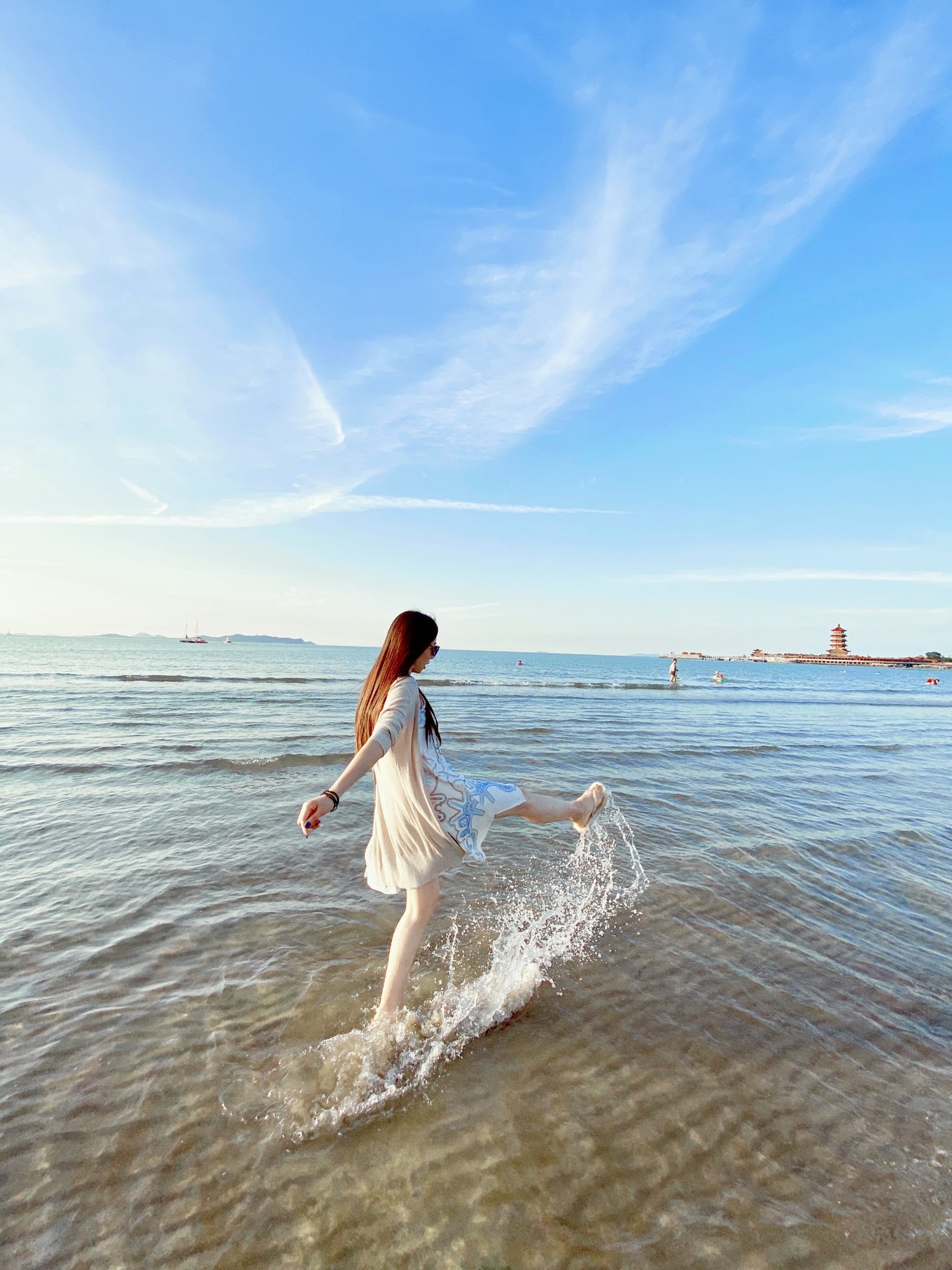 這一天的氣溫是25度,吹著海風(fēng)還是有點小冷的。