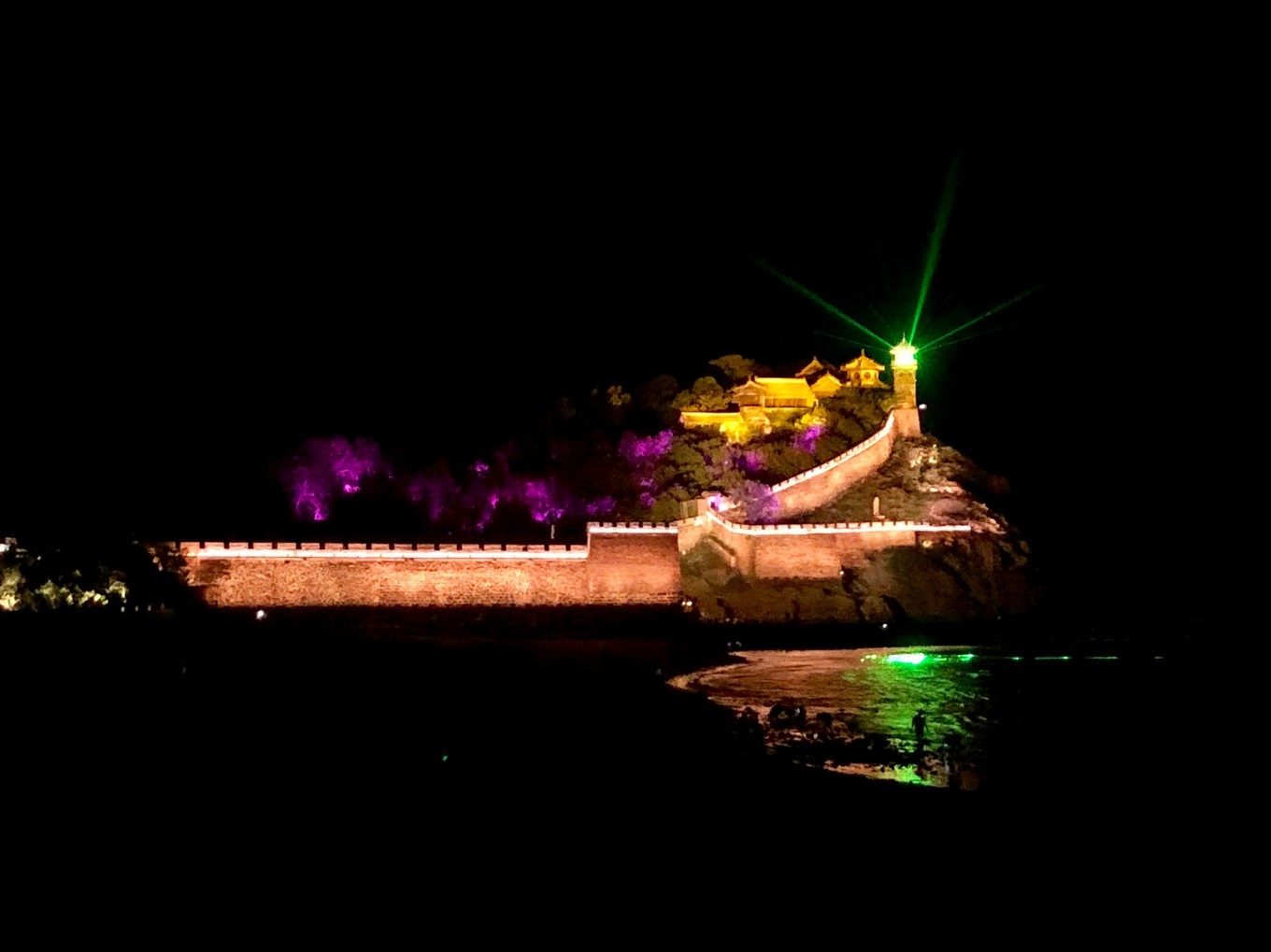 吃飽喝足再去海邊遛遛食兒,可以拍拍蓬萊閣,上面好多彩燈,很漂亮。