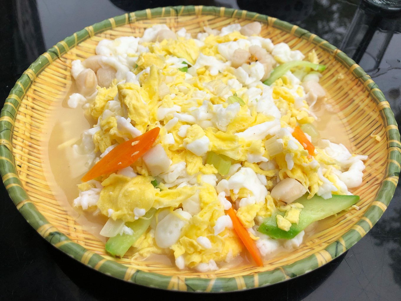 銀魚炒雞蛋和貝柱,嫩滑爽口。