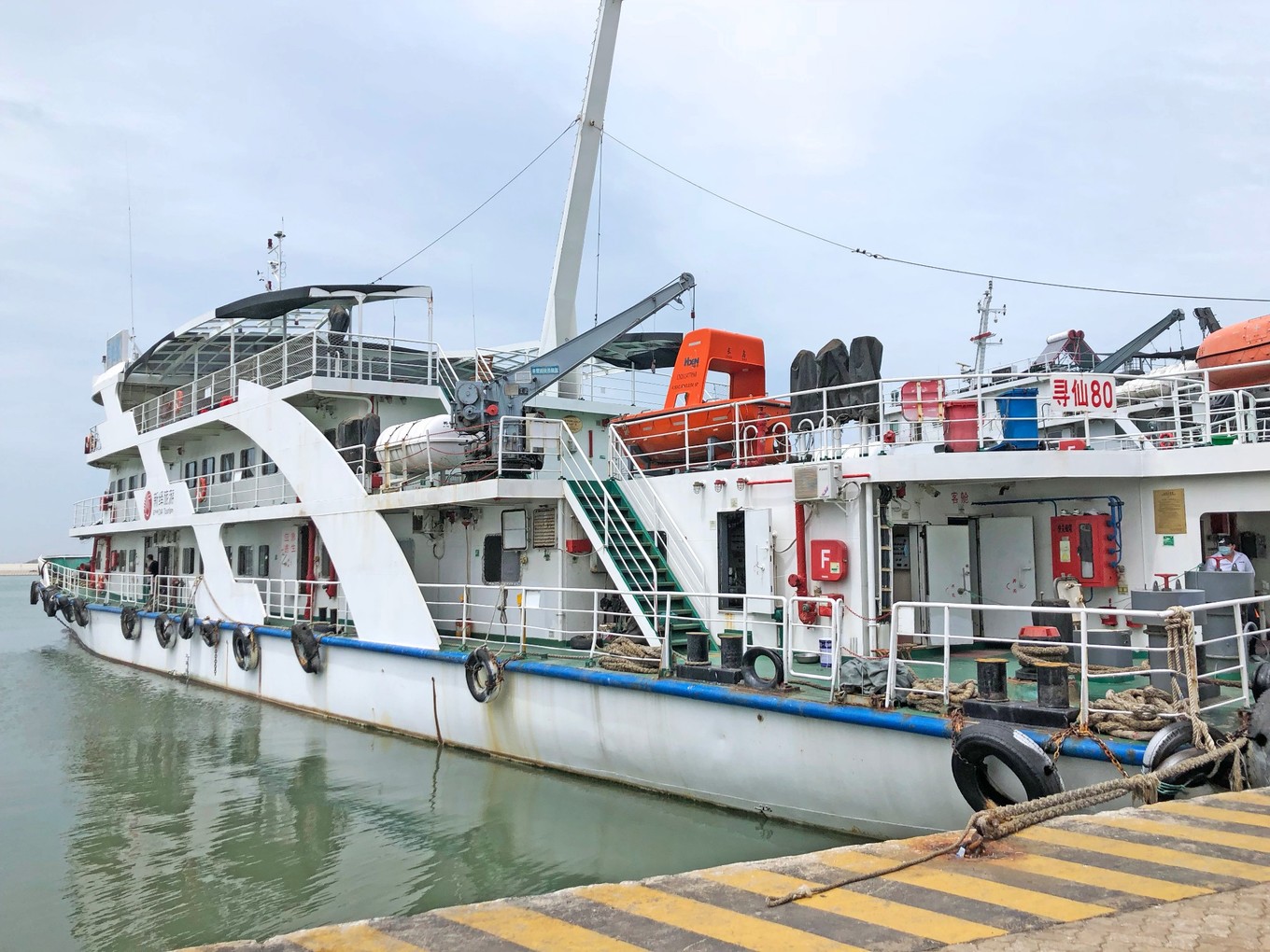 吃飽喝足就準(zhǔn)備坐船回蓬萊了,為期兩天的長島行就此告一段落了,公寓老板熱情的把我們送到了長島港,這次也沒有提前買票,到那還有20分鐘就要開船了,網(wǎng)上已經(jīng)沒有票了,在人工臺買的票特別慢,一路小跑差點沒趕上,這次坐的是滾裝船-長島丹珠,帶著大箱子爬樓梯很費勁。