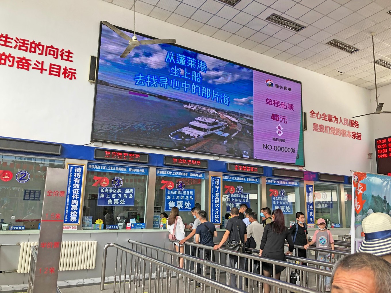 到了購票大廳,可以排隊買票,要想不排隊的話可以微信關(guān)注“長島船票”公眾號,在上面買票,直接到自助機上出票即可,最好提前購買哦,要不人多了可能會買不到票。